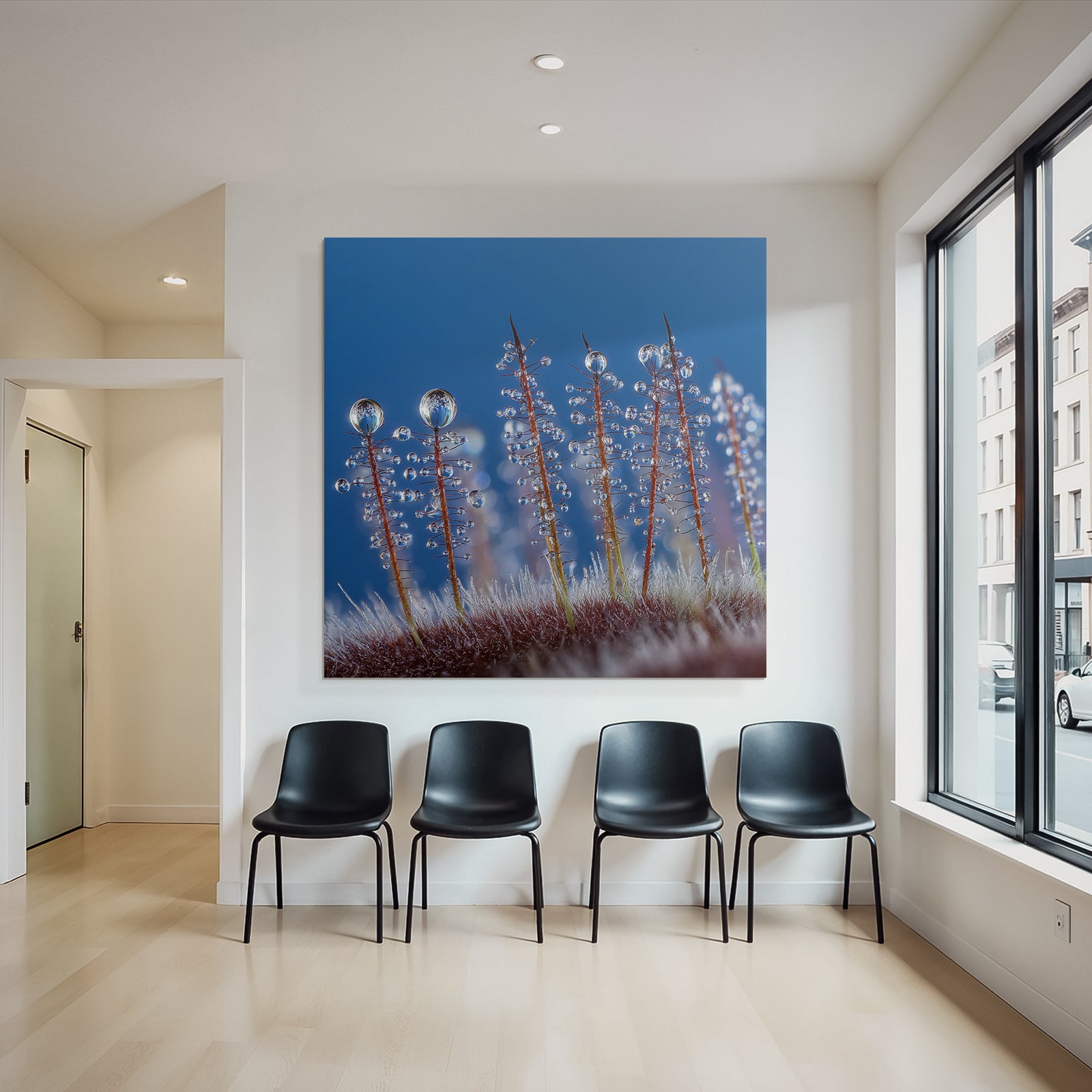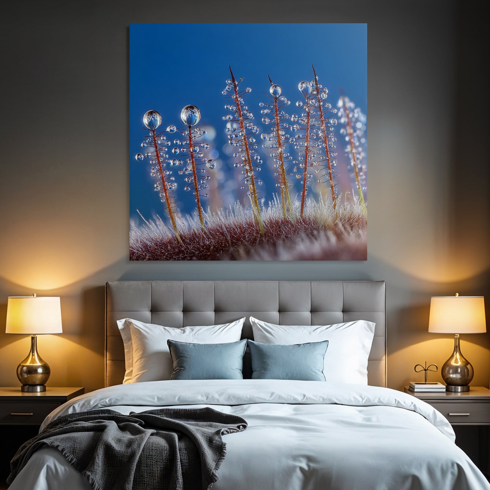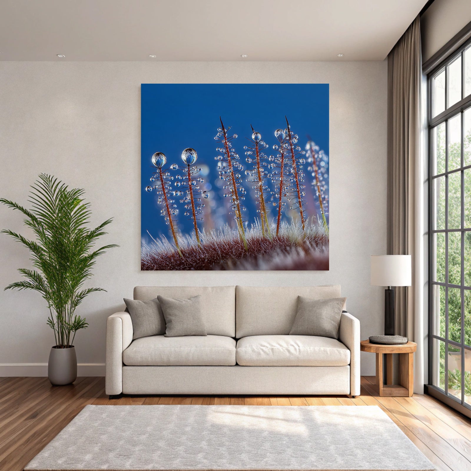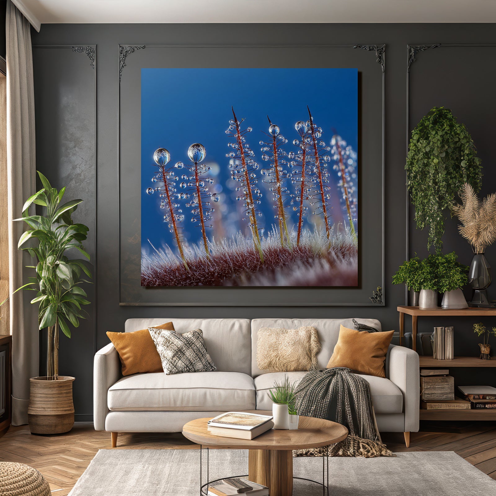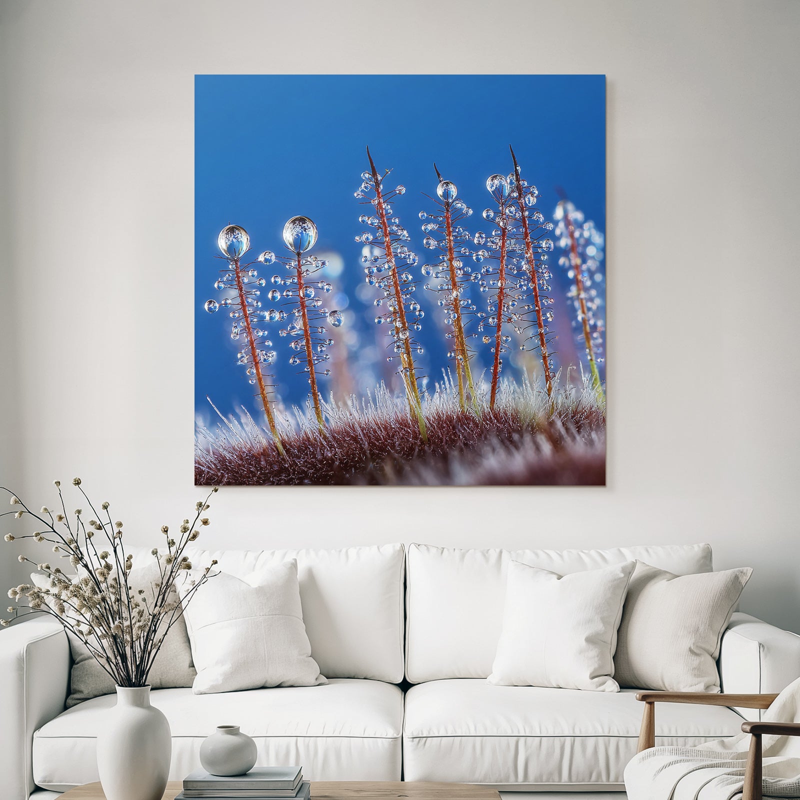 Das Kunstwerk „Makroaufnahme Von Pflanzenhaaren Mit Wassertropfen“ ist eine Hommage an den Stil Wasserfaelle und Tropfen. Im FameFrame kommt die Farbbrillanz und Detailtiefe des Motivs perfekt zur Geltung.