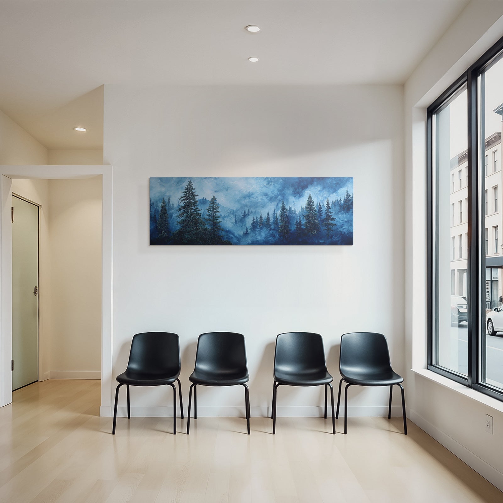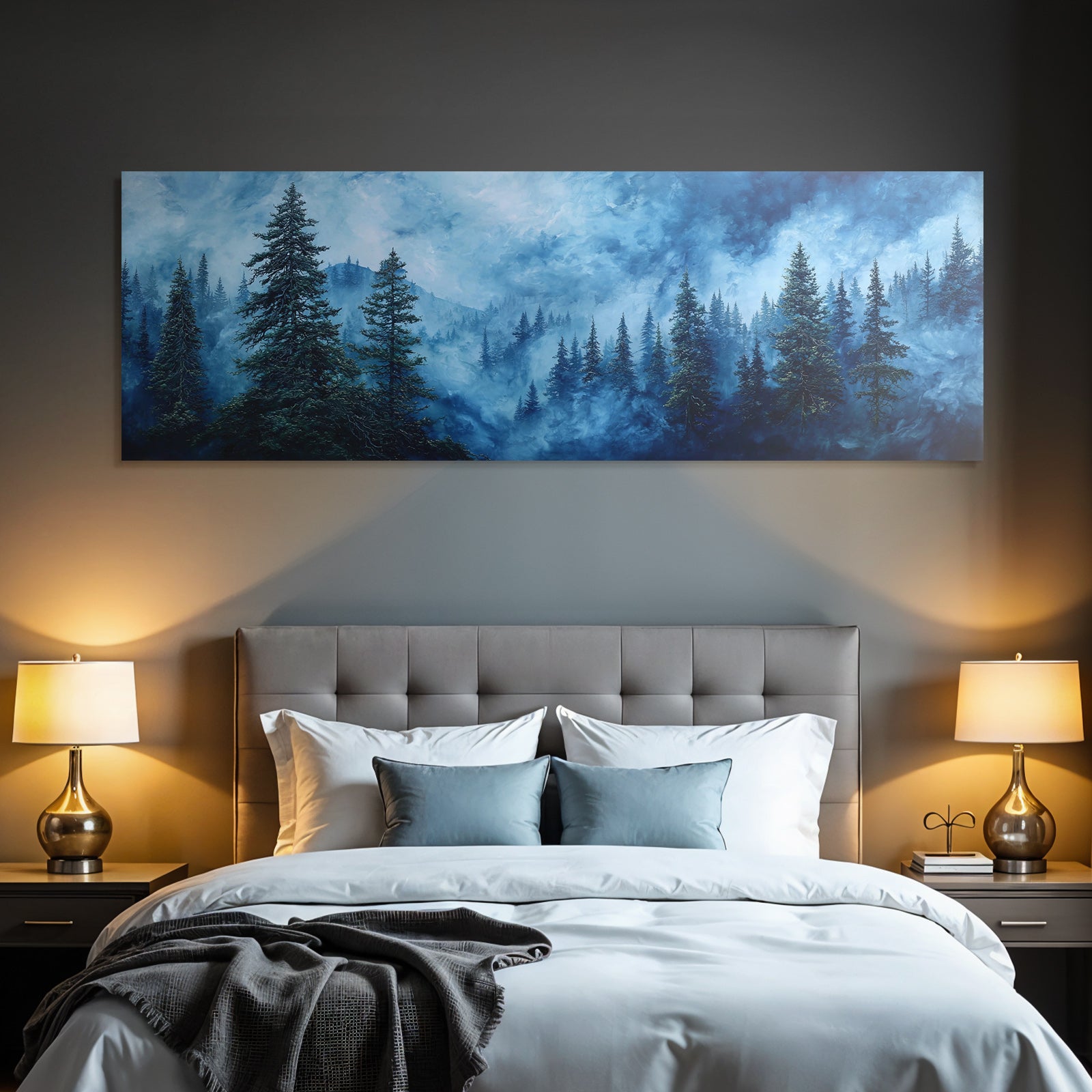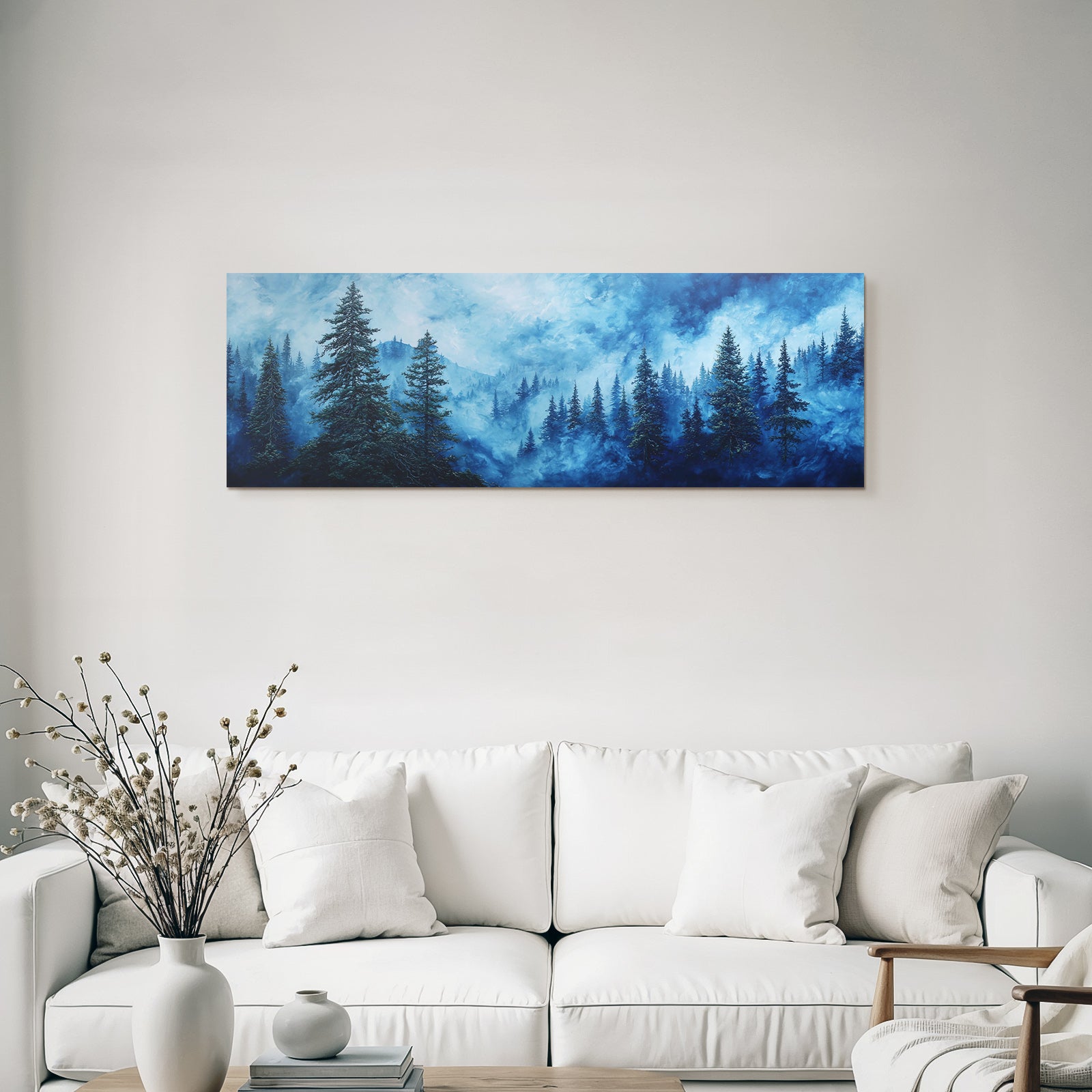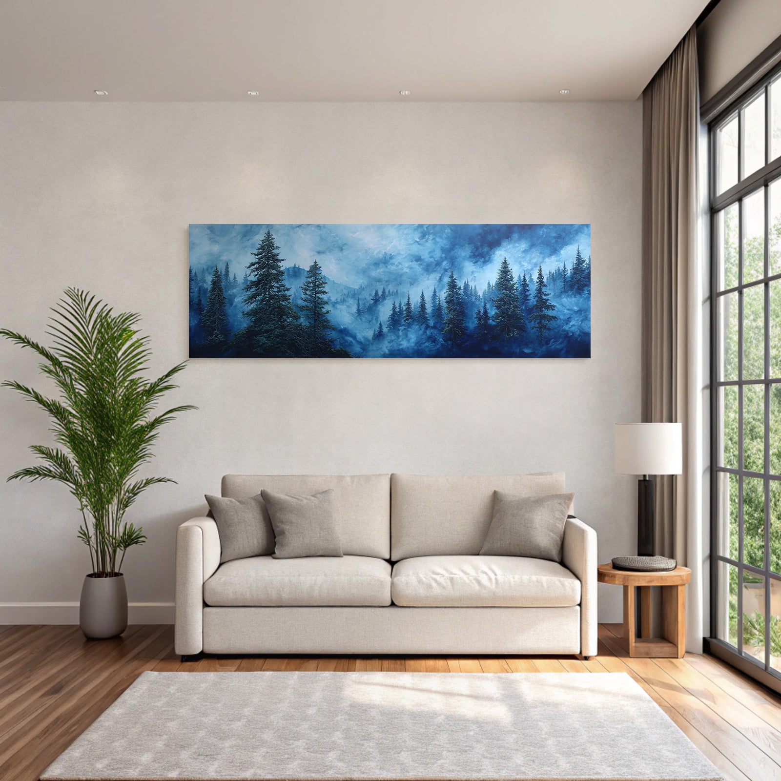 Das Kunstwerk „Malerische Neblige Waldlandschaft“ ist eine Hommage an den Stil Himmel und Wolken. Im FameFrame kommt die Farbbrillanz und Detailtiefe des Motivs perfekt zur Geltung.