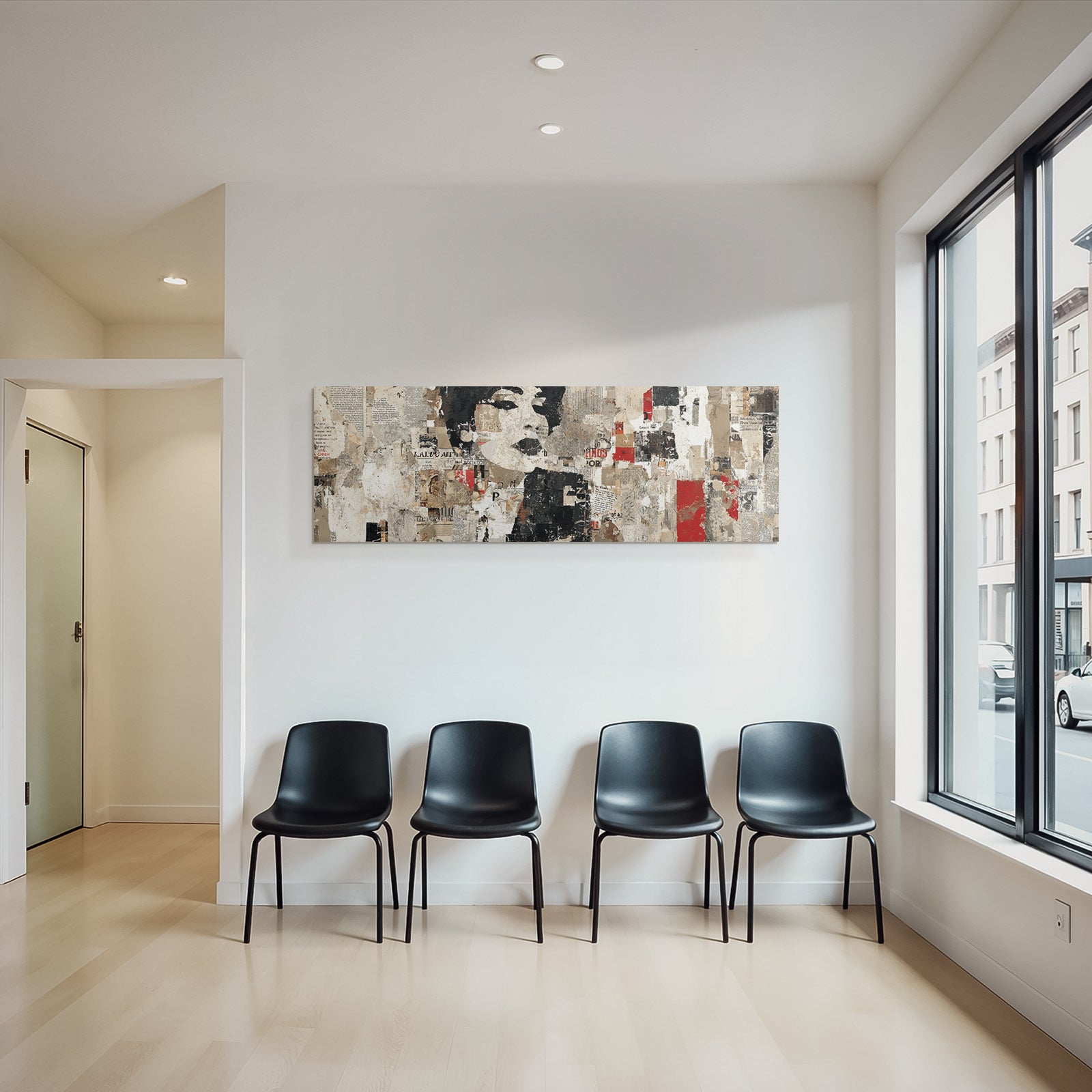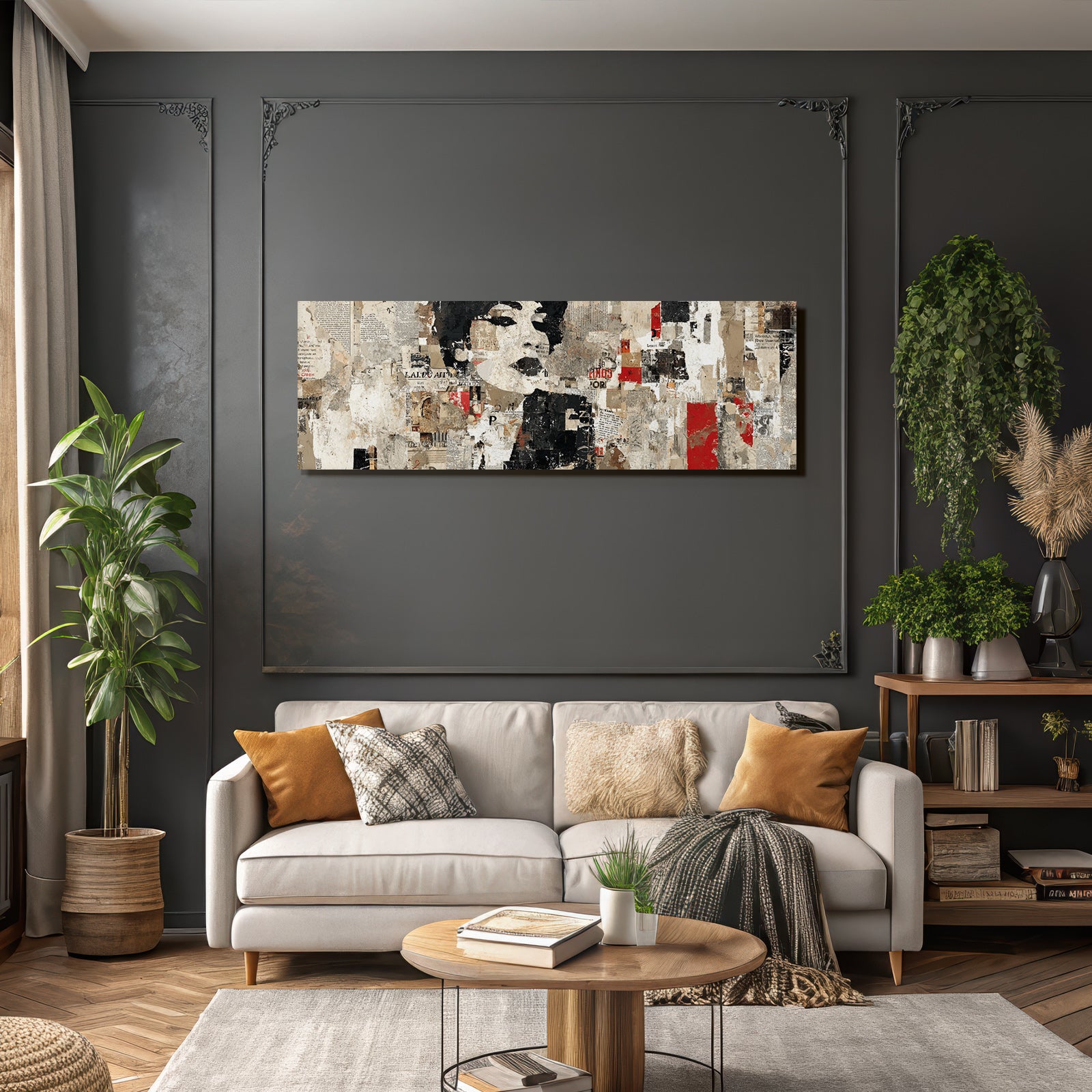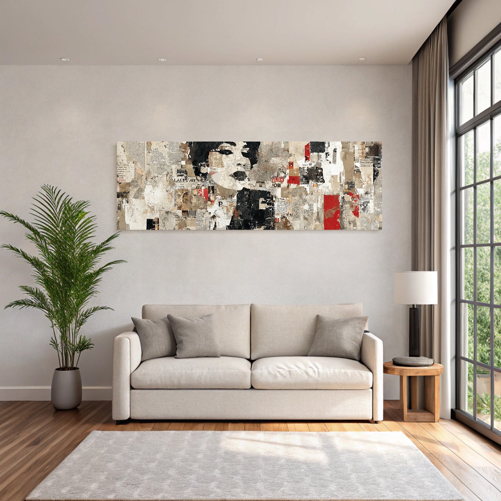 Setze stilvolle Akzente mit Kunst im Look von Dadaismus. Das Werk „Moderne Stadtkunst Collage Mit Fragmentiertem Gesicht“ entfaltet im edlen FameFrame™ seine volle Wirkung.