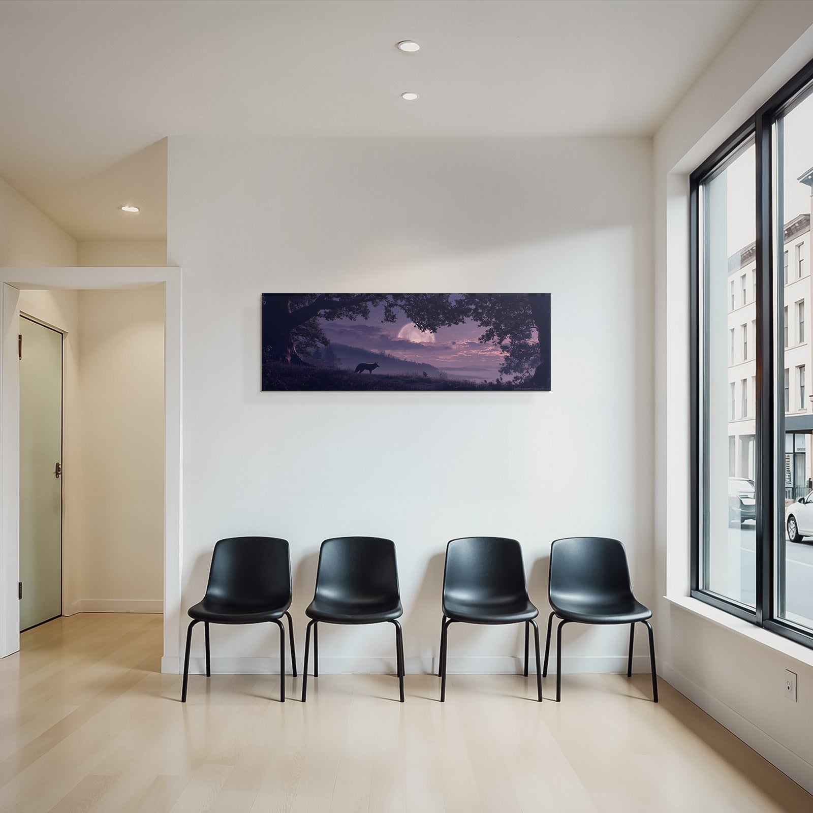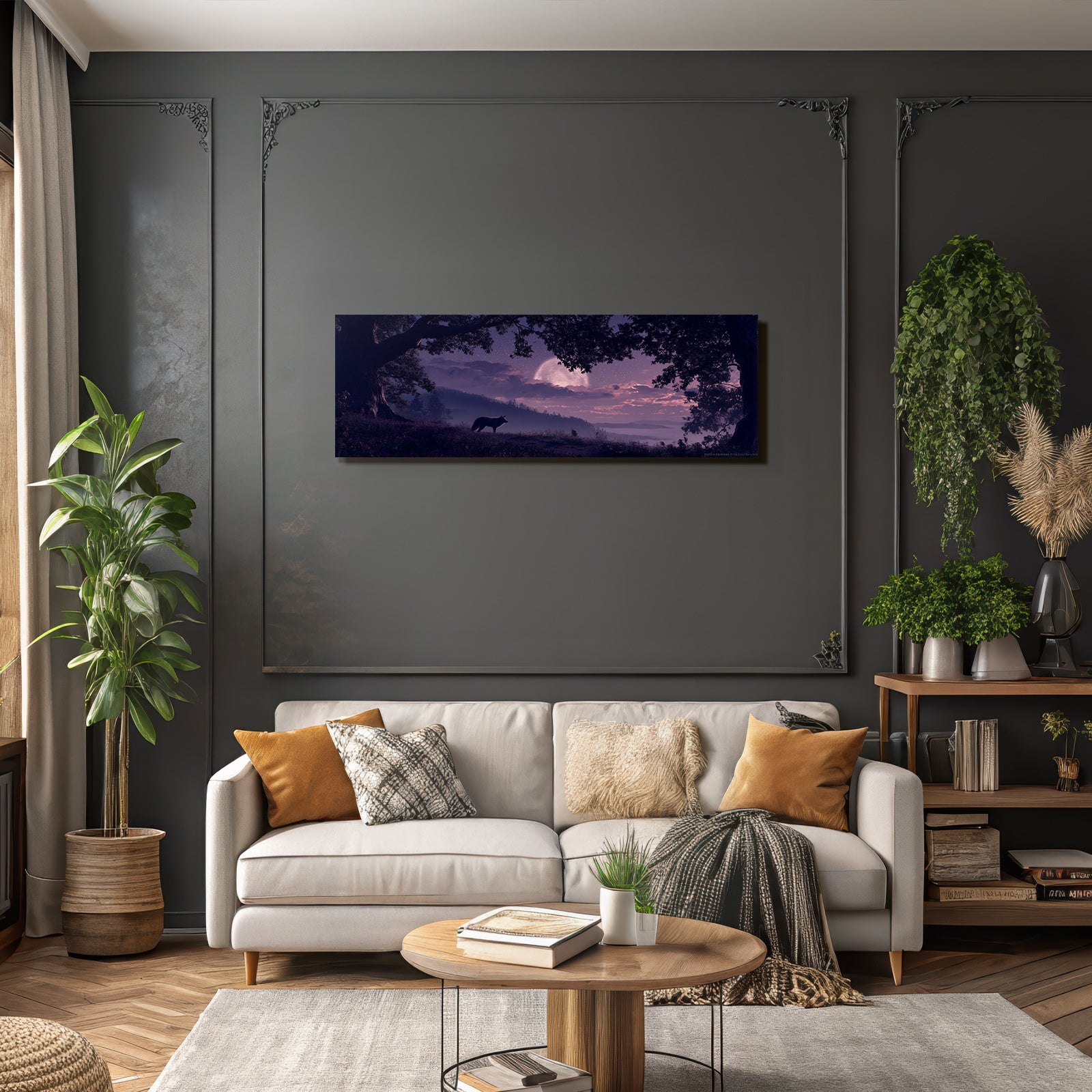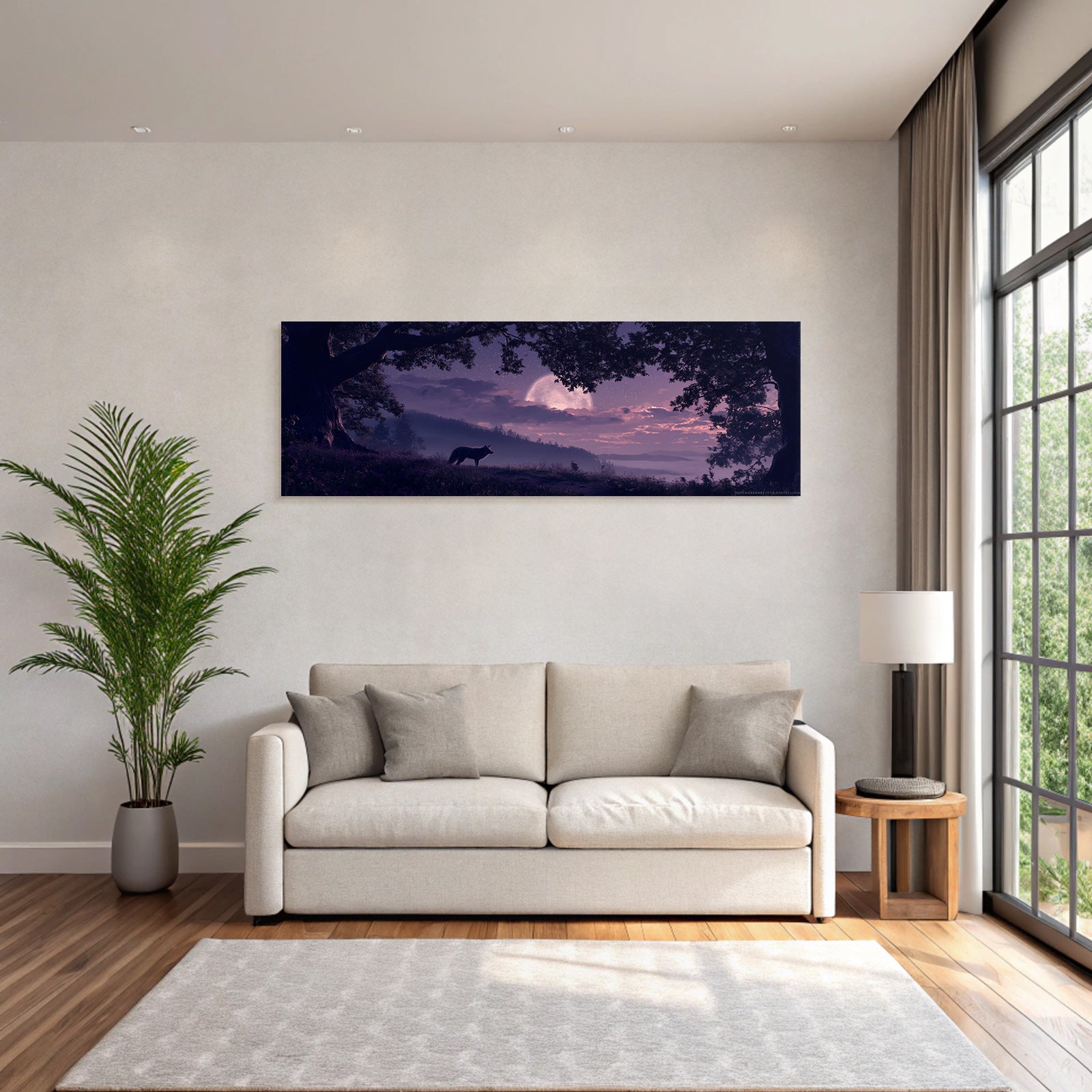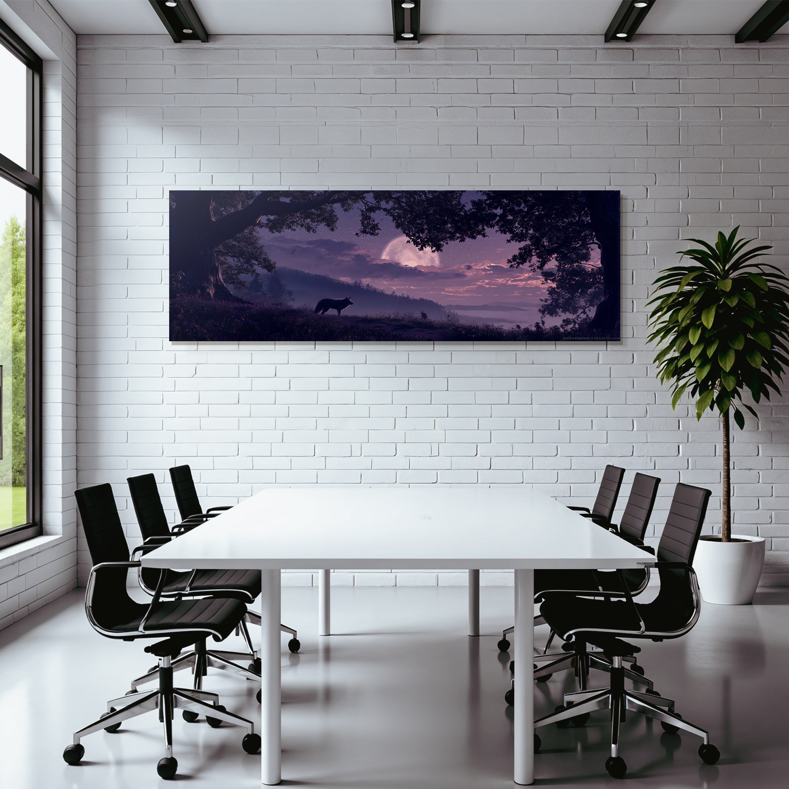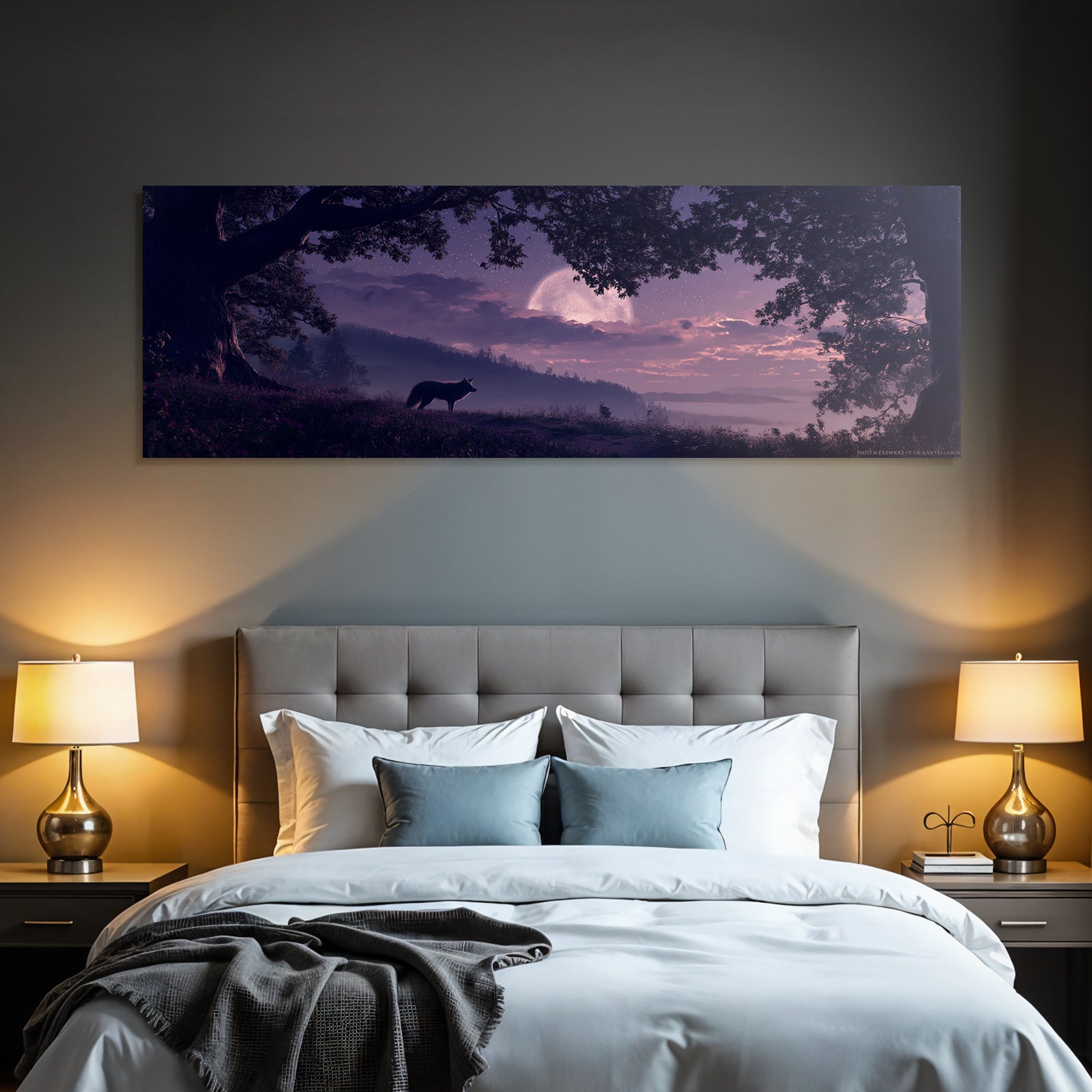 Ein Stück Psychedelische Kunst für Deine vier Wände: Das Werk „Mondnacht Fuchs Am Traumbaum“ im hochwertigen FameFrame™ bringt kreative Energie in jeden Raum.