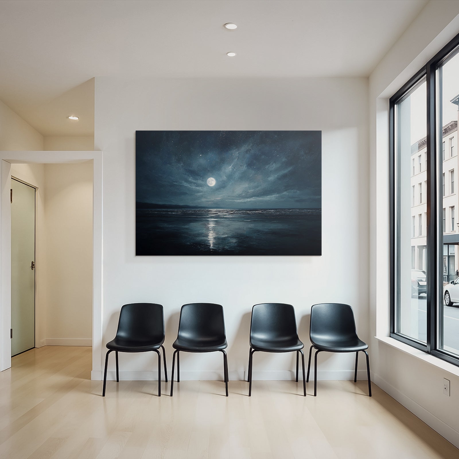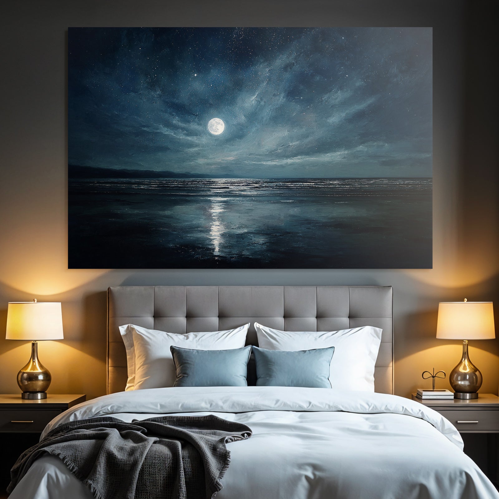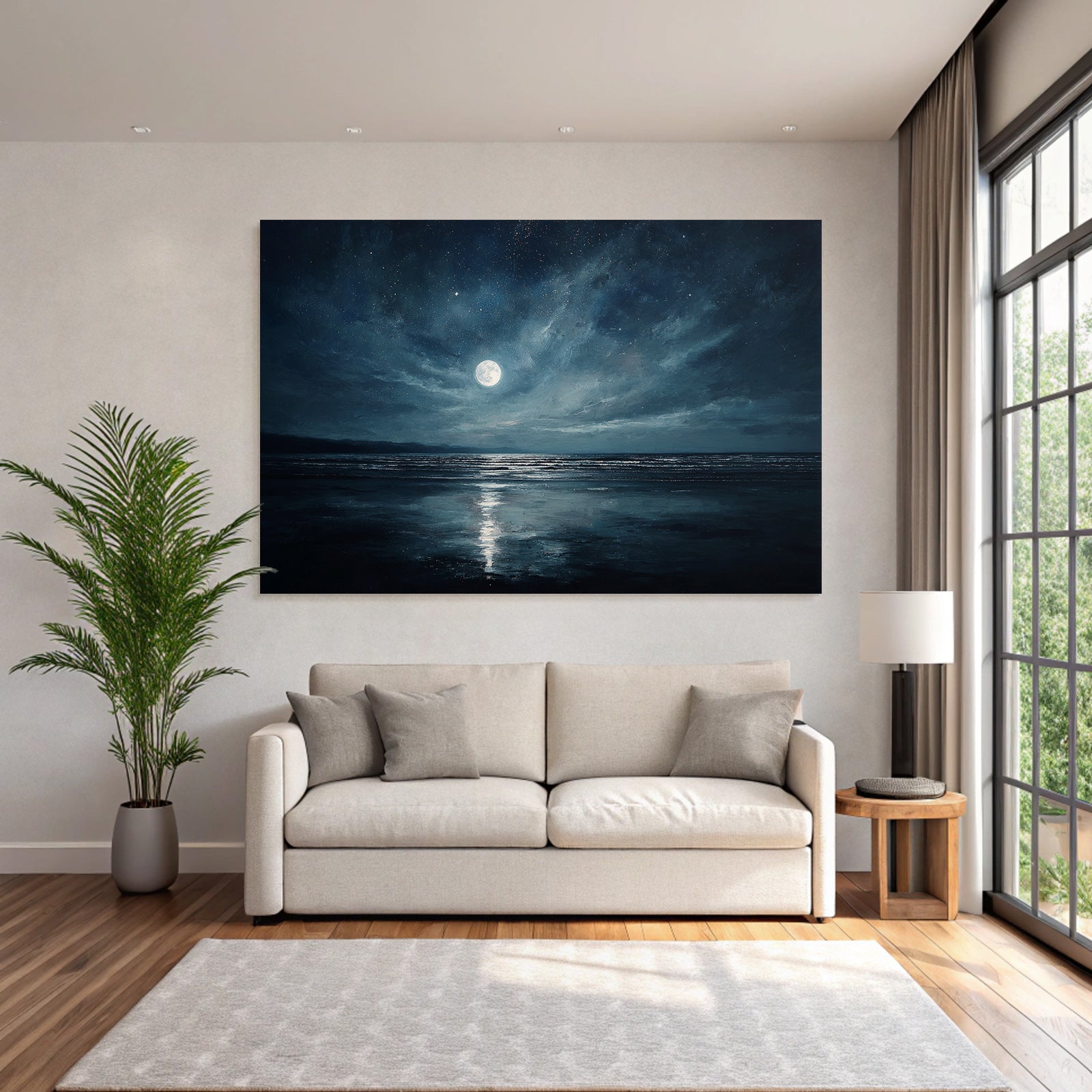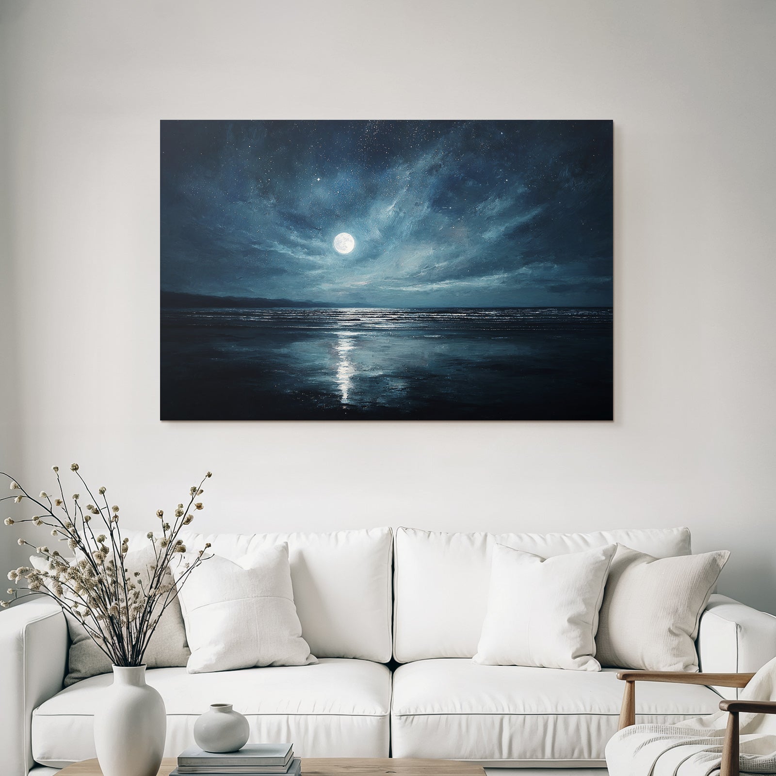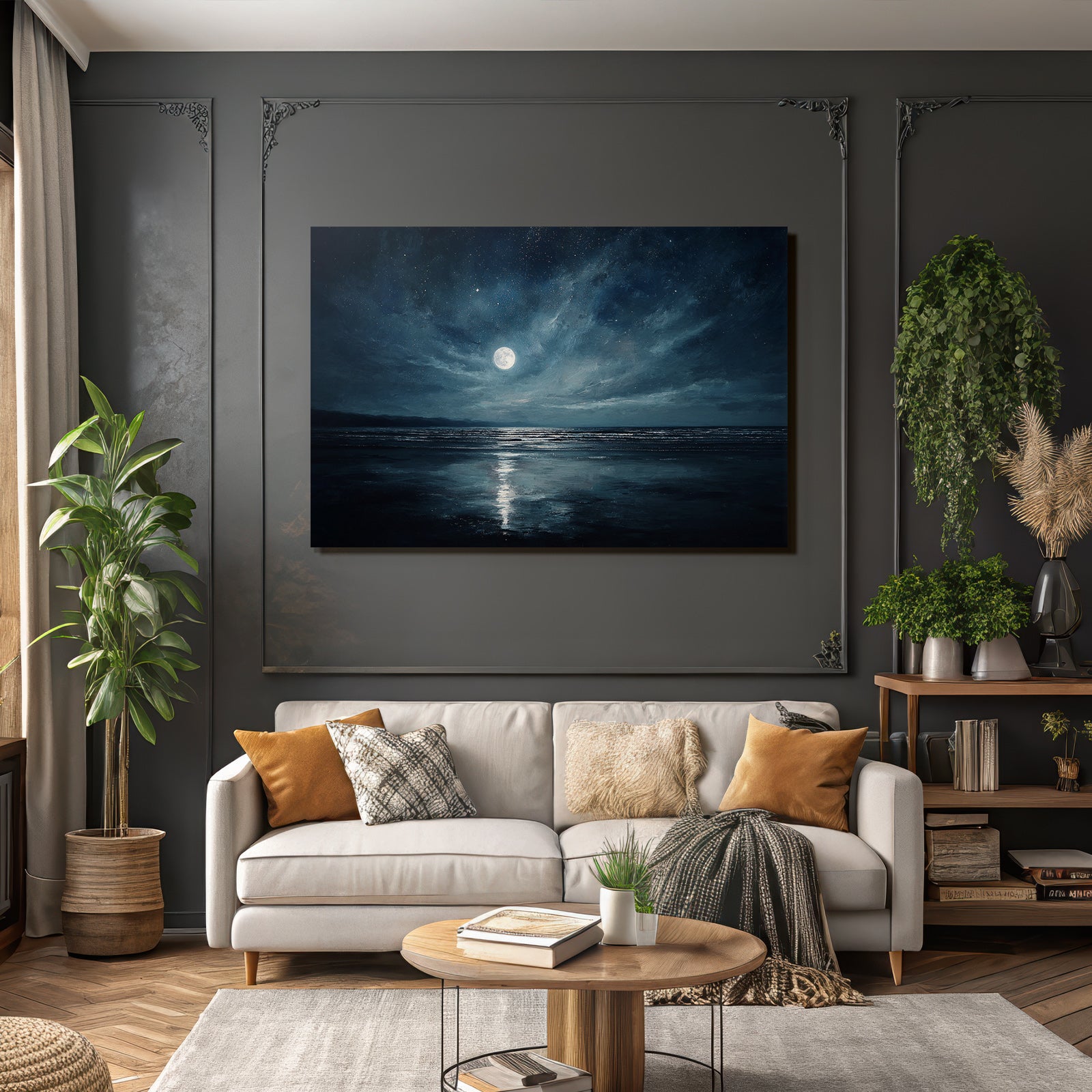 Die Kombination aus dem Motiv „Mondschein Auf Dem Stillen Meer“ und dem Stil Psychedelische Kunst schafft eine Brücke zwischen Klassik und Moderne. Der FameFrame™ vollendet dieses Zusammenspiel perfekt.
