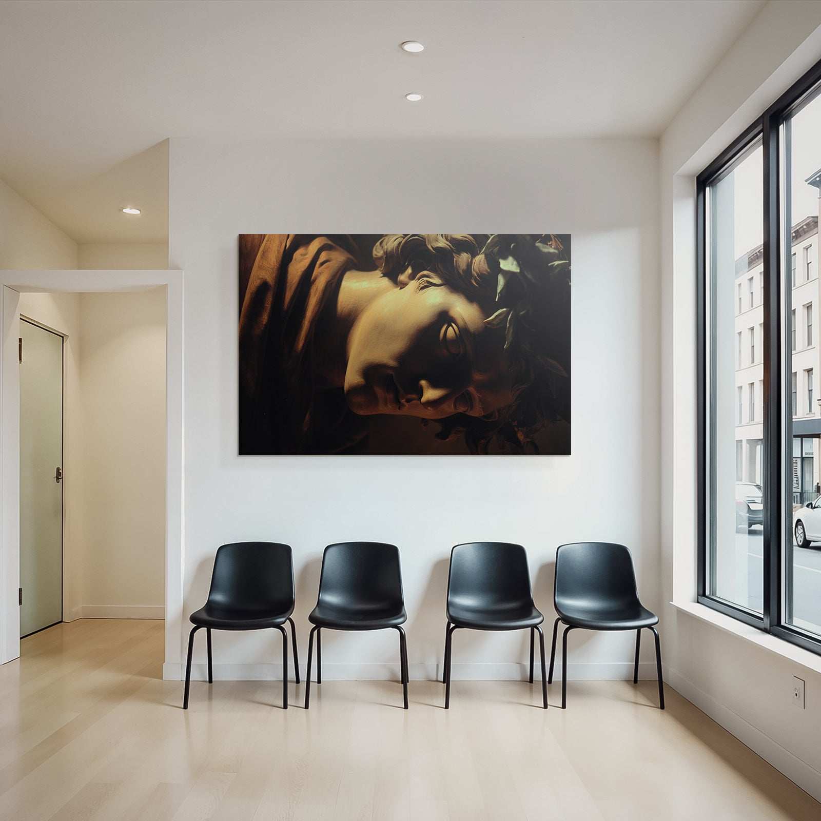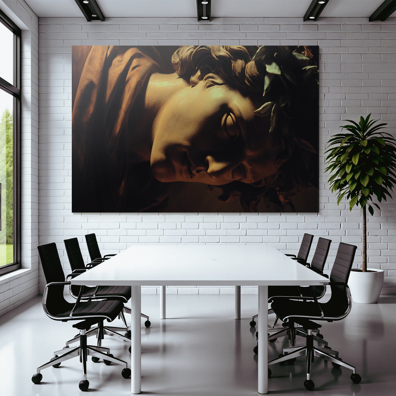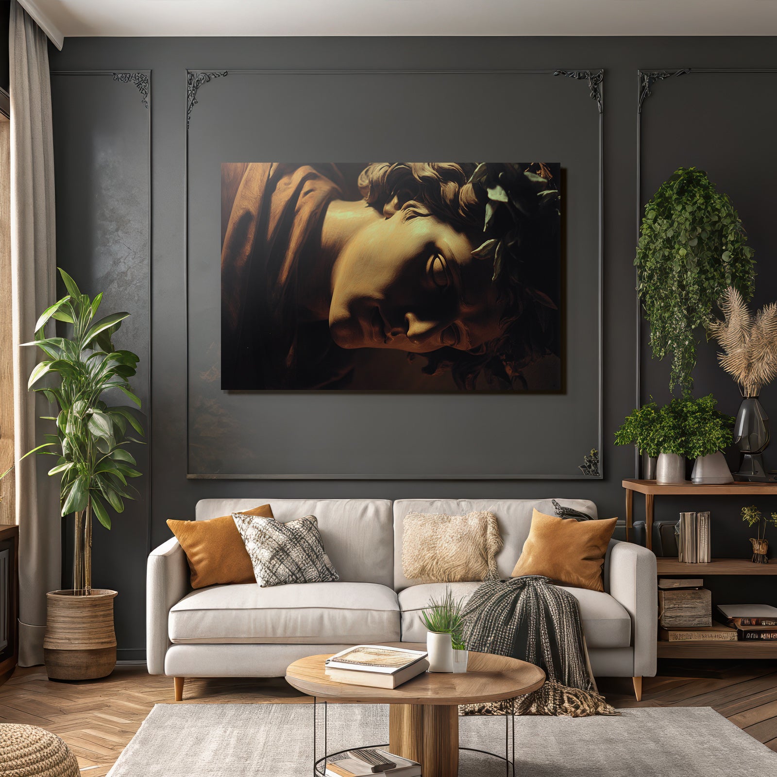 Das Motiv „„Naheaufnahme Der Statue Eines Mythologischen Fixtures““ bringt Klassisch-Inspiration in Dein Zuhause – brillant gedruckt und elegant im FameFrame aufgespannt.