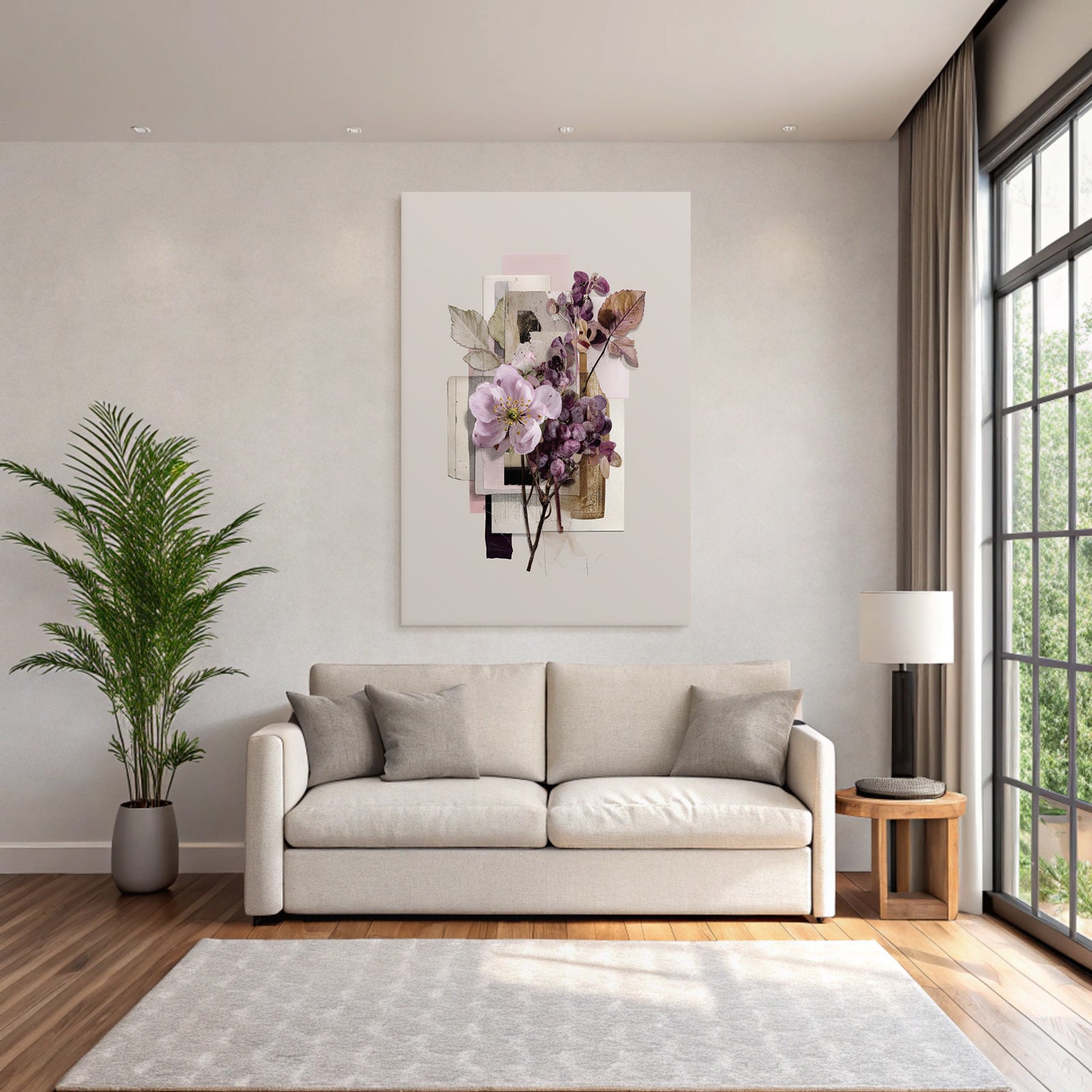 Das Motiv „„Pressed Blumen Blatt Collage Digitale Texturen““ bringt Collagen-Inspiration in Dein Zuhause – brillant gedruckt und elegant im FameFrame aufgespannt.