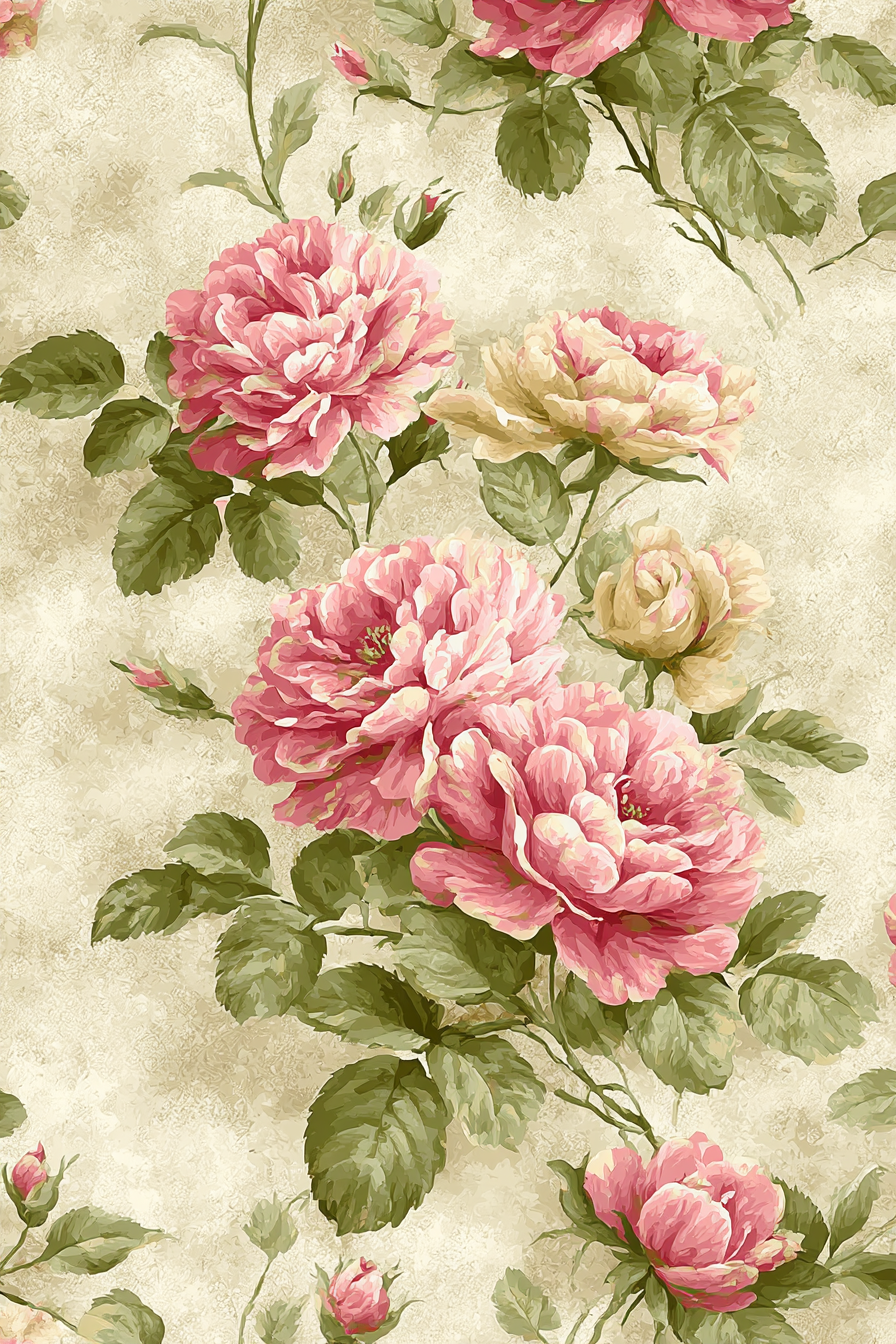 Mit Romantisch und Landhaus-Elementen und klarer Wirkung verleiht „„Rosensmuster Beige““ Deinem Raum Persönlichkeit – eingerahmt im exklusiven FameFrame.
