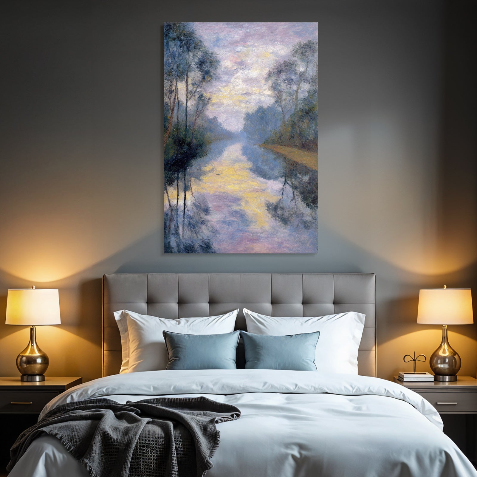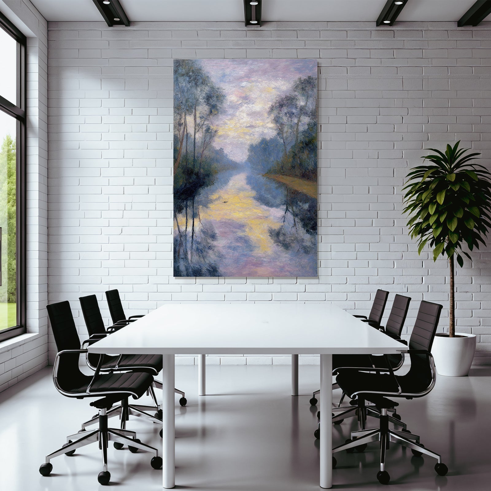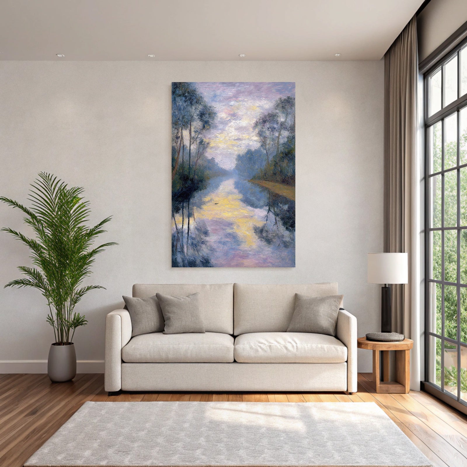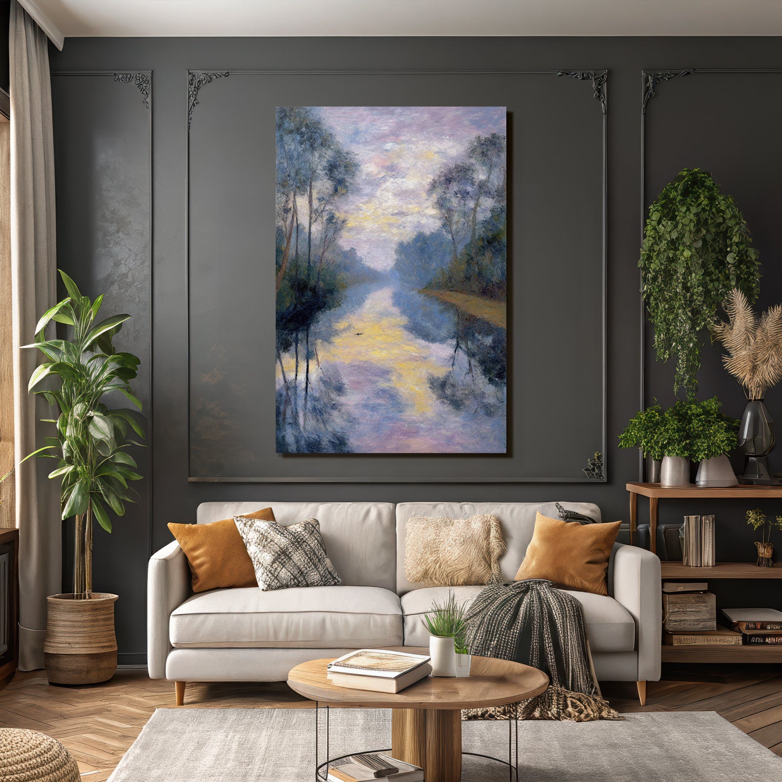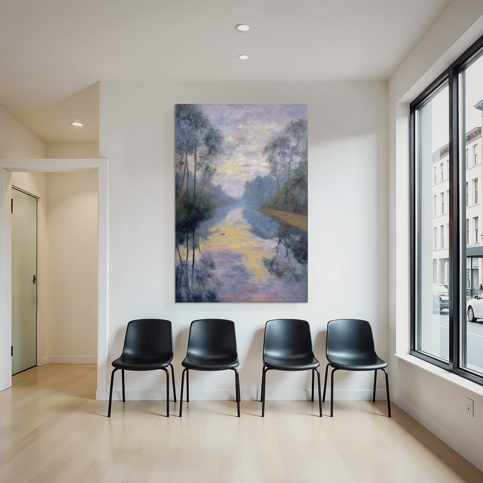 „Ruhige Lichtstimmung Am Wald See“ ist das Highlight für jede Wand. Als brillanter Textildruck im Stil Impressionismus wird es im FameFrame™ zu einem dynamischen und wandelbaren Kunstobjekt.