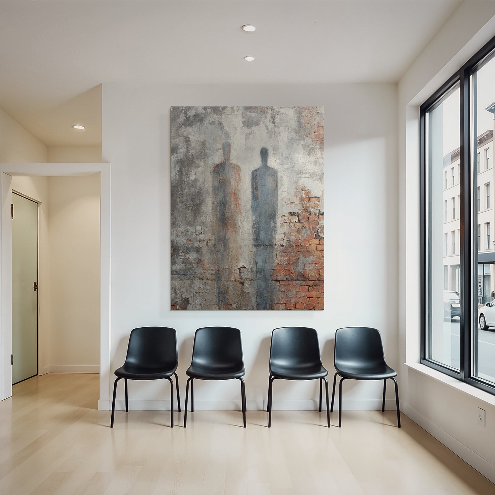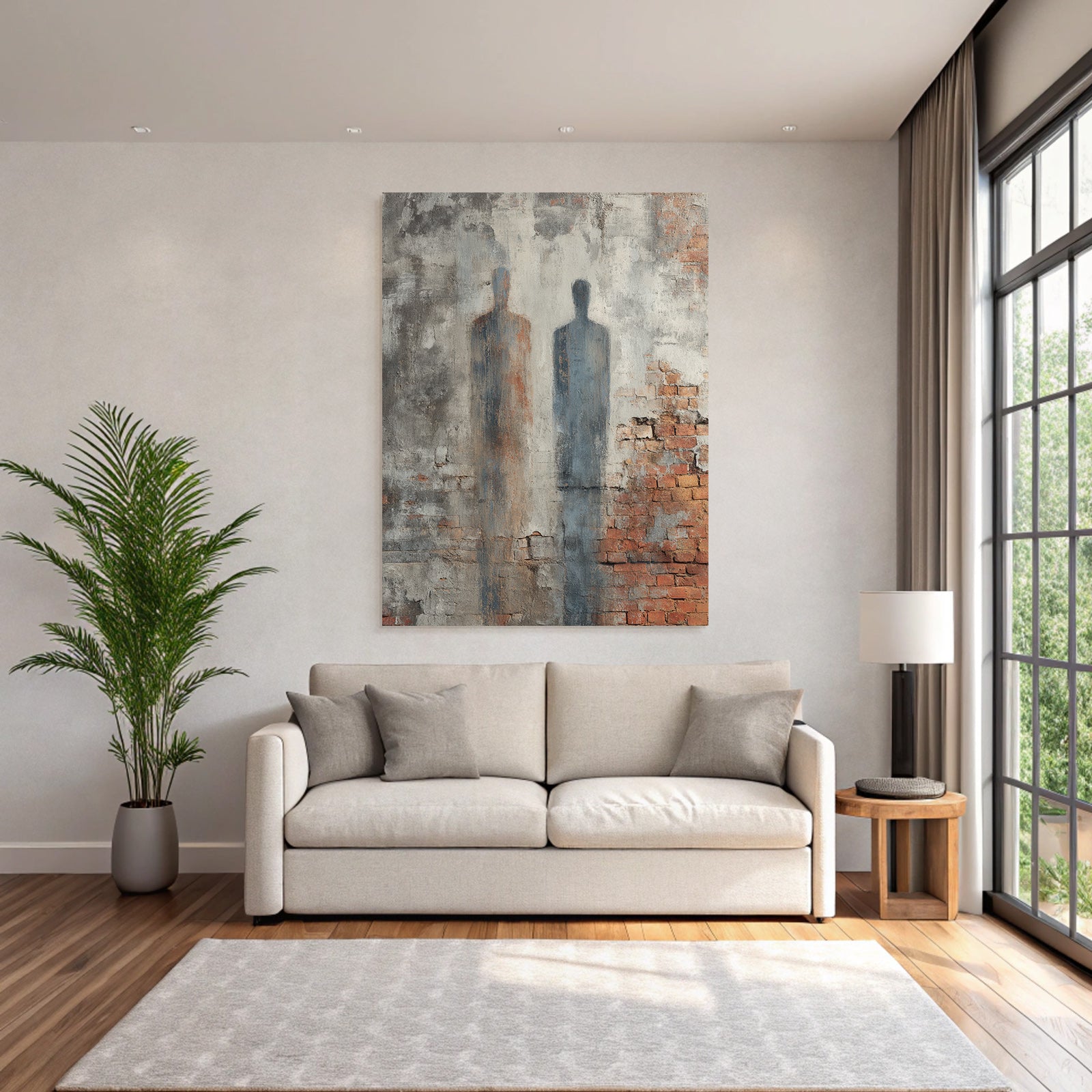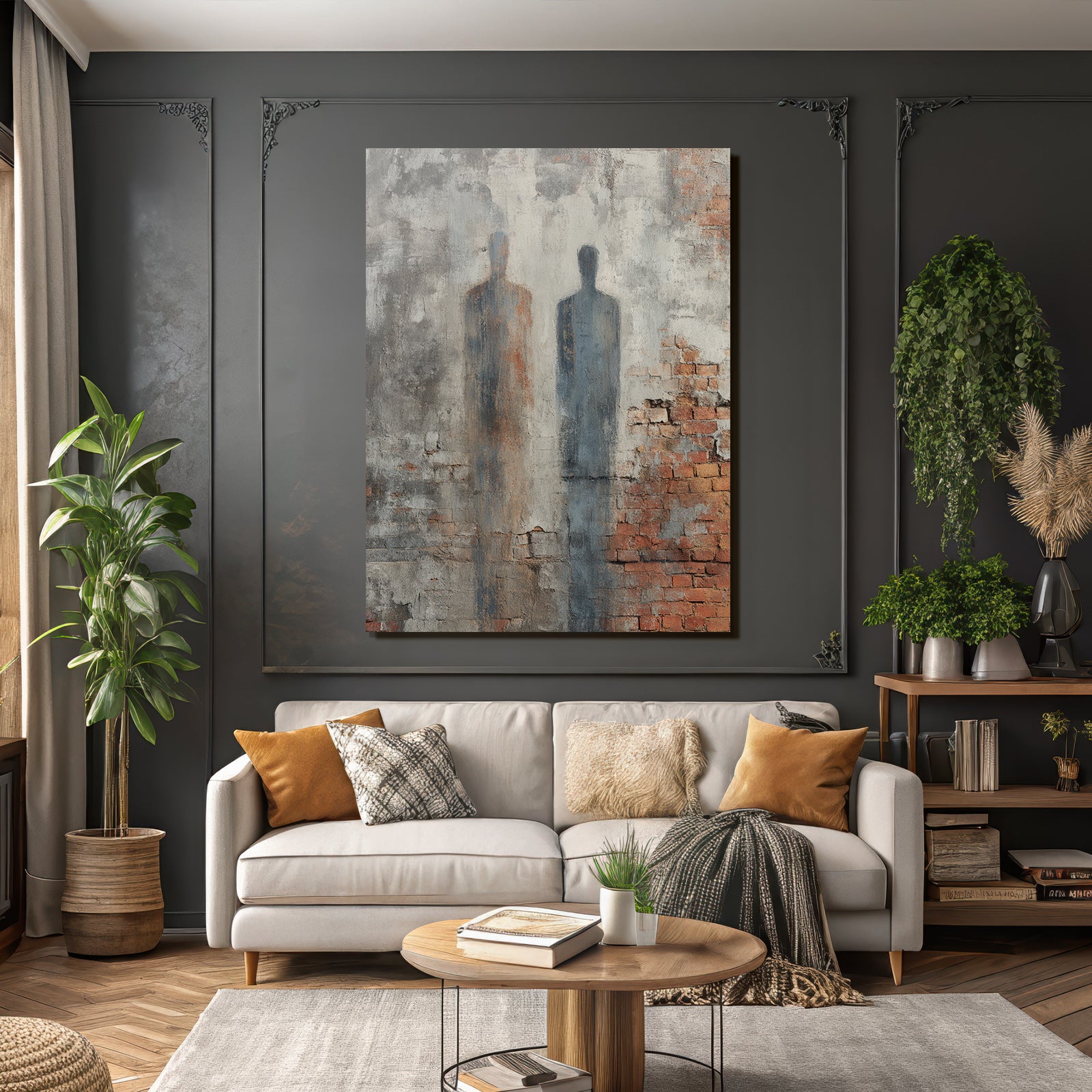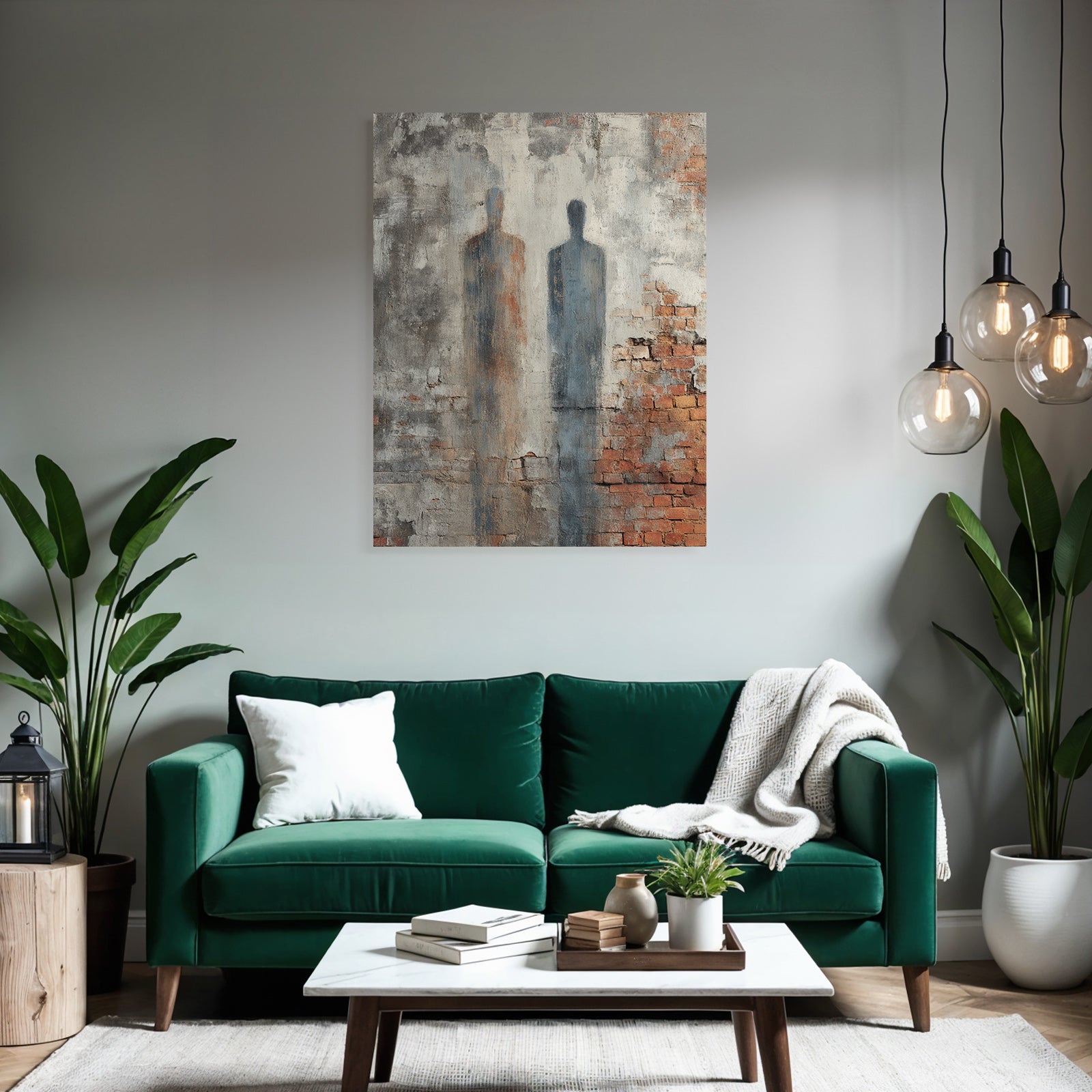 Mit Industrial-Elementen und klarer Wirkung verleiht „„ Schattenfiguren An Wand““ Deinem Raum Persönlichkeit – eingerahmt im exklusiven FameFrame.