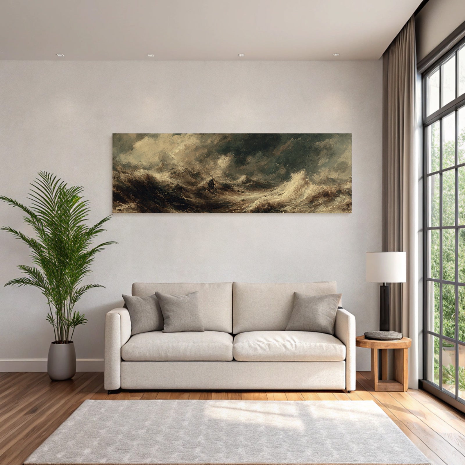 „Schiff Im Sturmmeer Unter Dunklen Wolken“ – ein Motiv, das begeistert. Inspiriert vom Stil Nahaufnahmen, setzt dieses Werk im edlen FameFrame einen unverwechselbaren Akzent in Ihren Räumen.