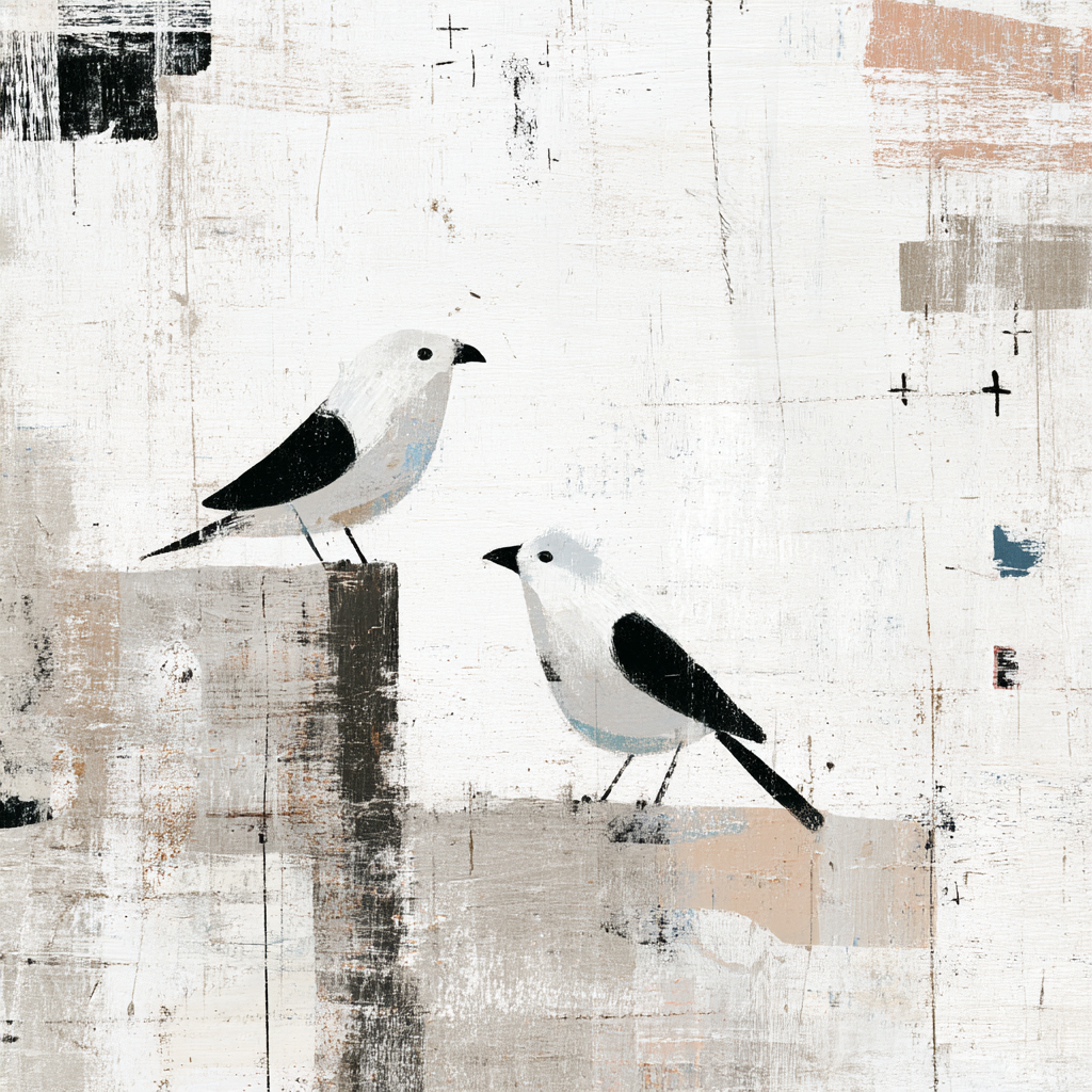 Skandenavisch Voegel Auf Holzpfosten Abstrakte Kunst
