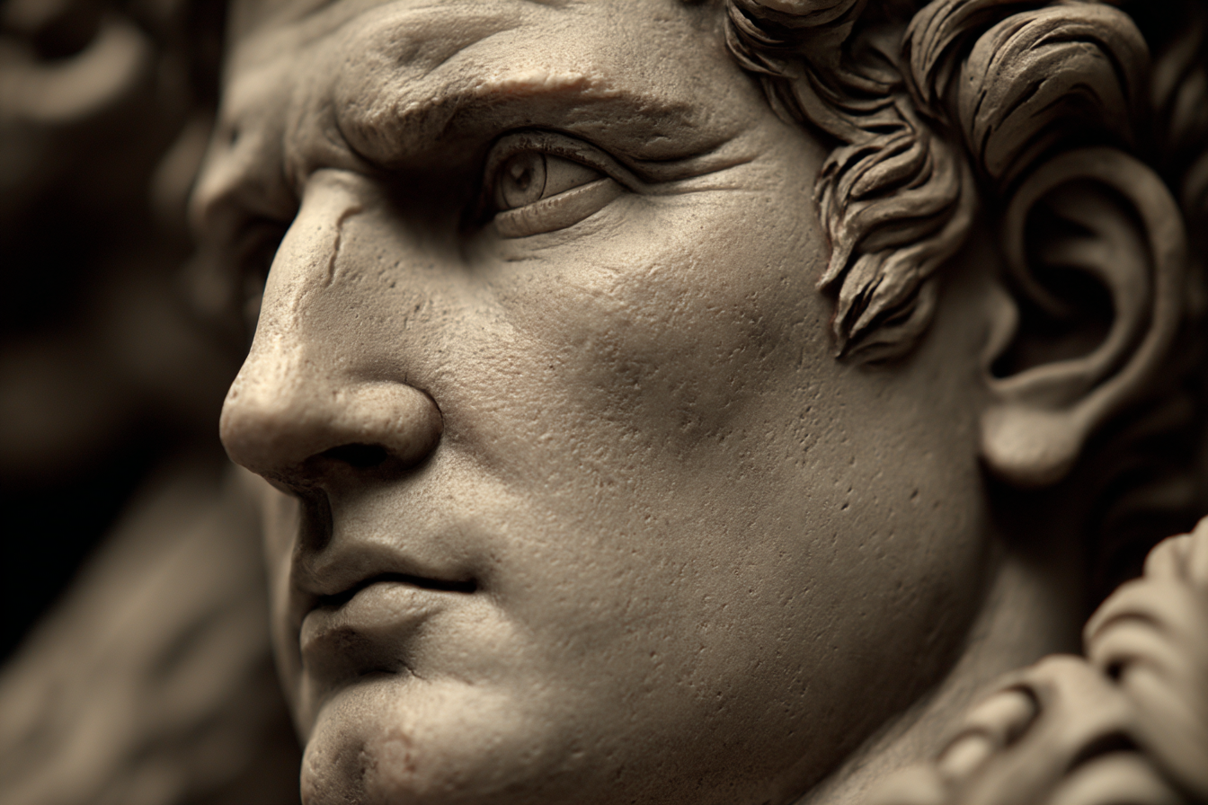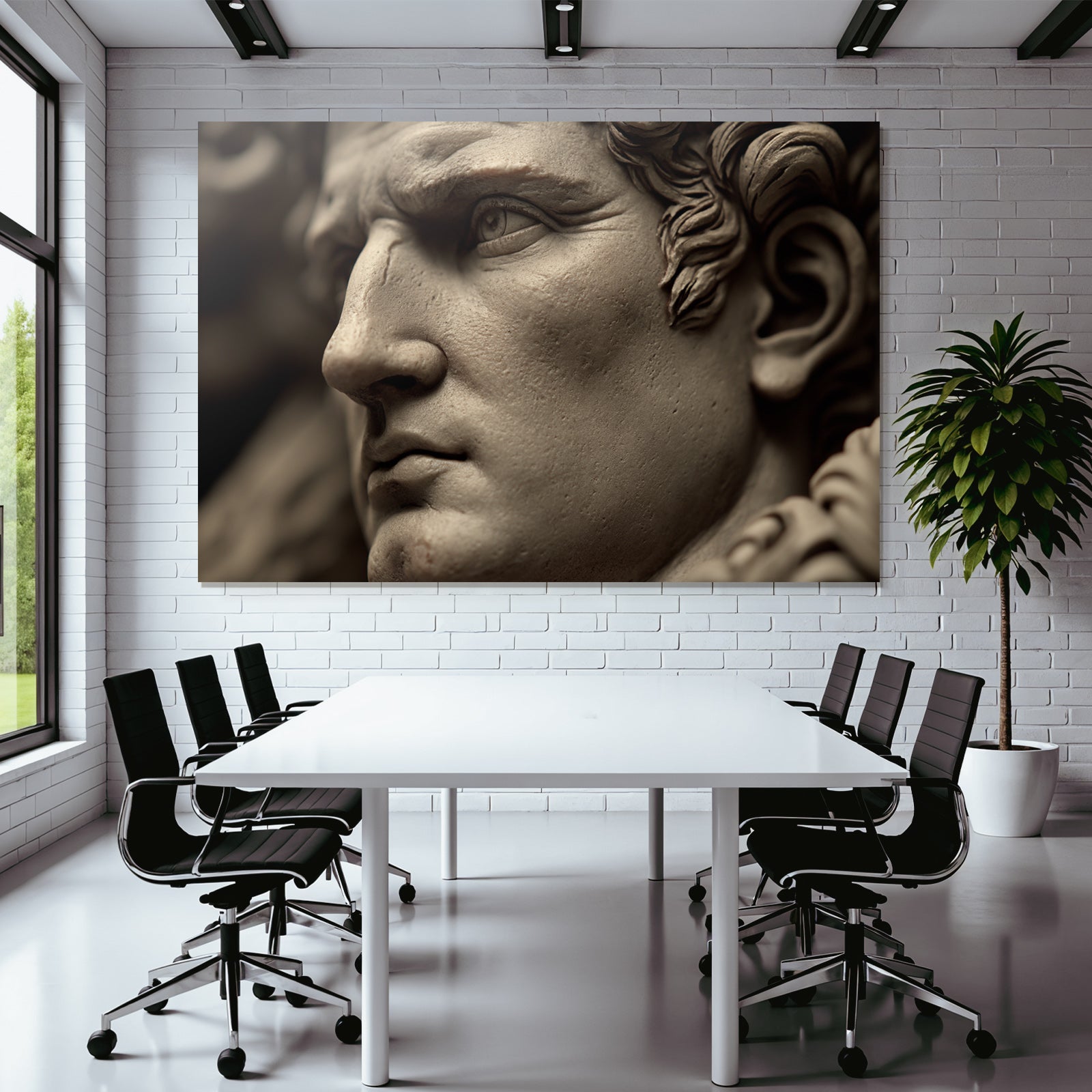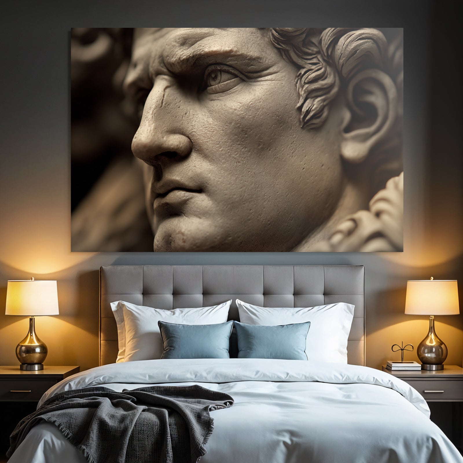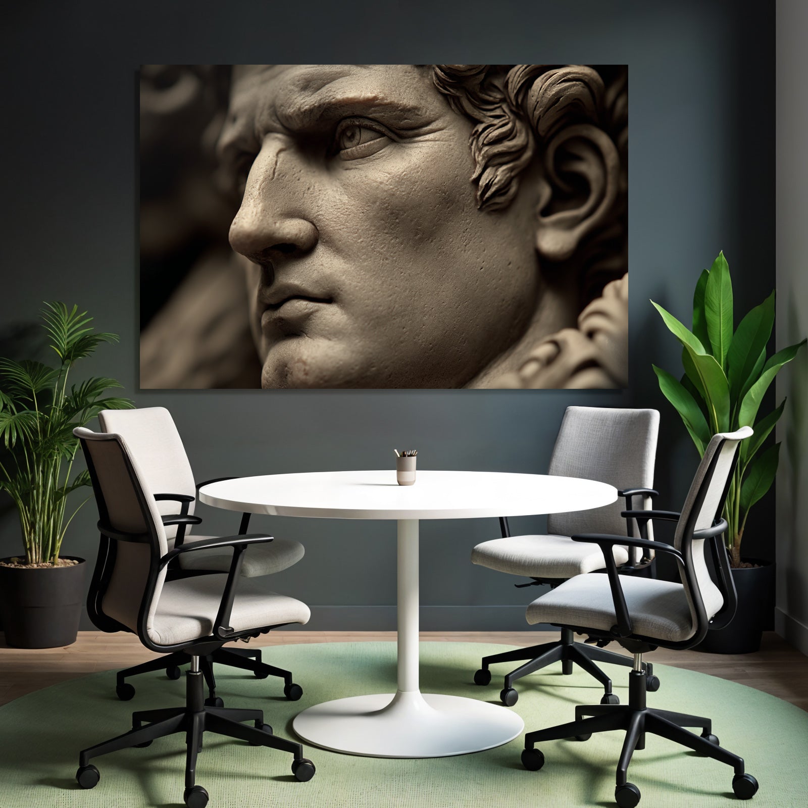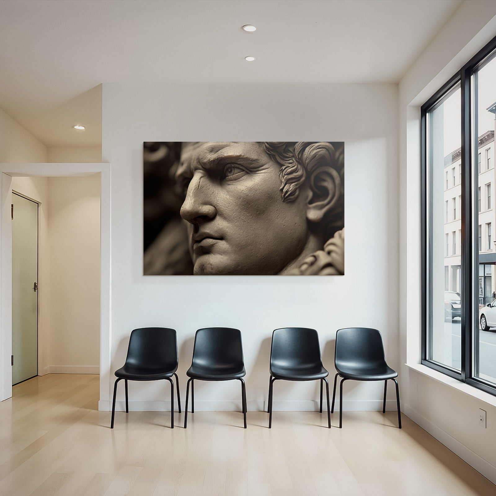 Verschönere Dein Zuhause mit diesem Werk im Stil Klassisch. Der Titel „„Skulptiertes Gesicht Detailaufnahme““ kommt im hochwertigen FameFrame perfekt zur Geltung.