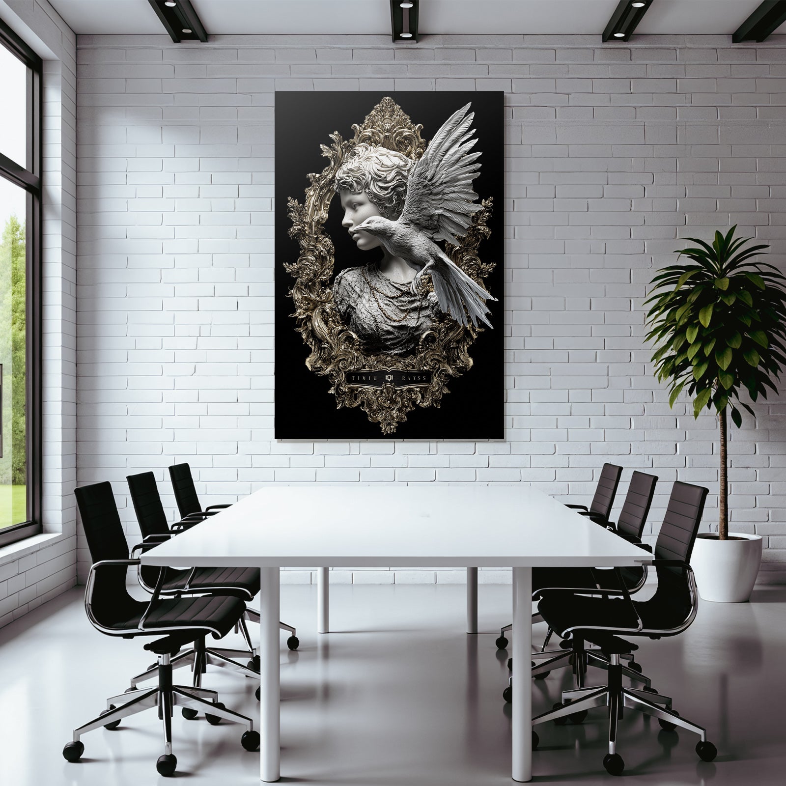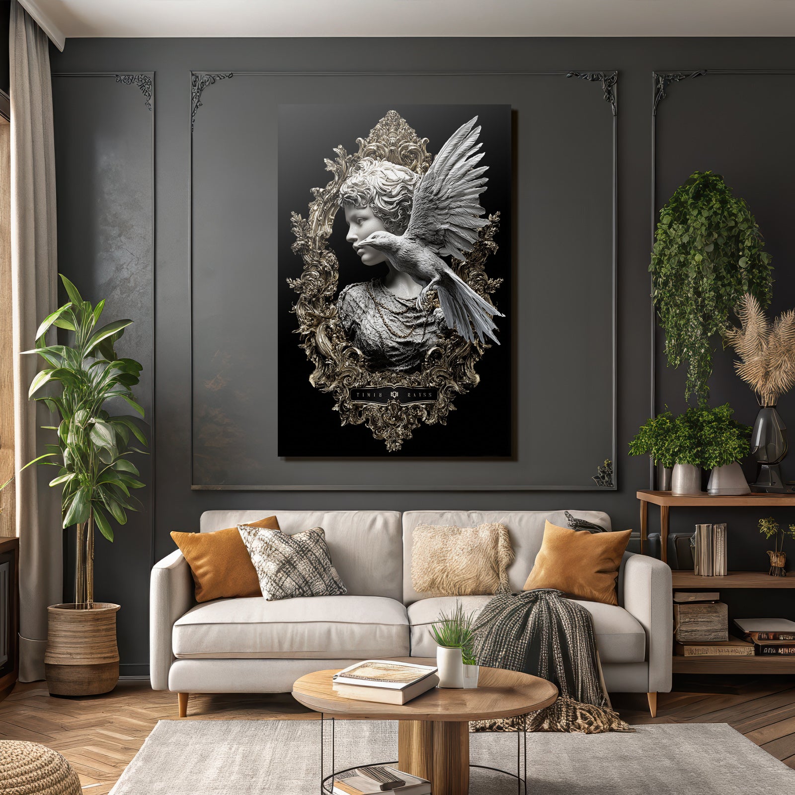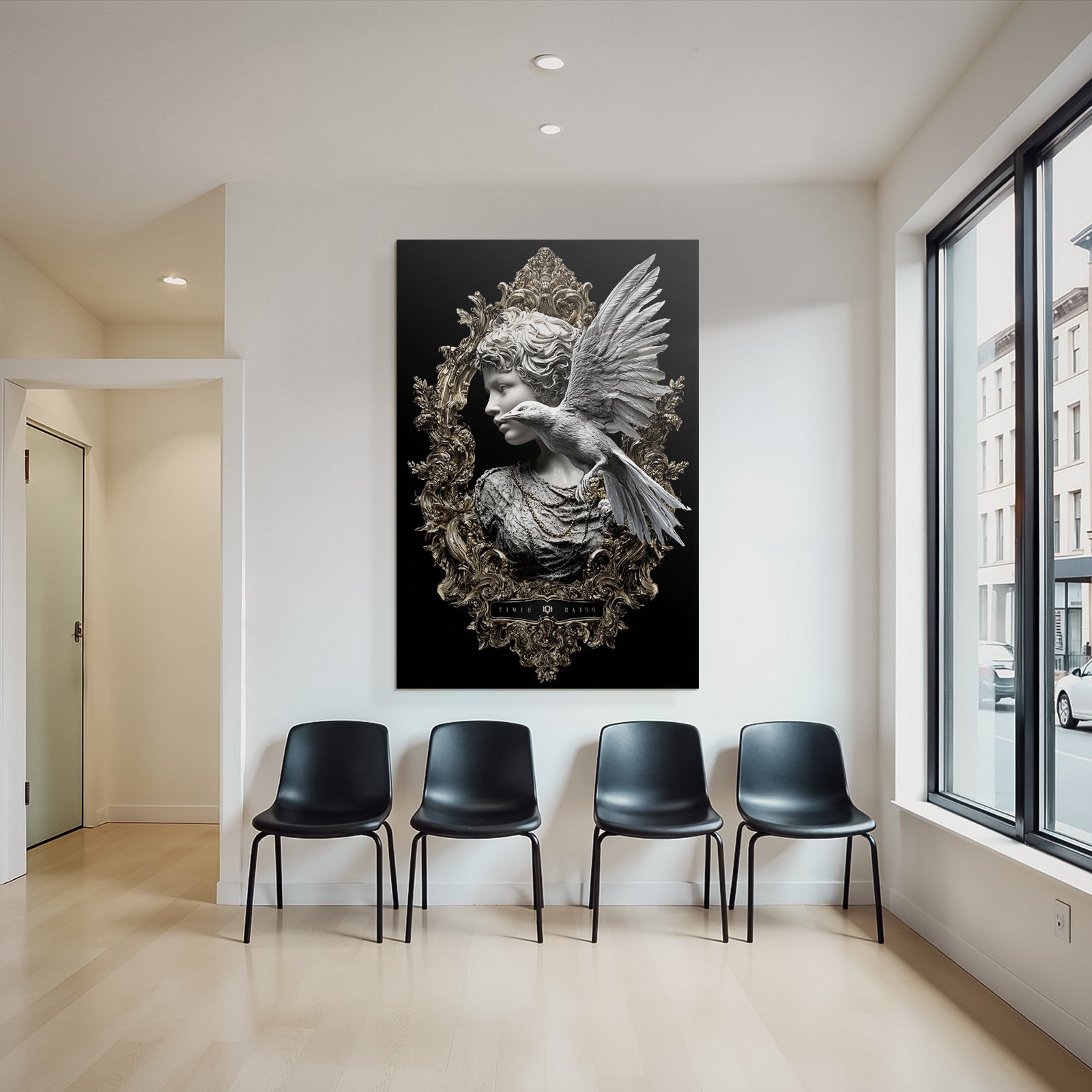 Setz ein Statement: „„Skulpturale Darstellung Mit Vogel Im Goldrahmen““ im Stil Klassisch wird im FameFrame zum echten Kunstobjekt an Deiner Wand.