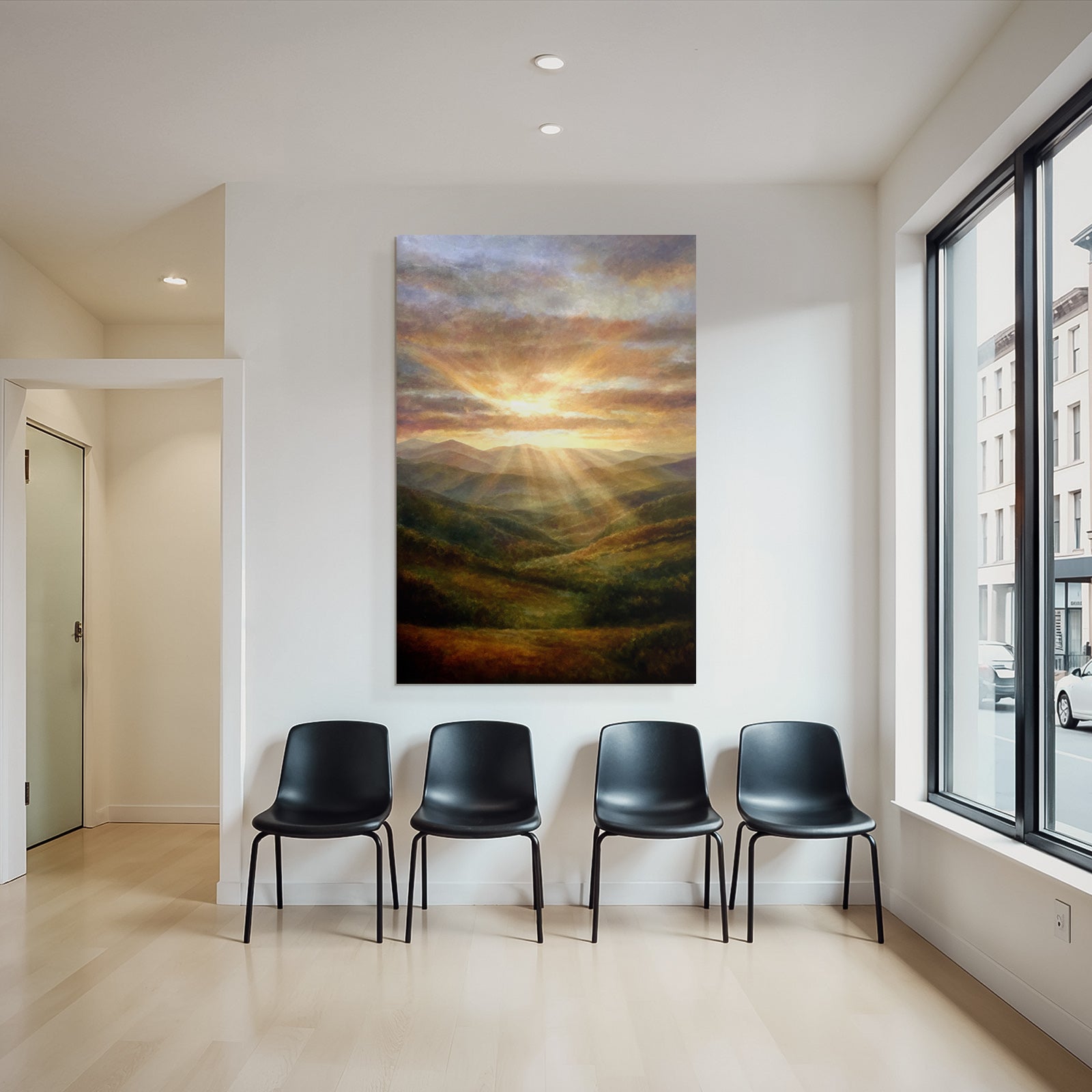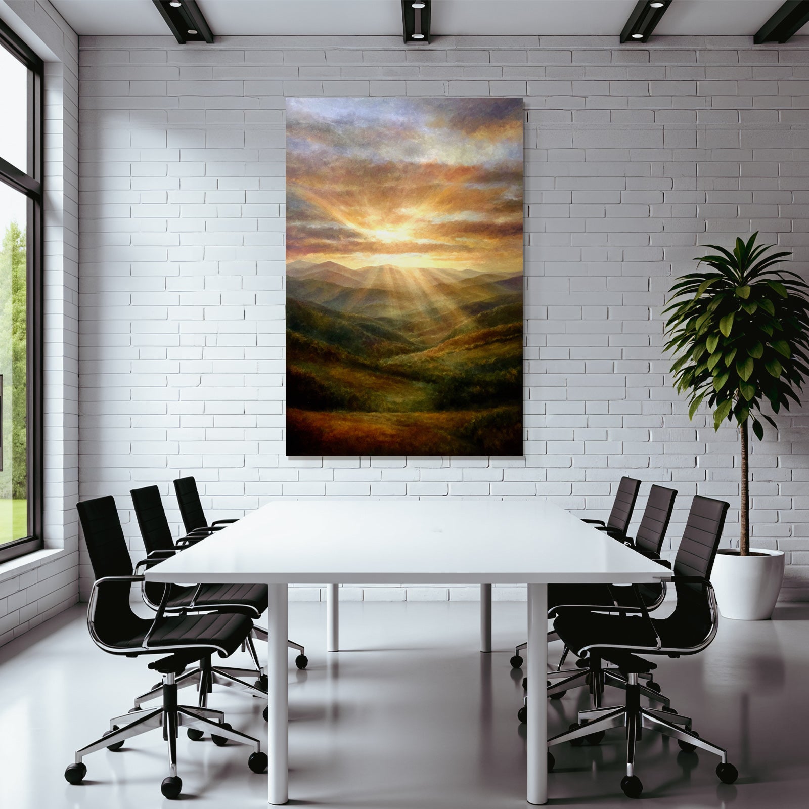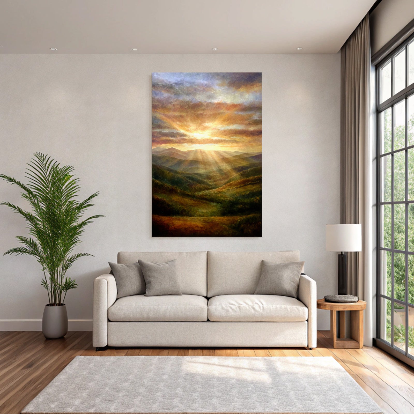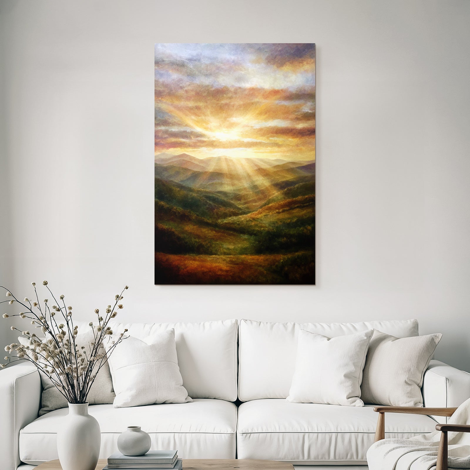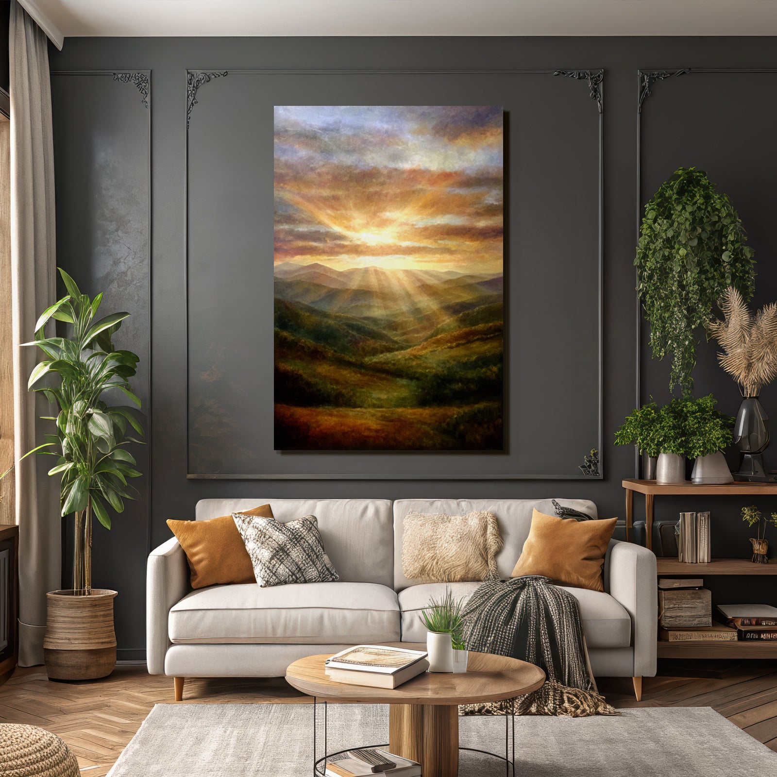 Nebel und Wetter in seiner schönsten Form. Das Motiv „Sonnenaufgang Über Den Bergen“ besticht durch seine klare Komposition und wird im FameFrame zu einem Kunstobjekt von bleibendem Wert.