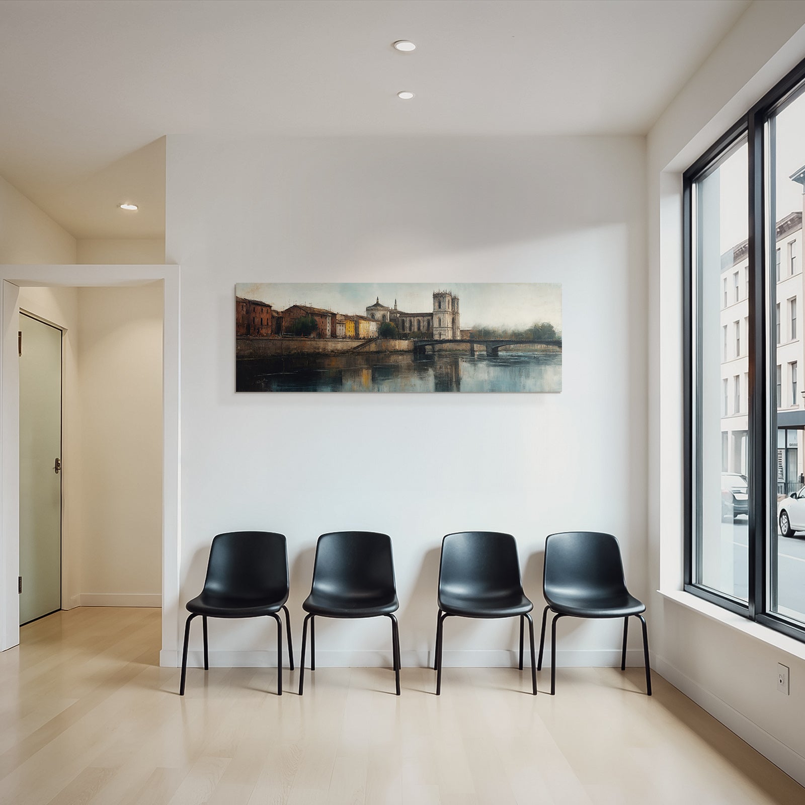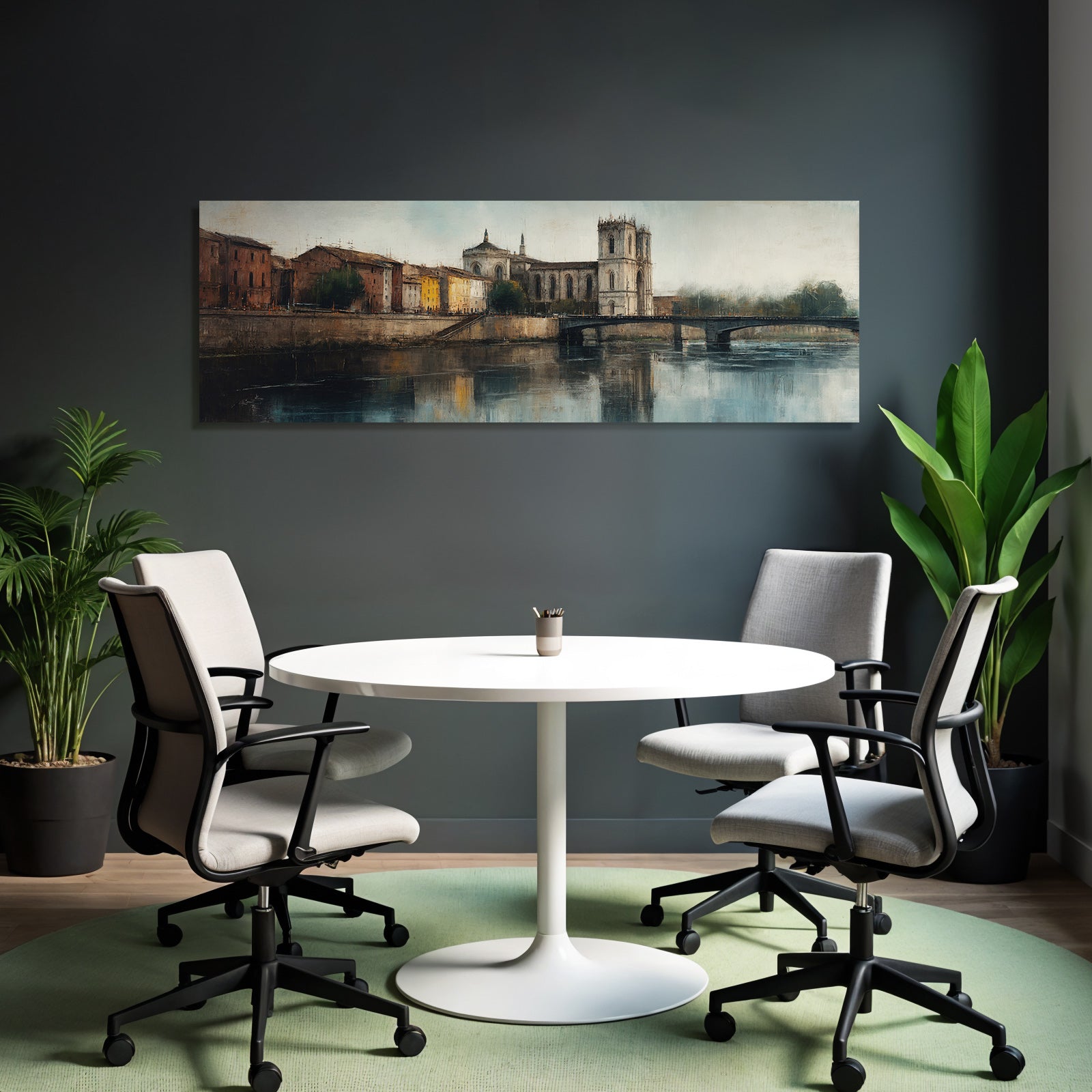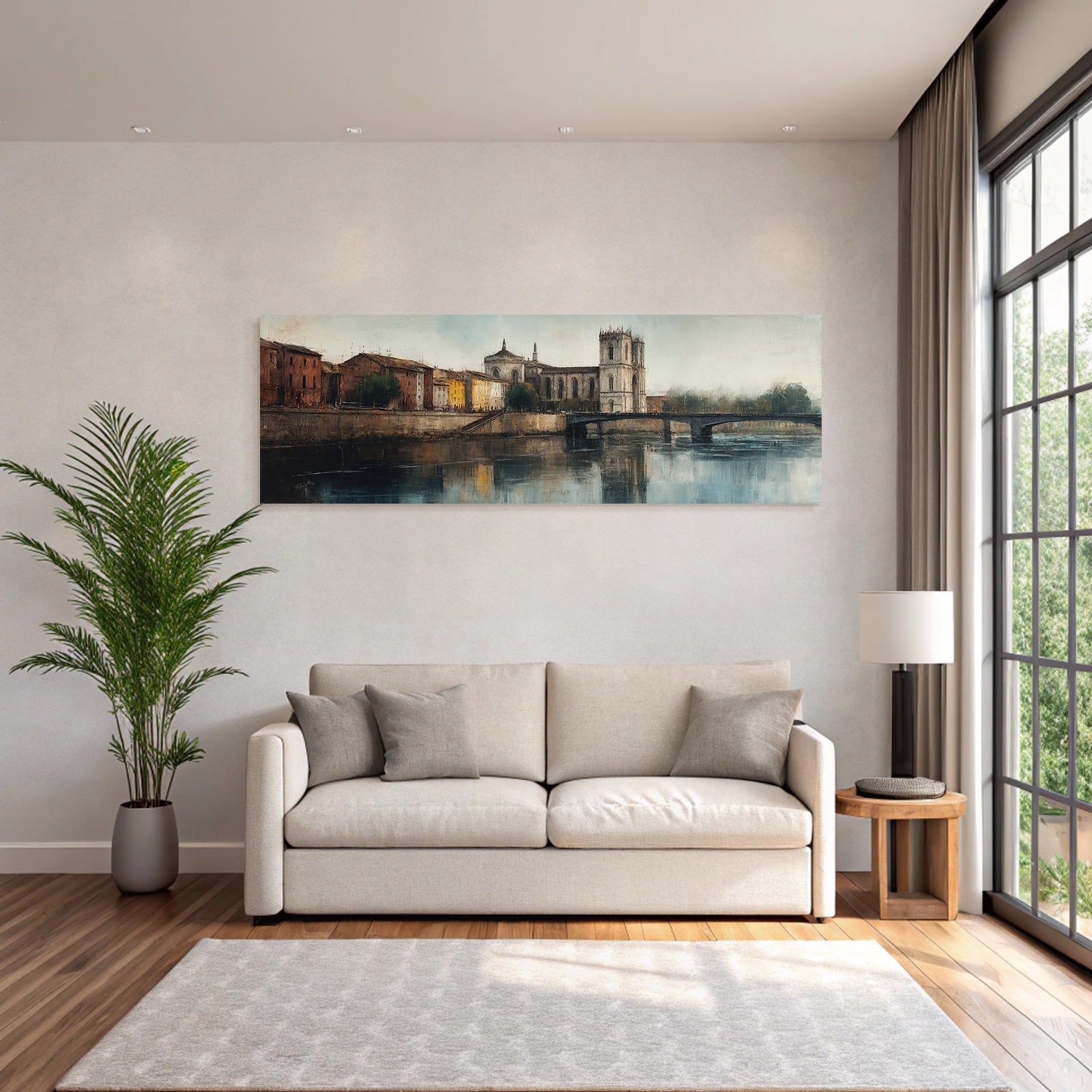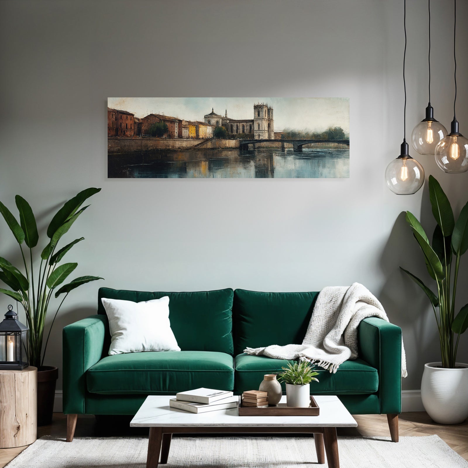 Ideal für Innenräume mit Stil: „„Stadtansicht Fluss Bruecke Kirche Impressionistisch““ im Stil Klassisch zieht im FameFrame die Blicke auf sich – egal ob Zuhause oder im Geschäft.
