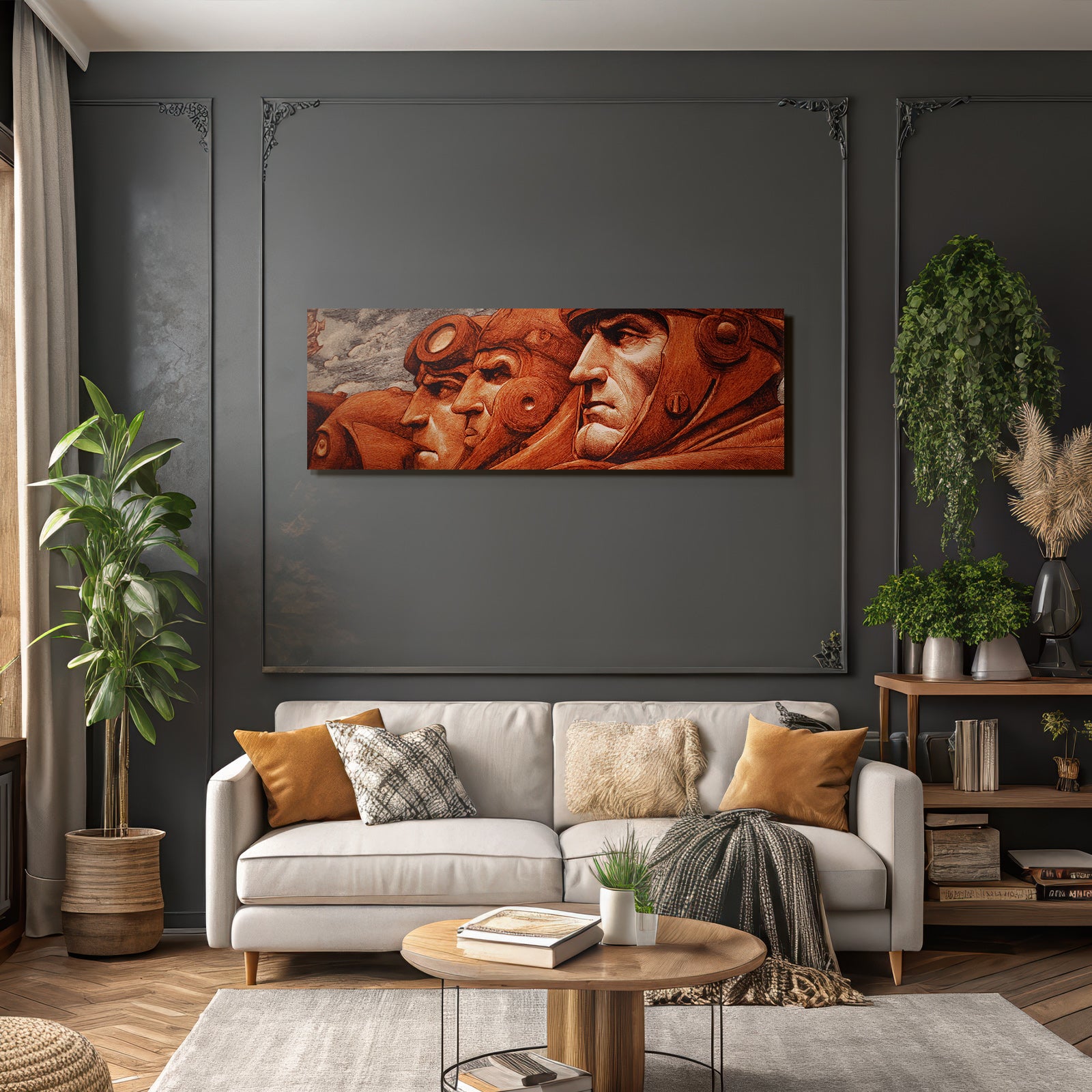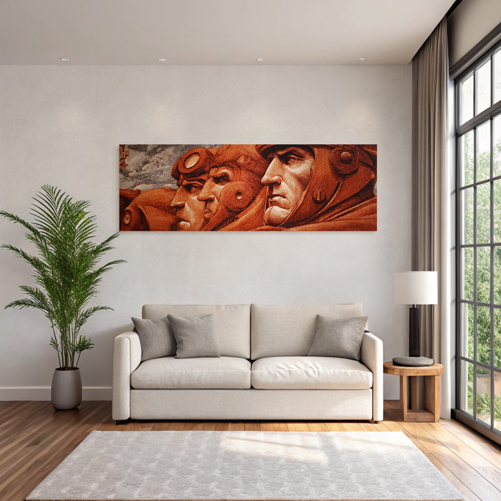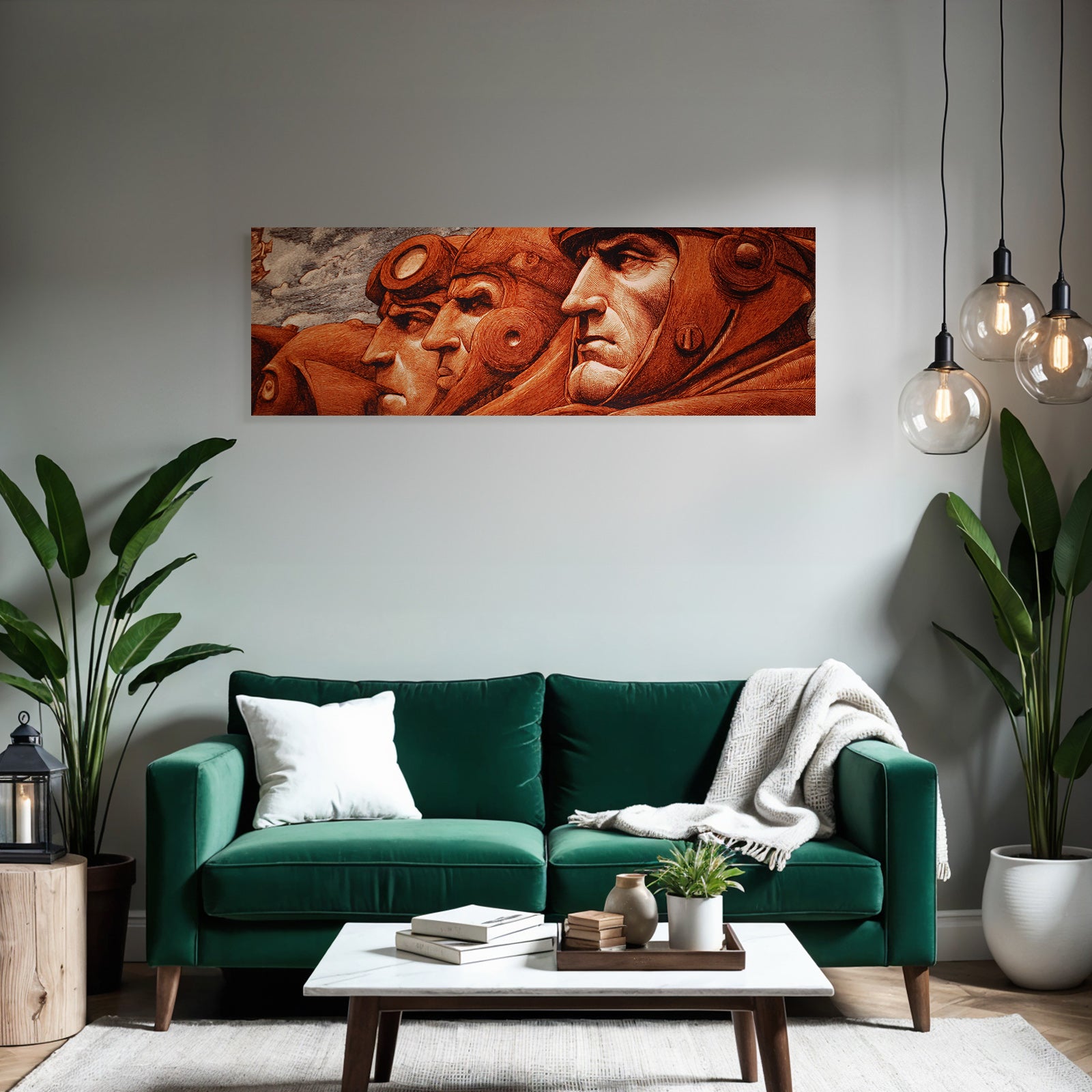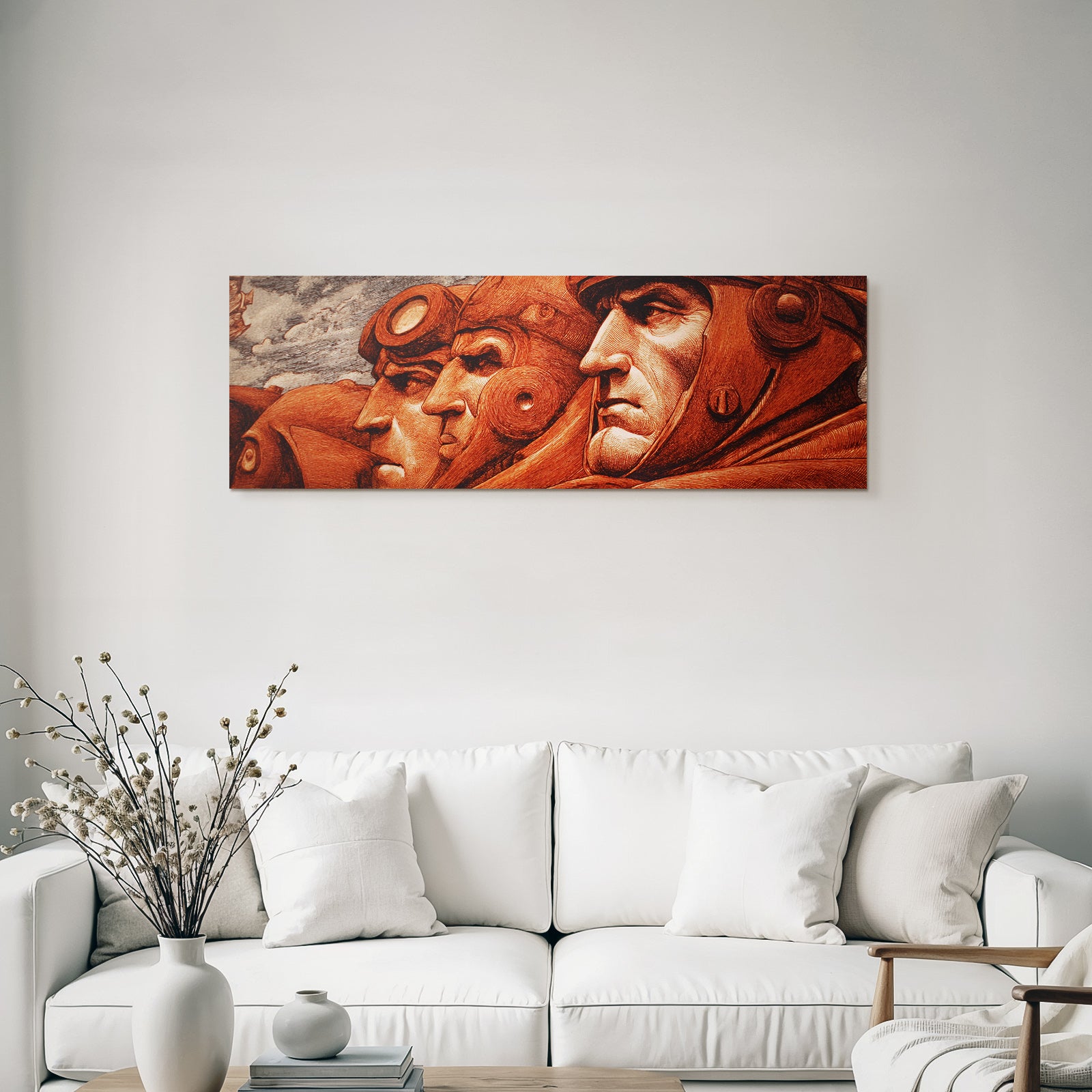 Das Motiv „„Starke Gesichter Streit Um Einheit““ bringt Klassisch-Inspiration in Dein Zuhause – brillant gedruckt und elegant im FameFrame aufgespannt.