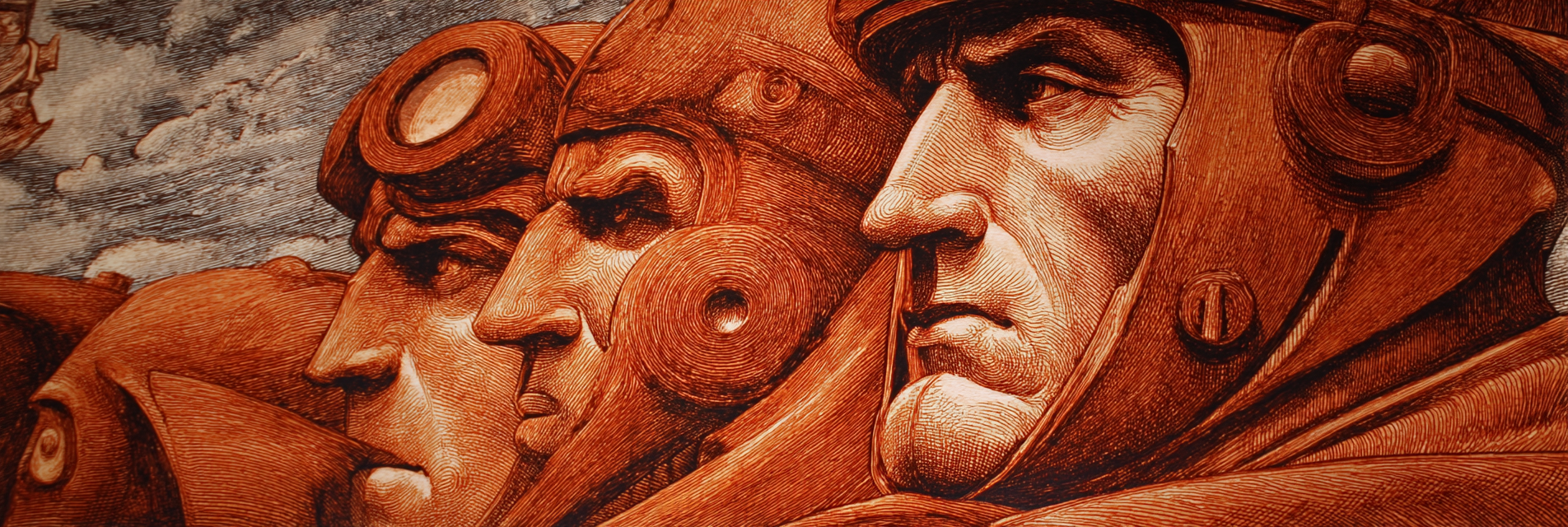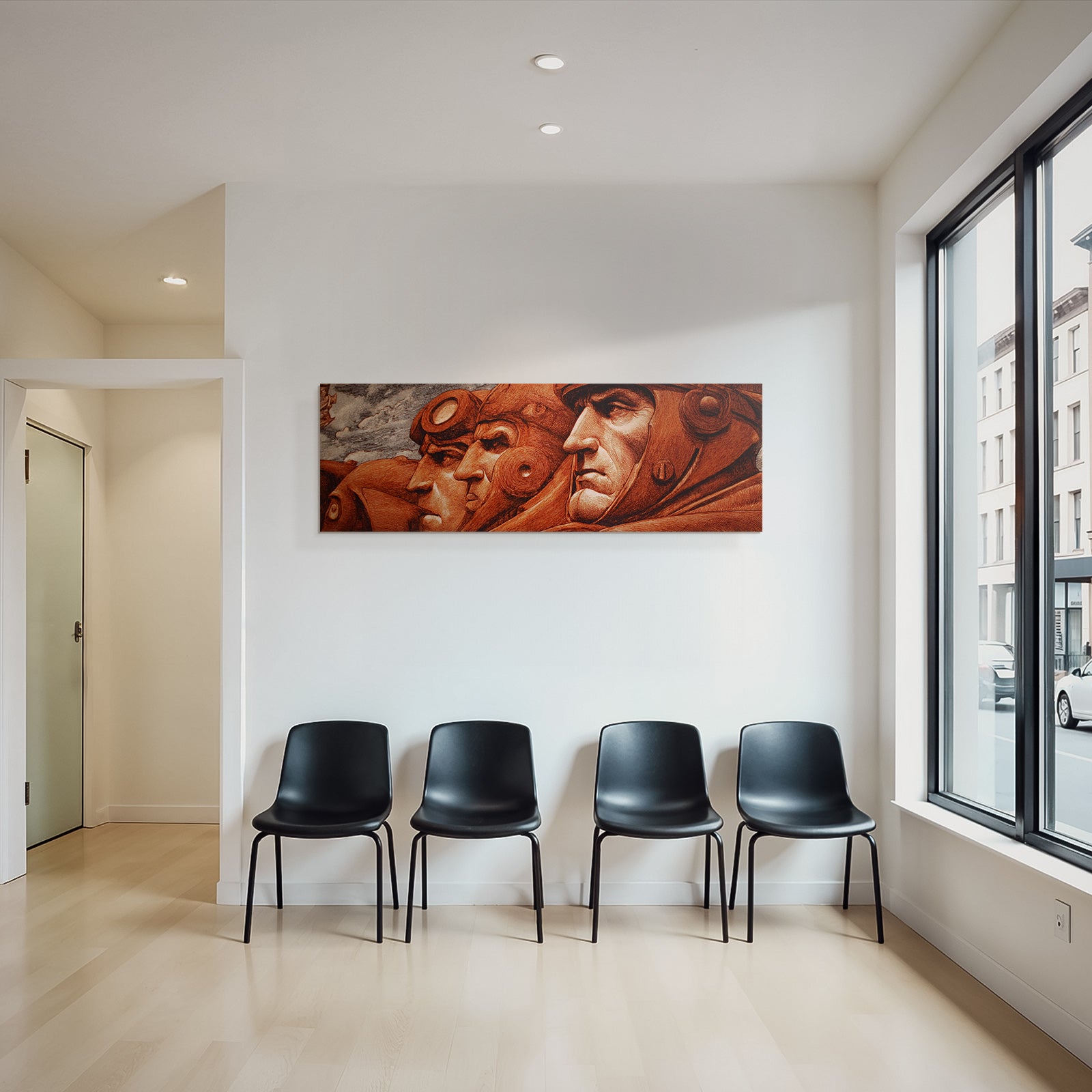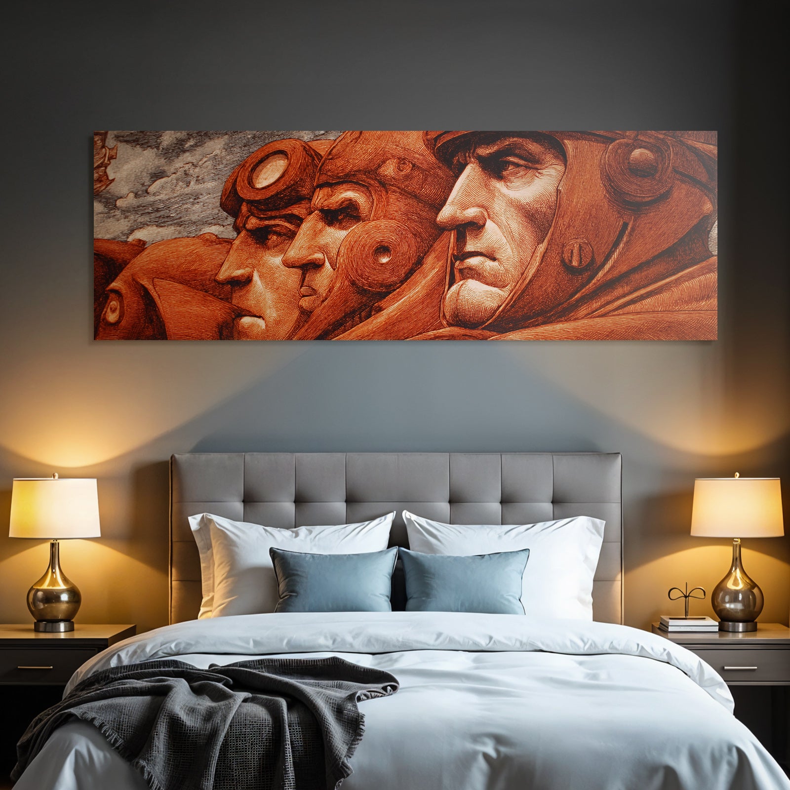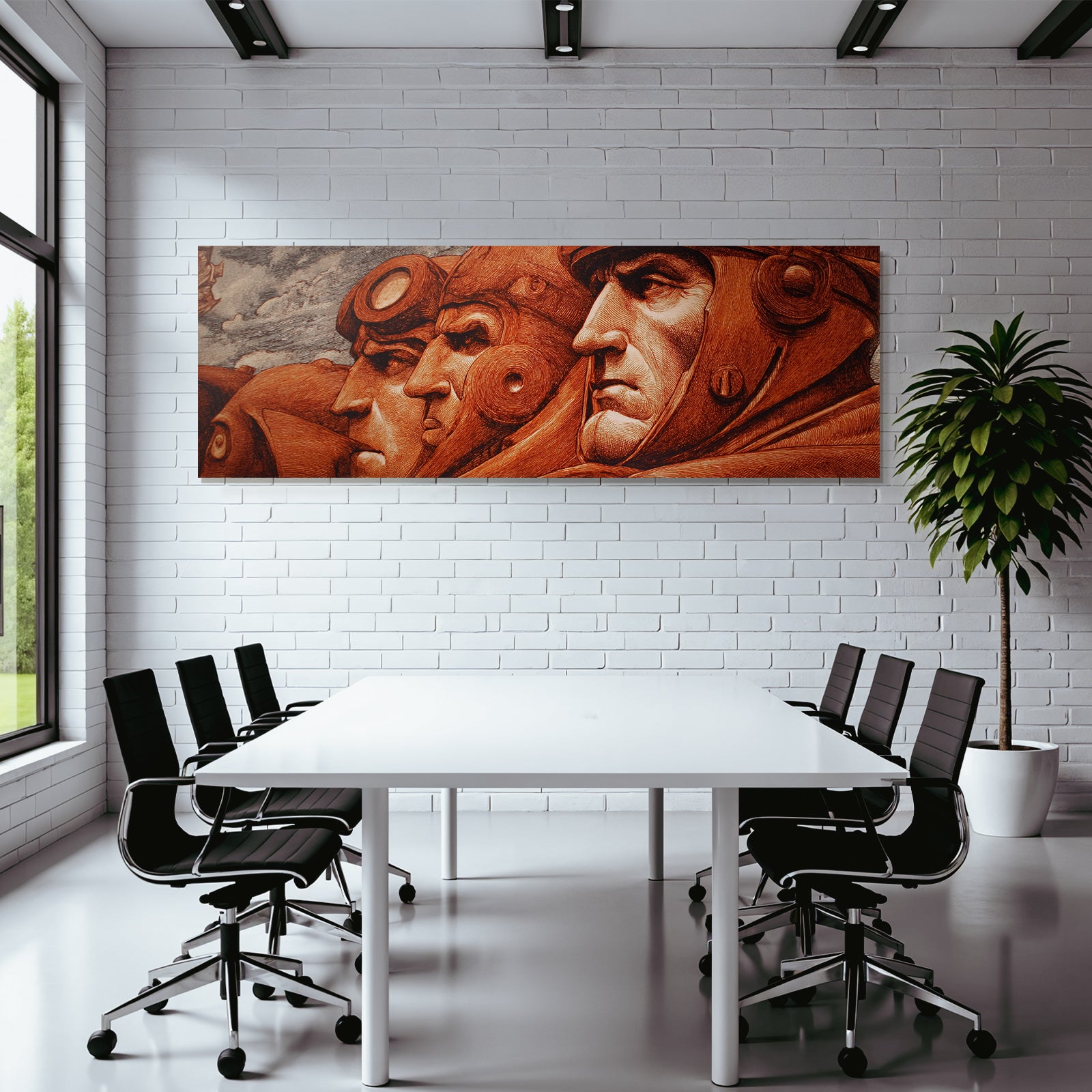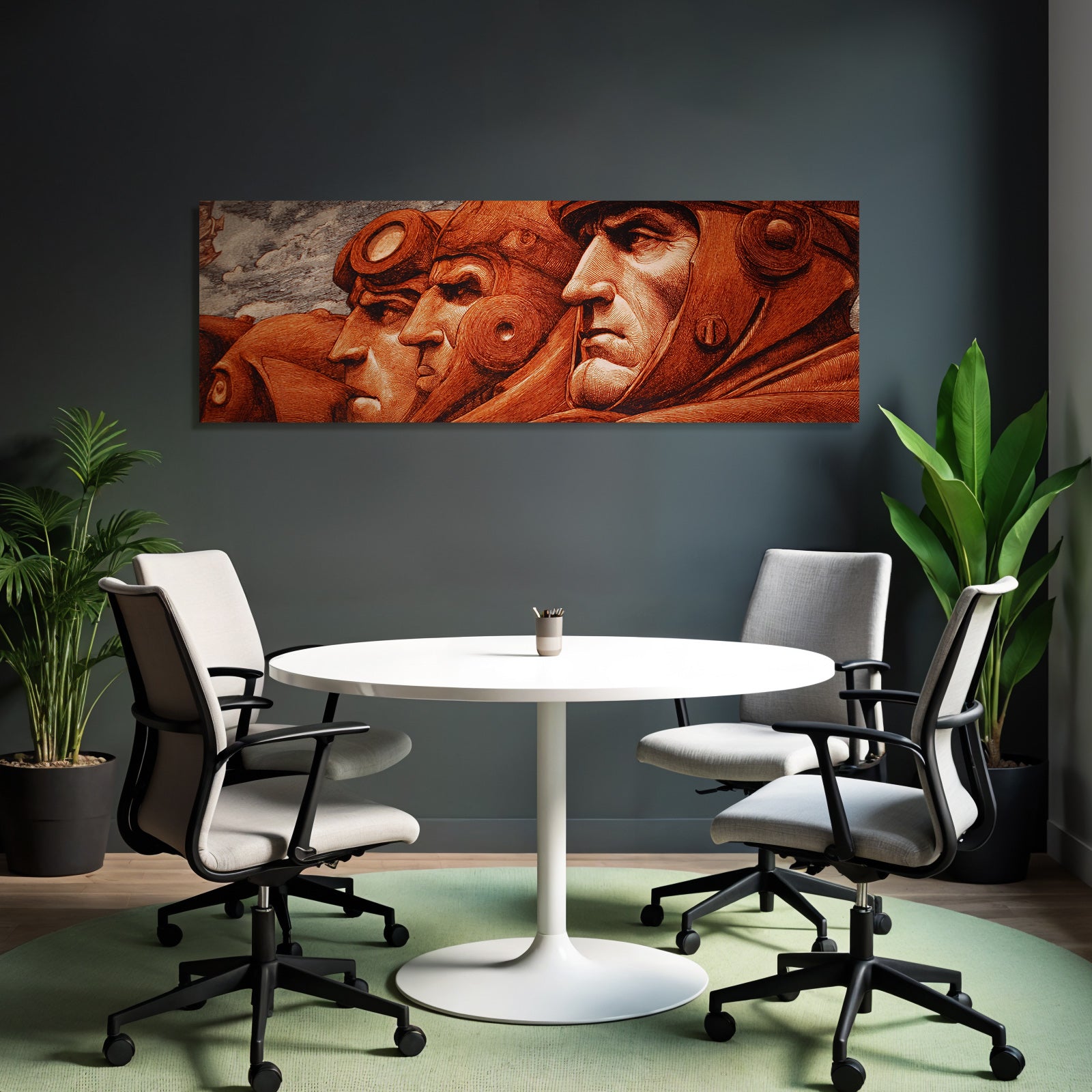 Das Motiv „„Starke Gesichter Streit Um Einheit““ bringt Klassisch-Inspiration in Dein Zuhause – brillant gedruckt und elegant im FameFrame aufgespannt.