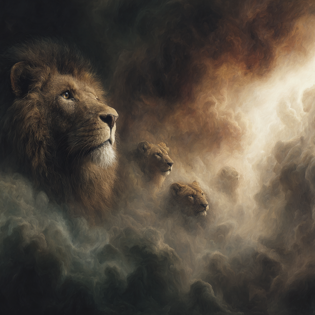 Stilisierte Loewen Mit Dramatischem Hintergrund