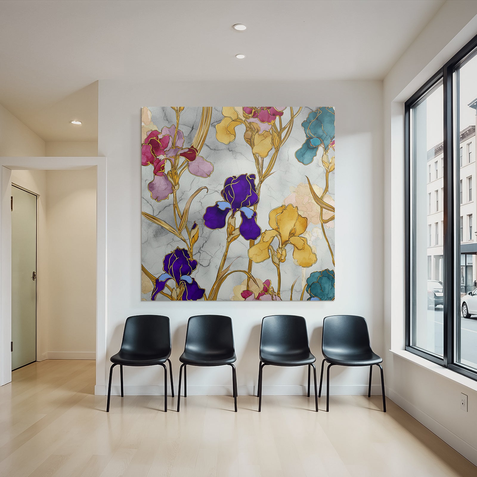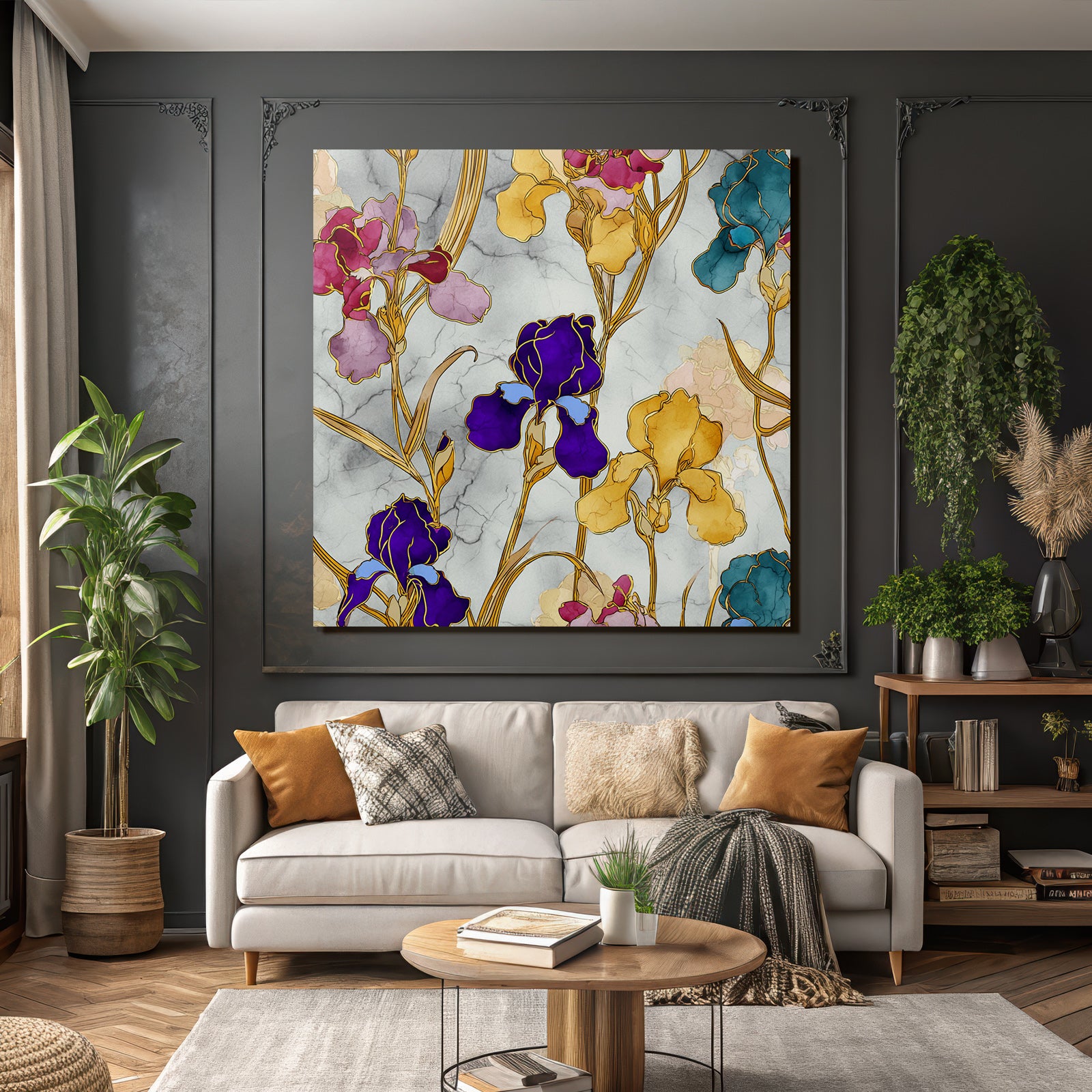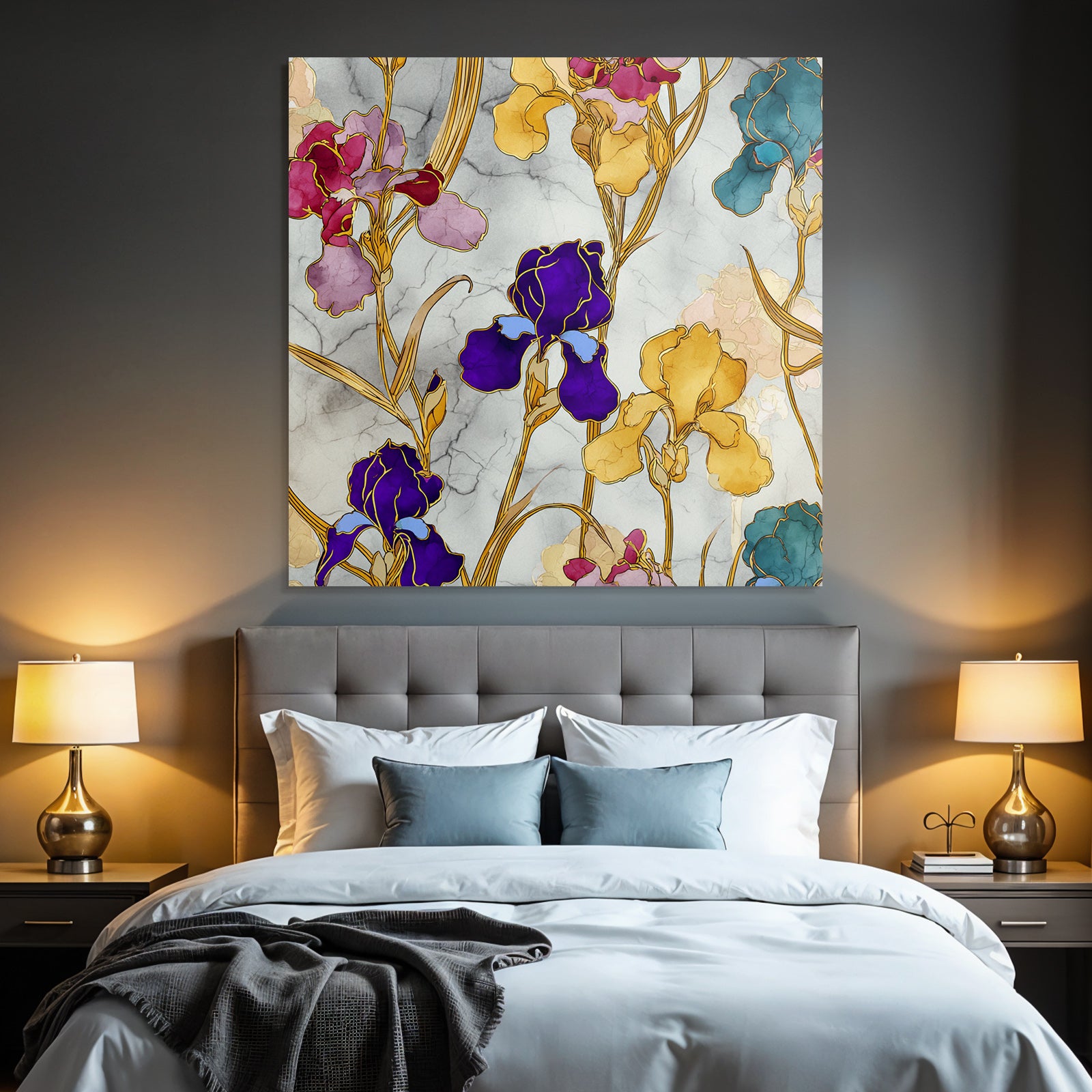 Ein Statement für Individualität: „Stilisiertes Irisblumenmuster In Pastellfarben“ fängt den Geist von Jugendstil ein und wird im FameFrame™ zu Ihrem ganz persönlichen Kunst-Highlight.