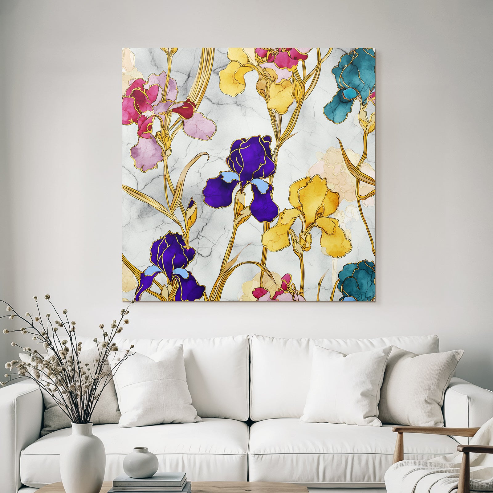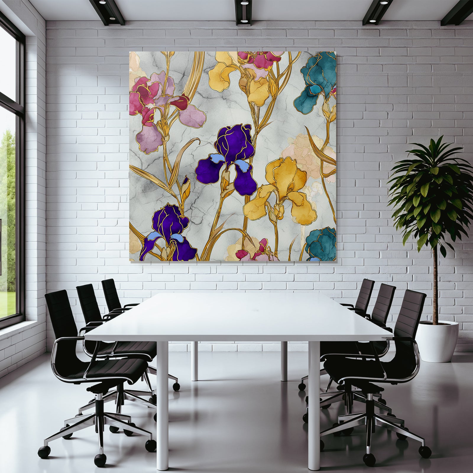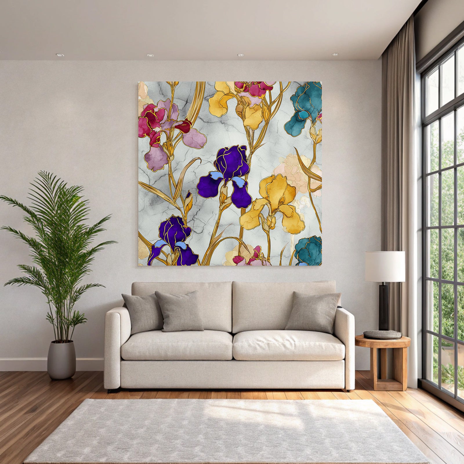 Ein Statement für Individualität: „Stilisiertes Irisblumenmuster In Pastellfarben“ fängt den Geist von Jugendstil ein und wird im FameFrame™ zu Ihrem ganz persönlichen Kunst-Highlight.