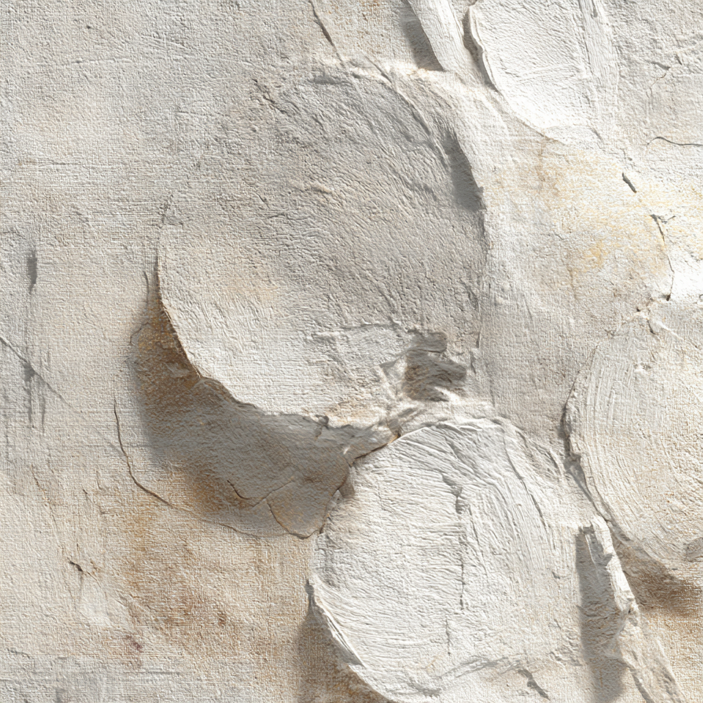 Ob Flur, Wohnraum oder Wartebereich – das Motiv „„Texturierte Oberflaeche Kreisformen““ im Stil Skandinavisch wirkt durch den hochwertigen FameFrame besonders modern.