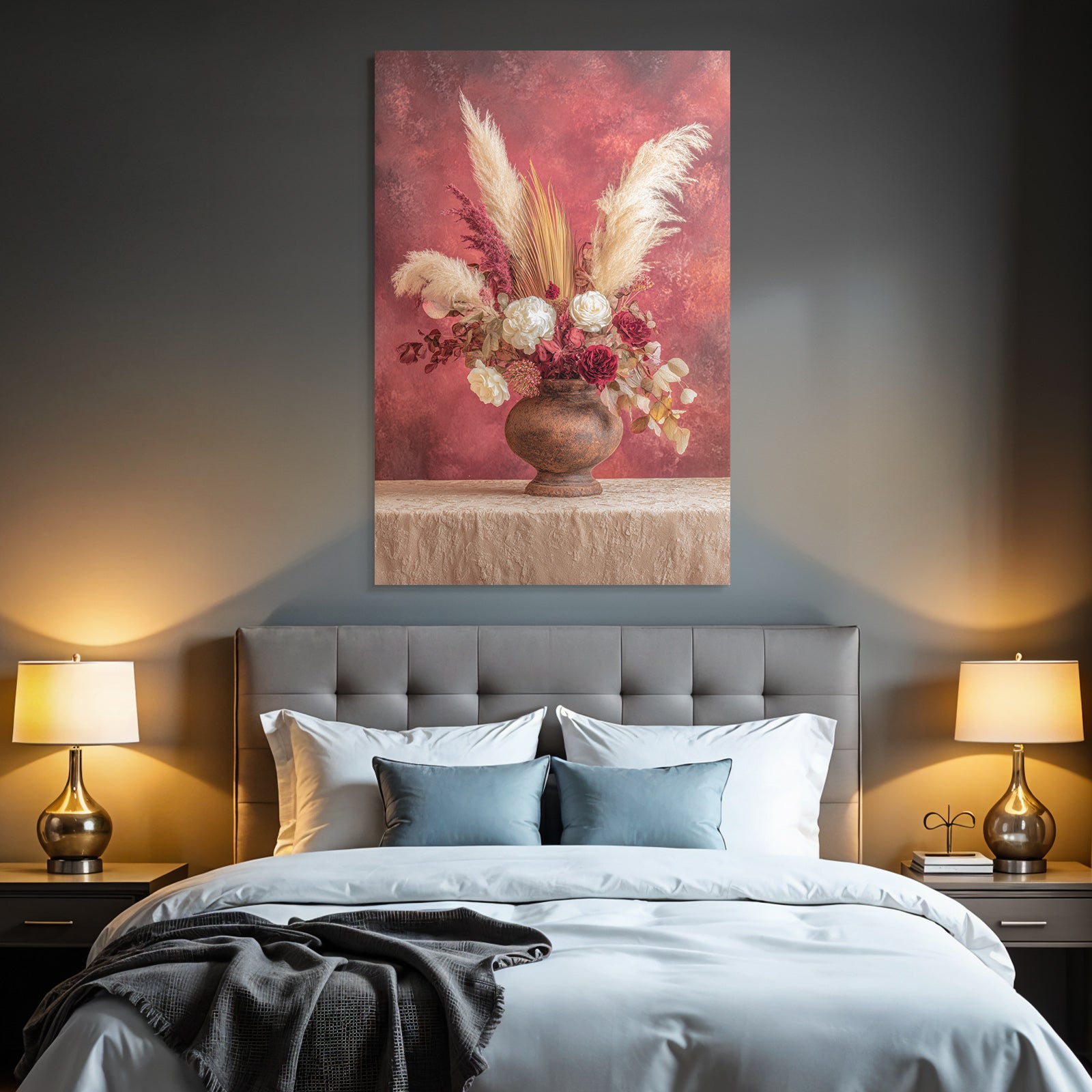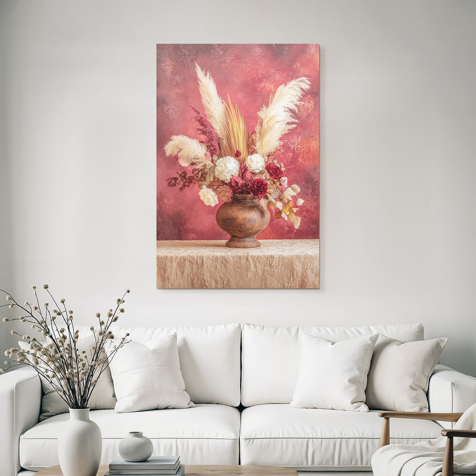 Ein einzigartiges Kunstwerk der Produktlinie FameFrame mit dem Titel „Trocken Retro Flowers Getrocknete Dekorative Anordnung In Rustikalem Vase“, im Stil Trockenblumen Retro Flowers.