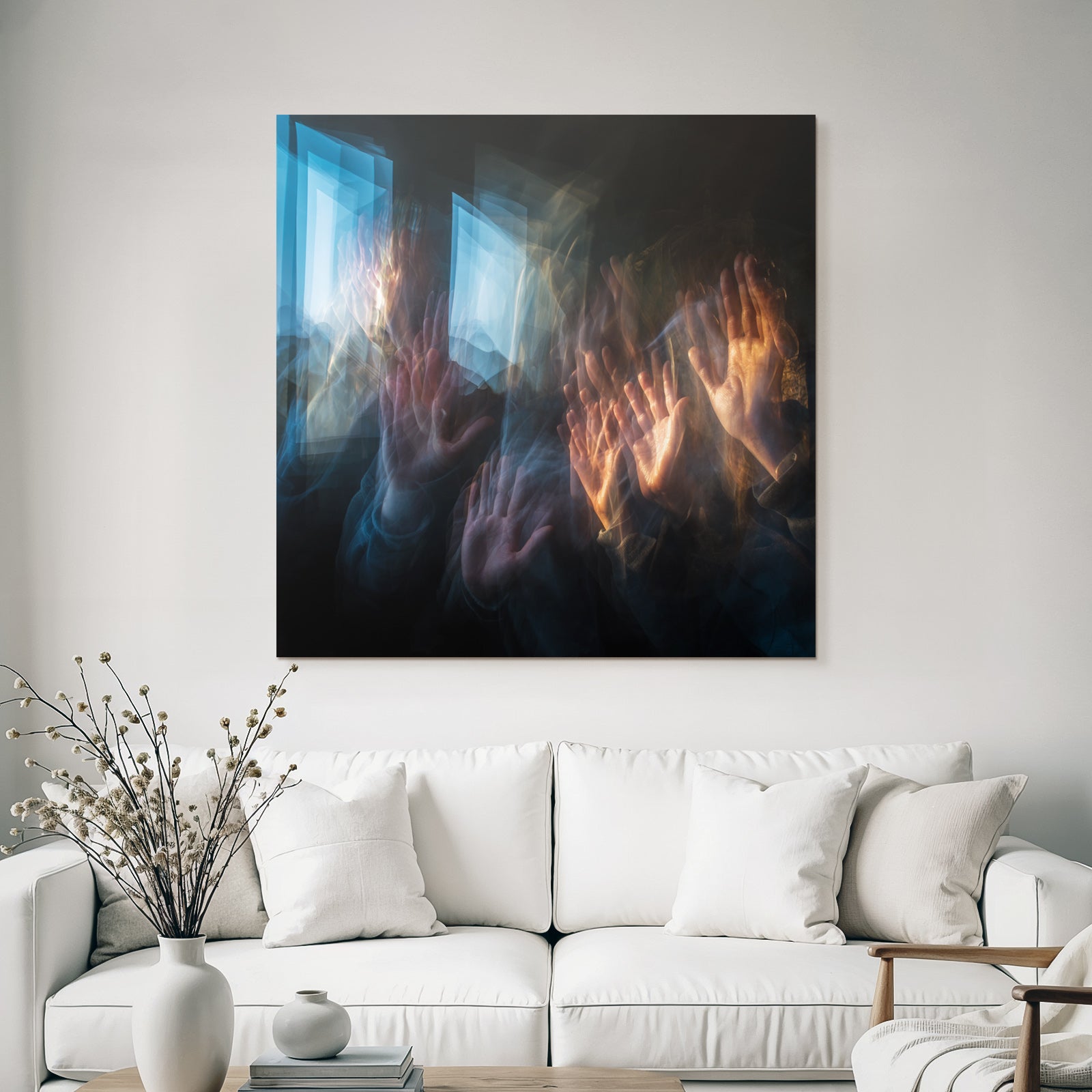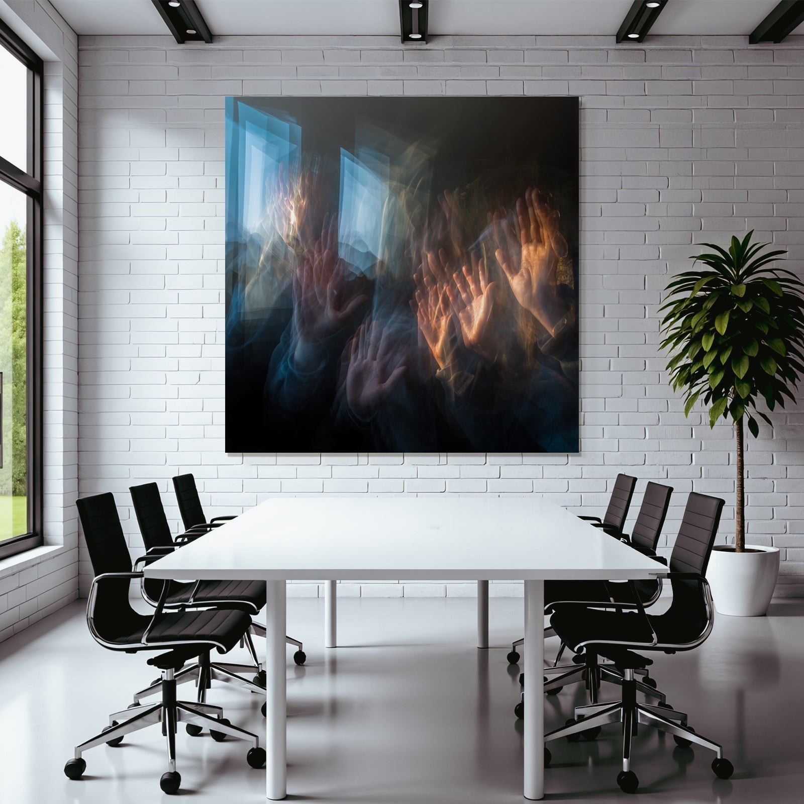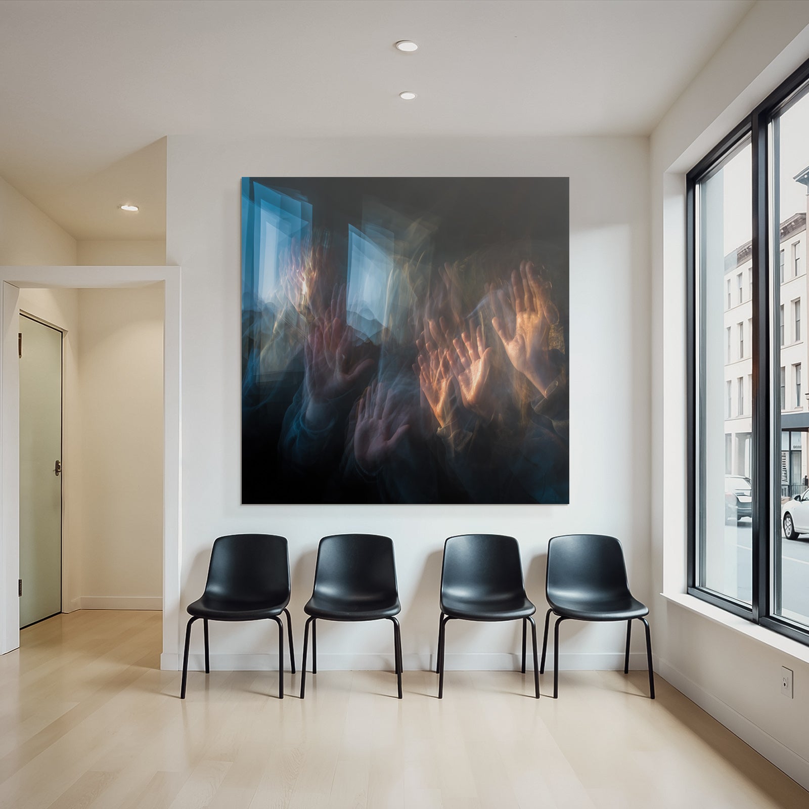 „Überlappende Hände In Bewegung Kunstvolle Repräsentation“ im Stil Hände und Gestik sorgt für stilvolle Ruhe im Schlafzimmer oder inspirierende Energie im Büro – perfekt im FameFrame™ inszeniert.