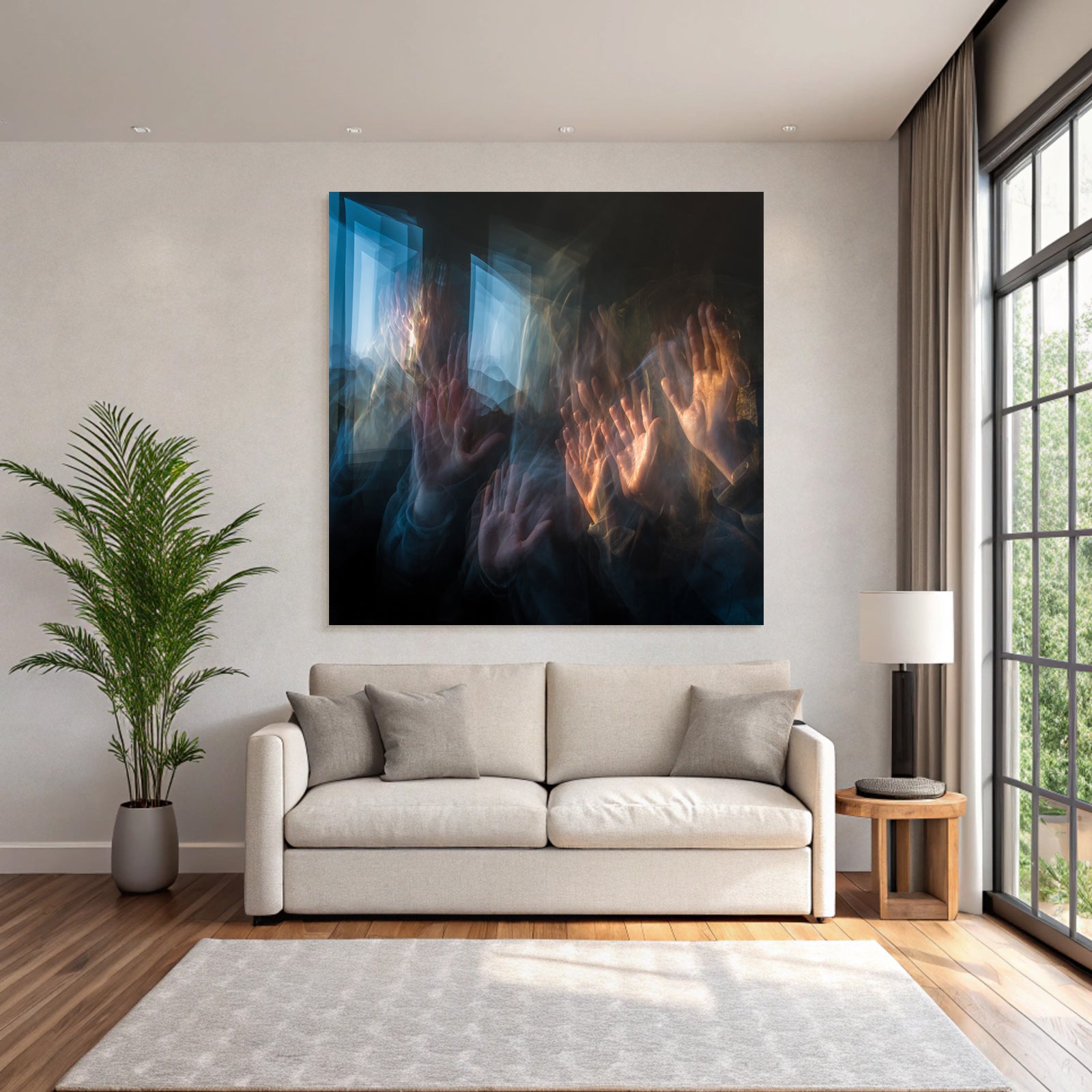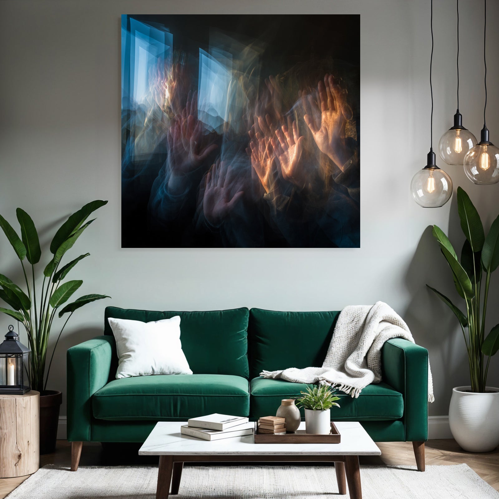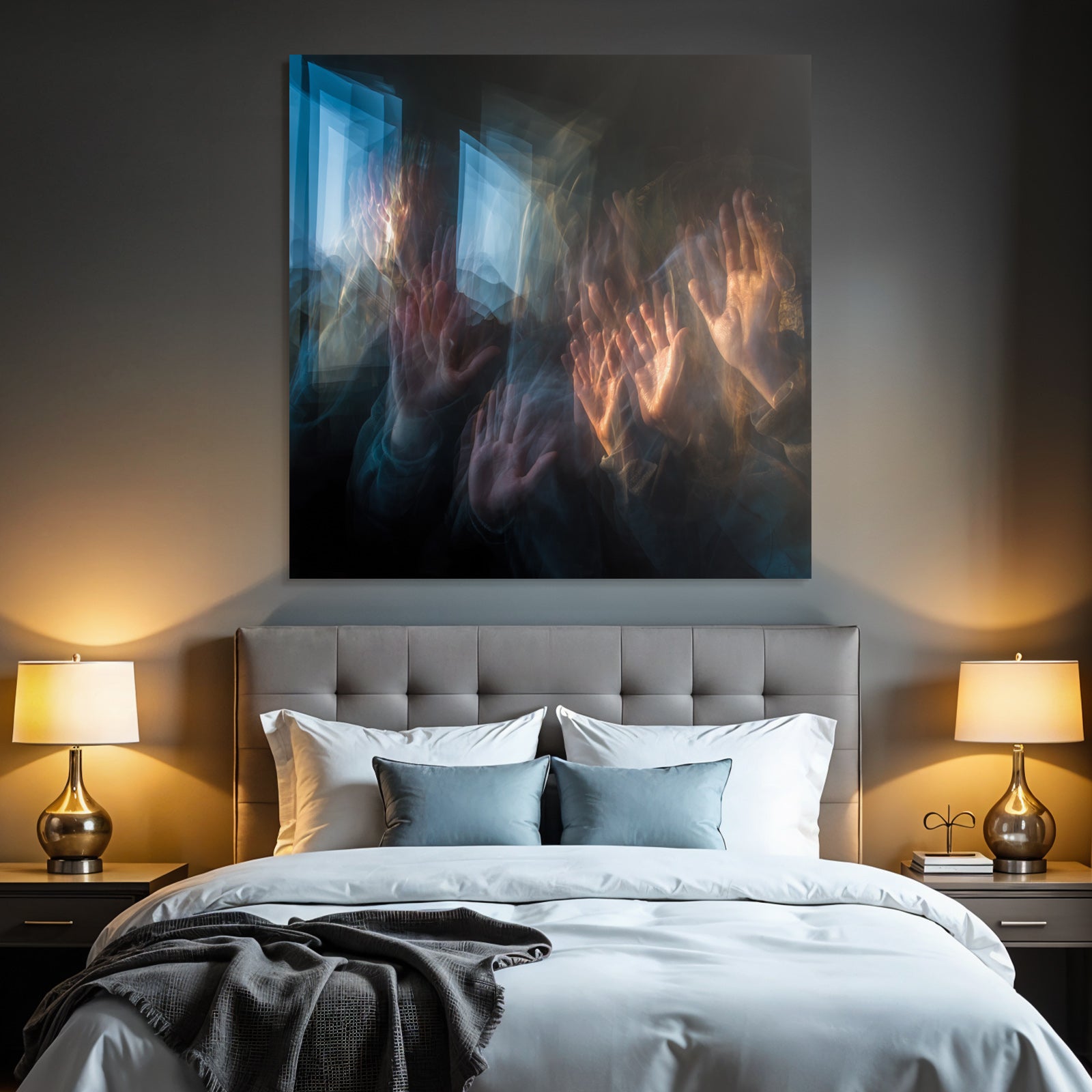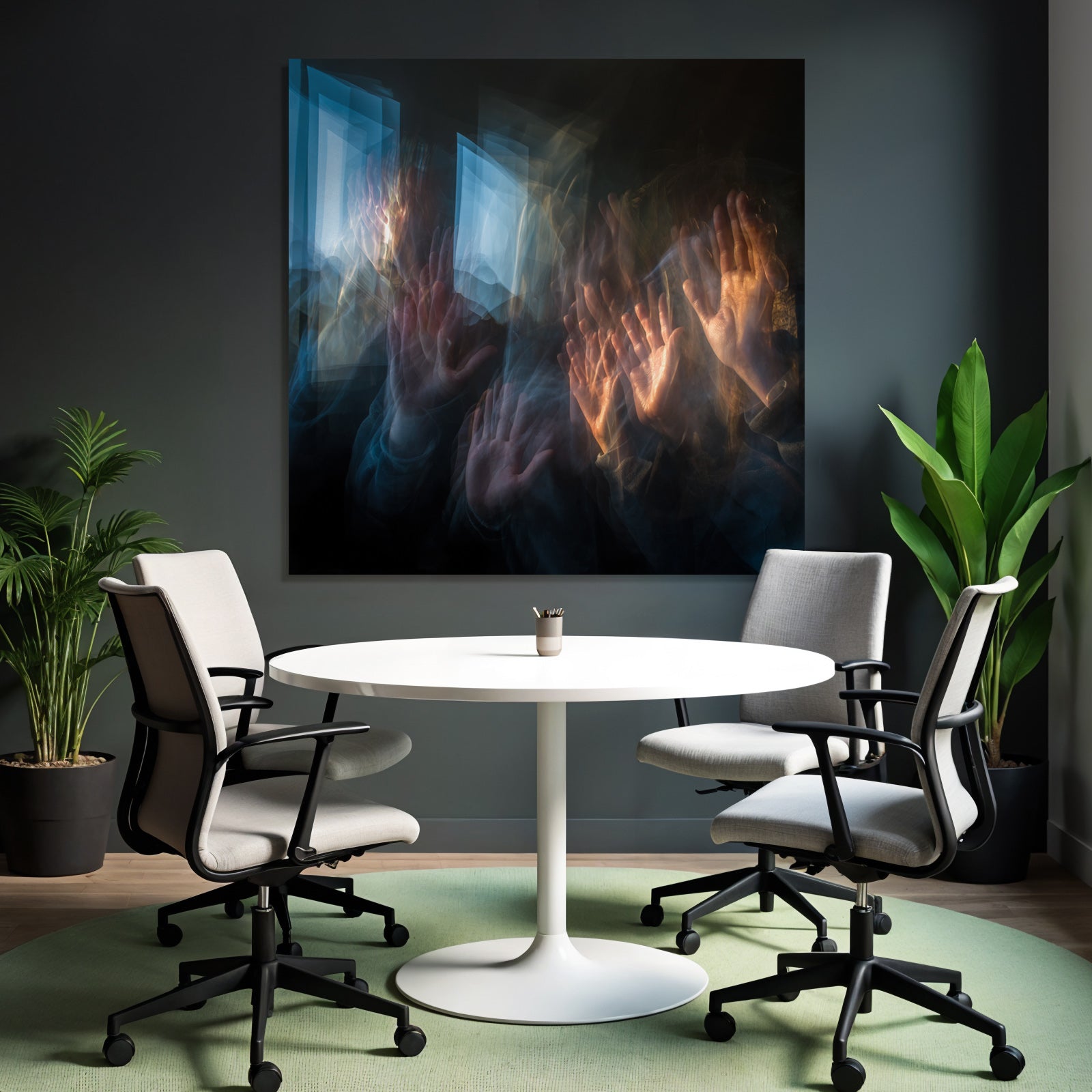 „Überlappende Hände In Bewegung Kunstvolle Repräsentation“ im Stil Hände und Gestik sorgt für stilvolle Ruhe im Schlafzimmer oder inspirierende Energie im Büro – perfekt im FameFrame™ inszeniert.