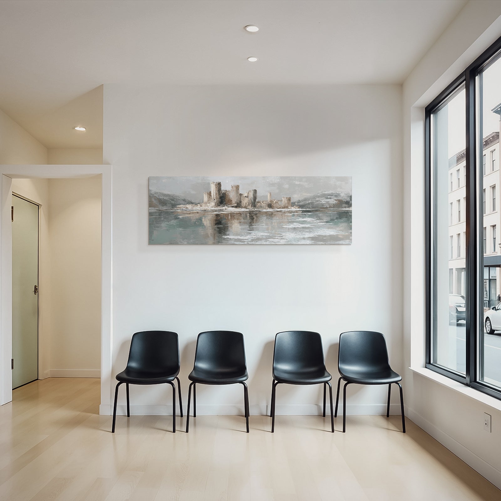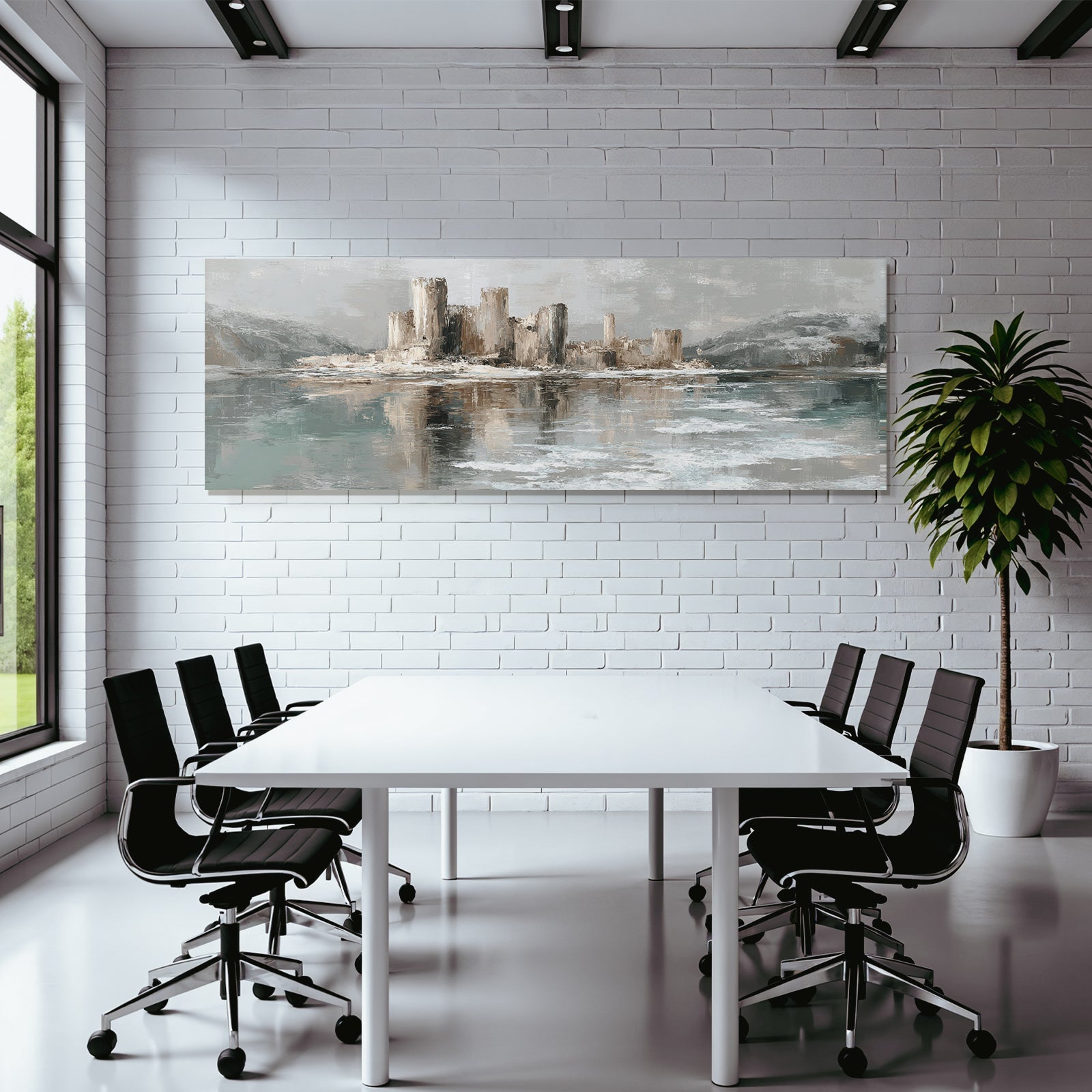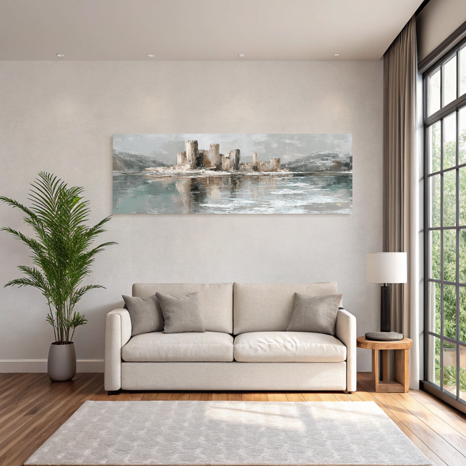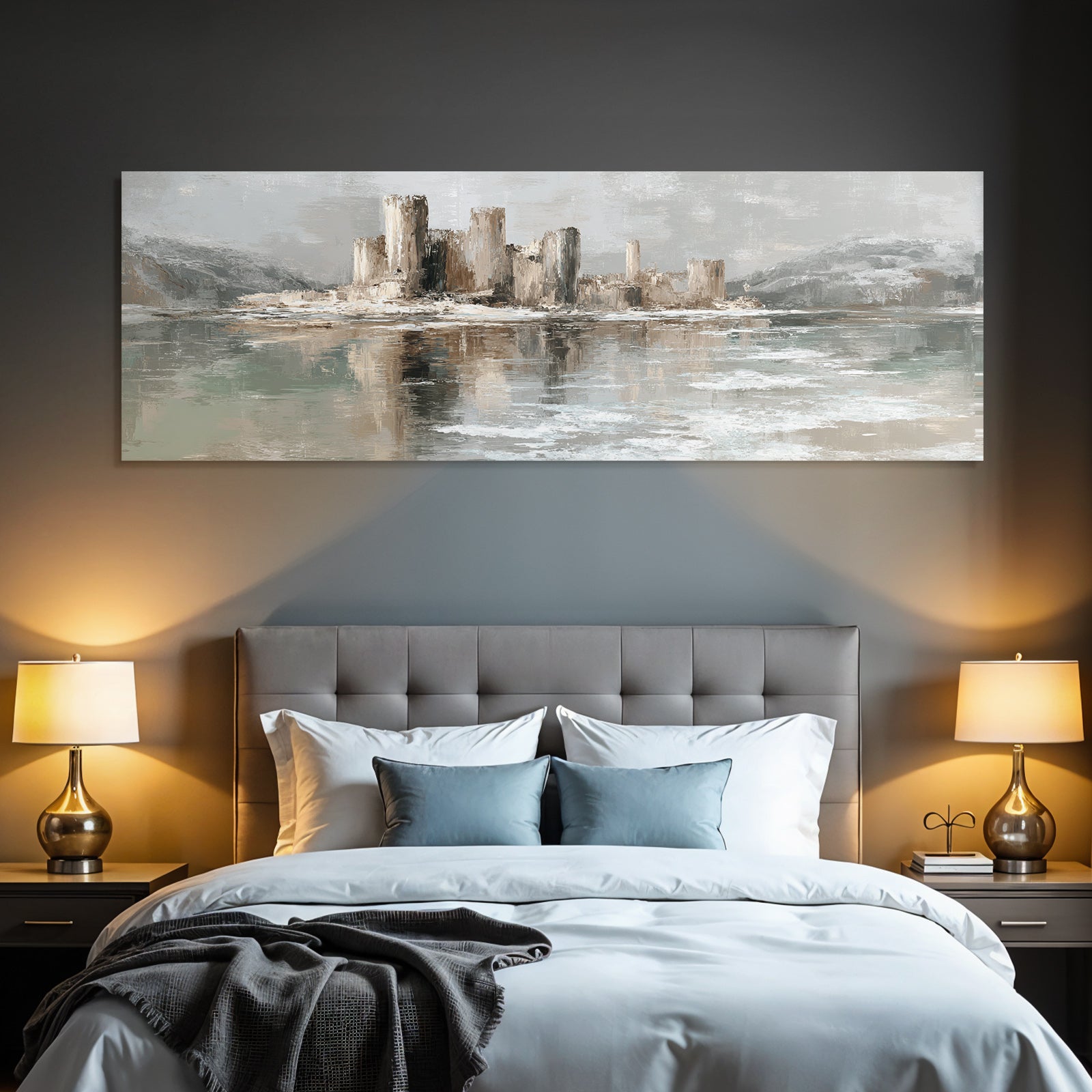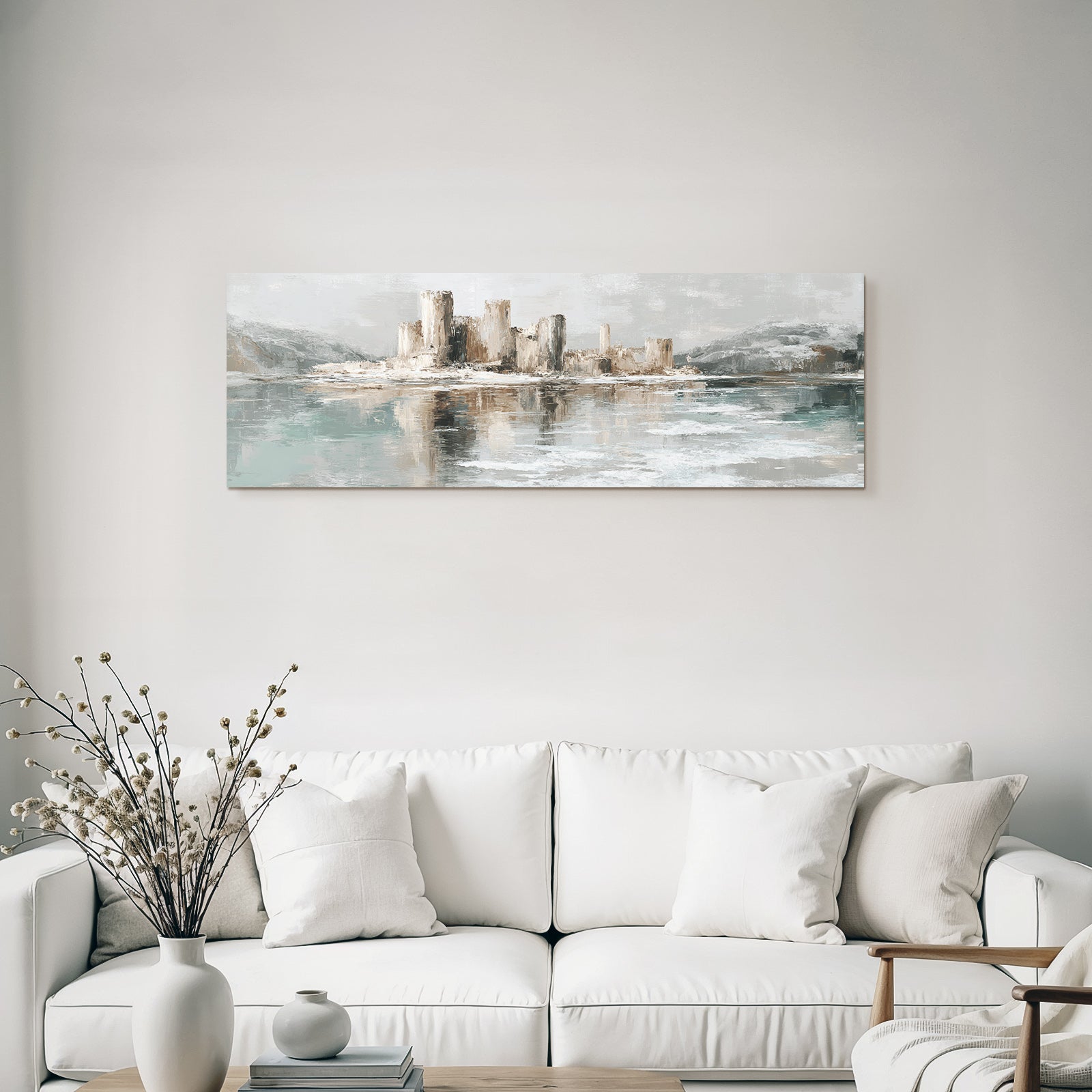 Verschönere Dein Zuhause mit diesem Werk im Stil Eis und Schnee. Der Titel „Verlassene Burgruinen Am Wasser“ kommt im hochwertigen FameFrame perfekt zur Geltung.