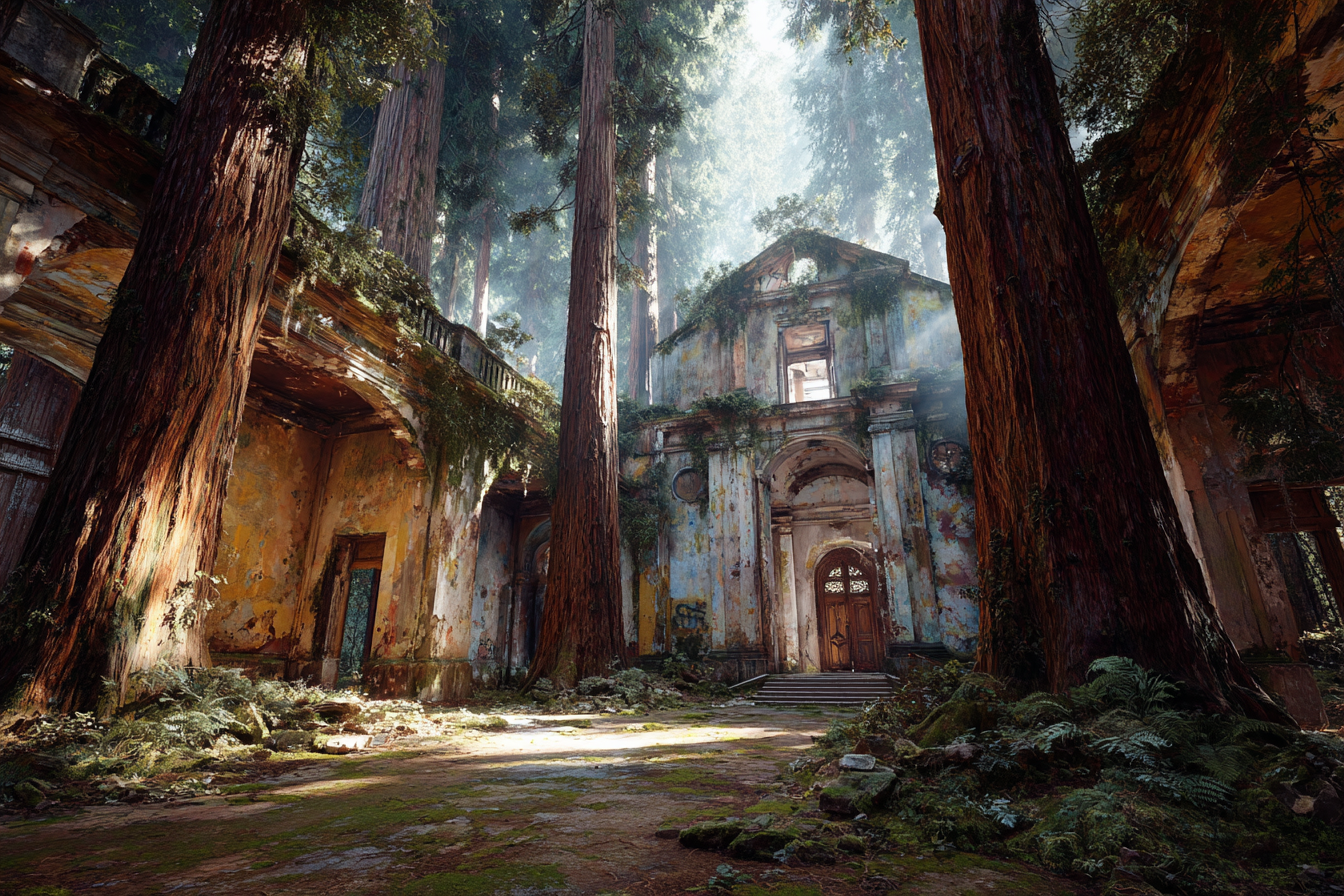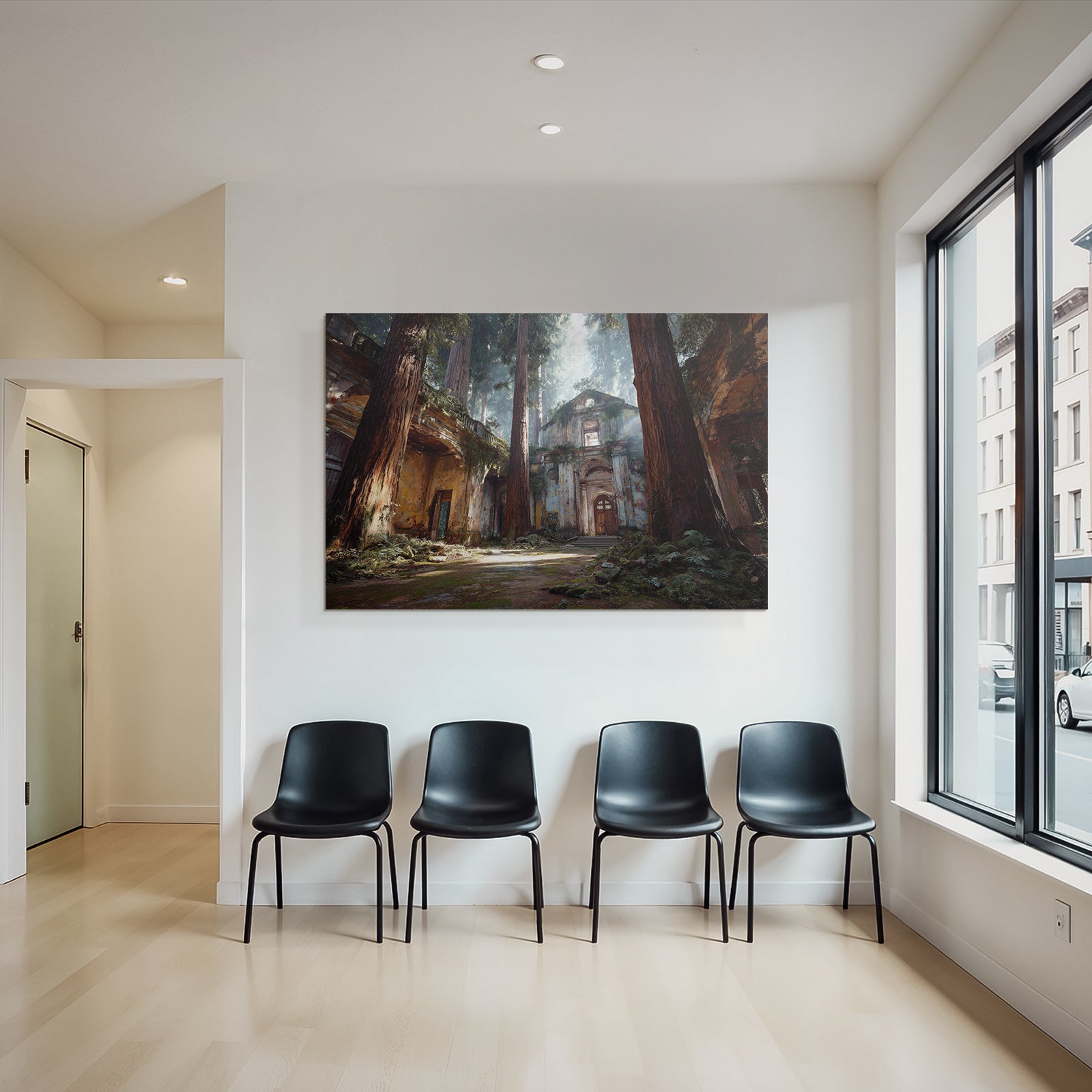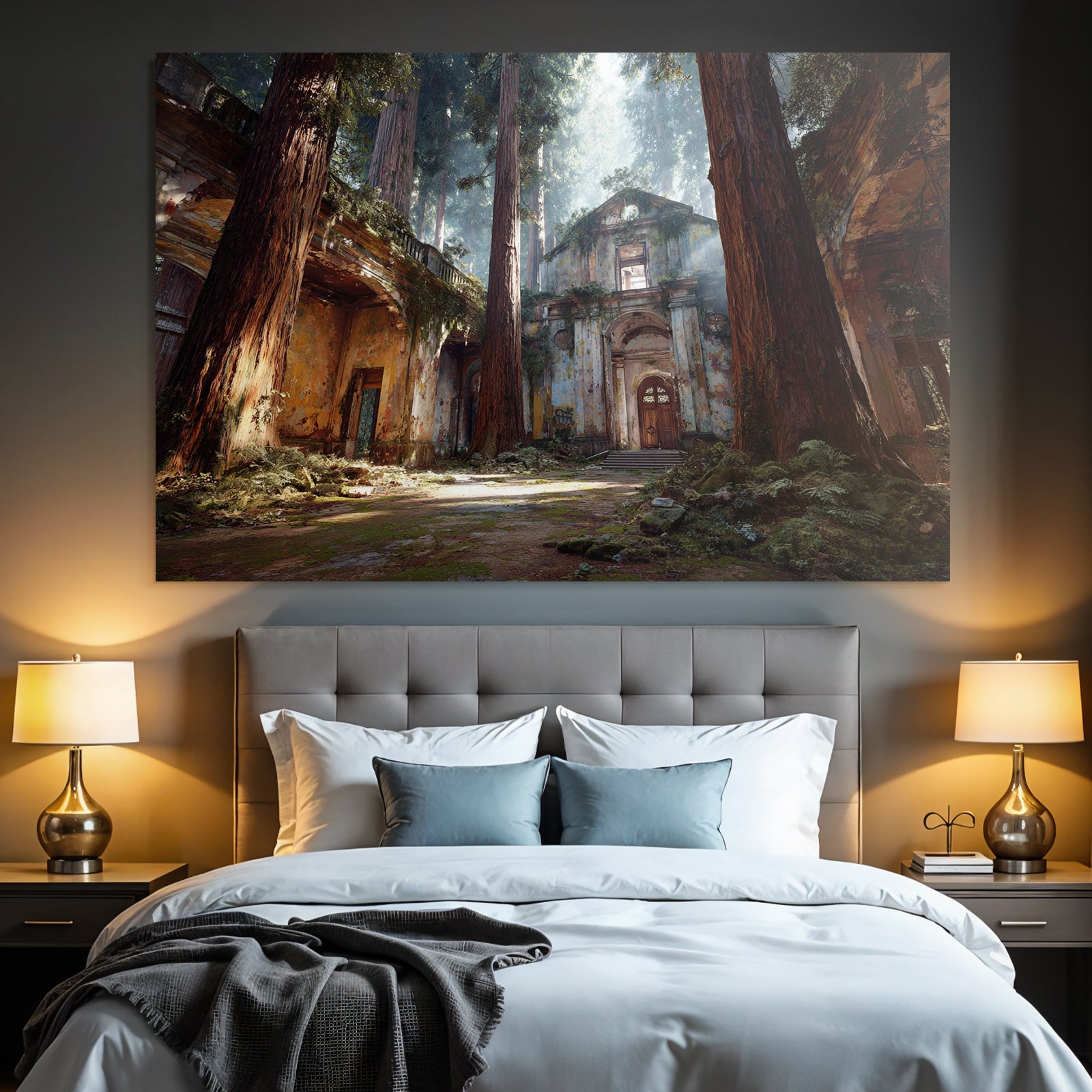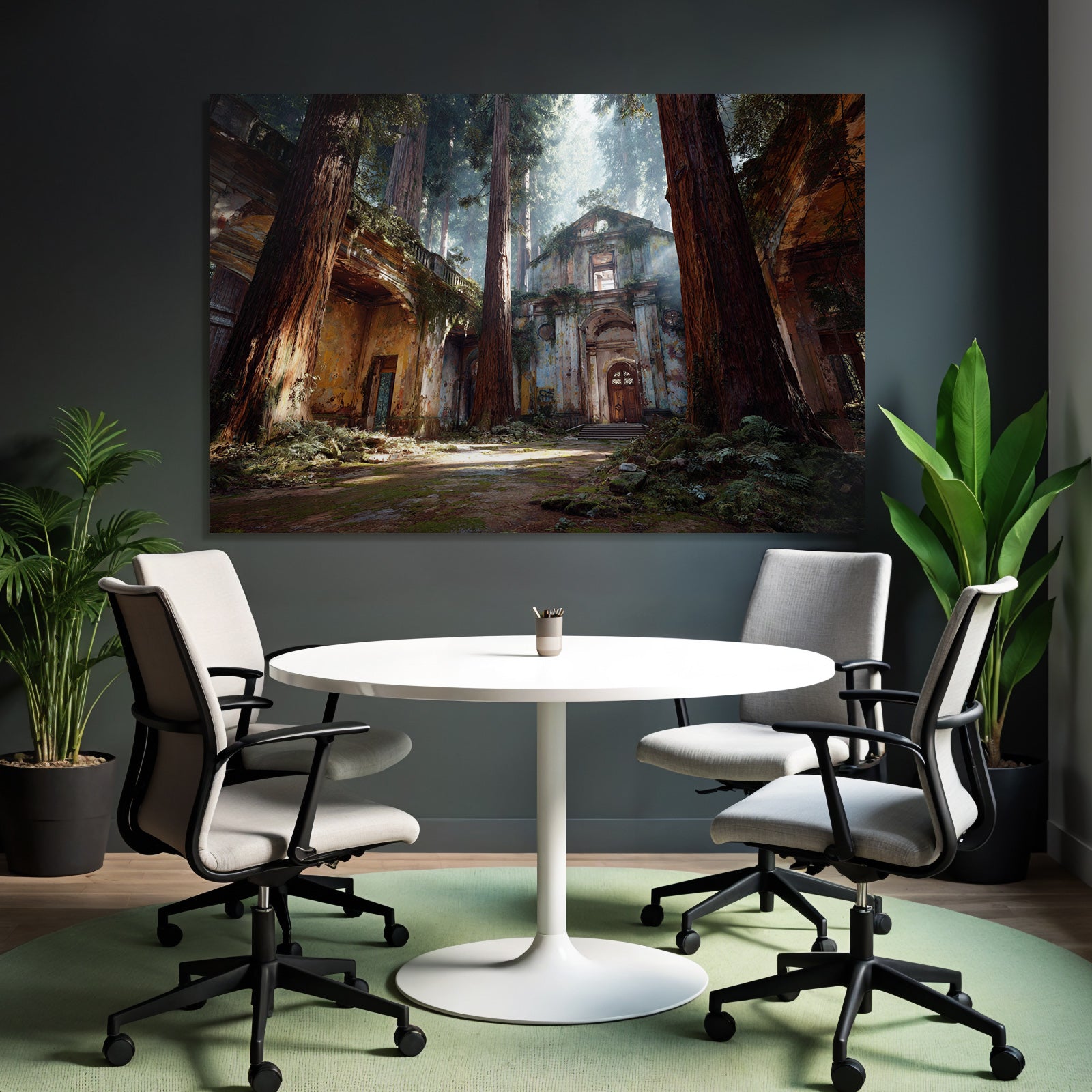 Das Motiv „Verlassene Struktur Umgeben Von Baeumen Im Licht Der Natur“ ist ein Highlight der Kollektion Lost Places und wird auf Deinem FameFrame™ brillant in Szene gesetzt.