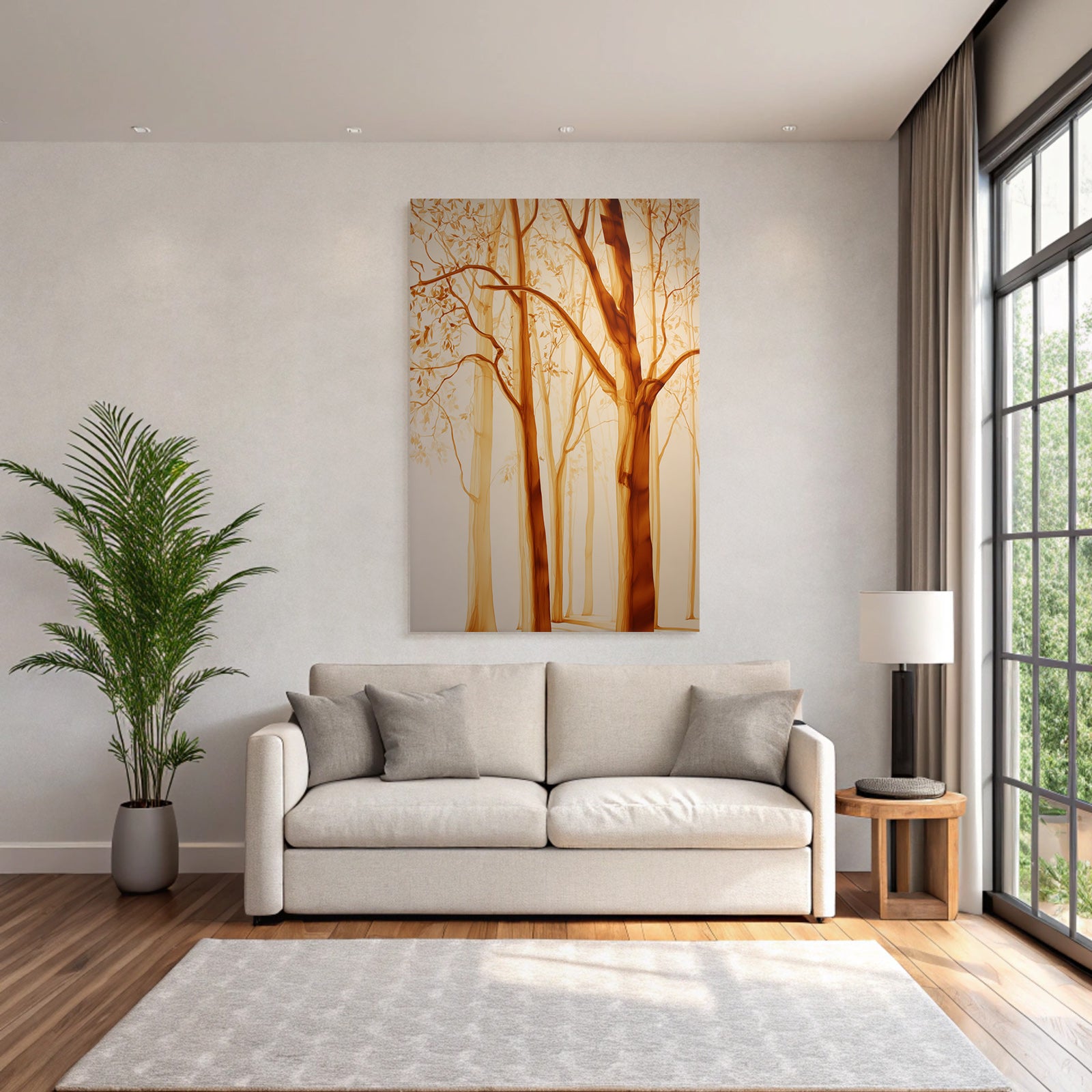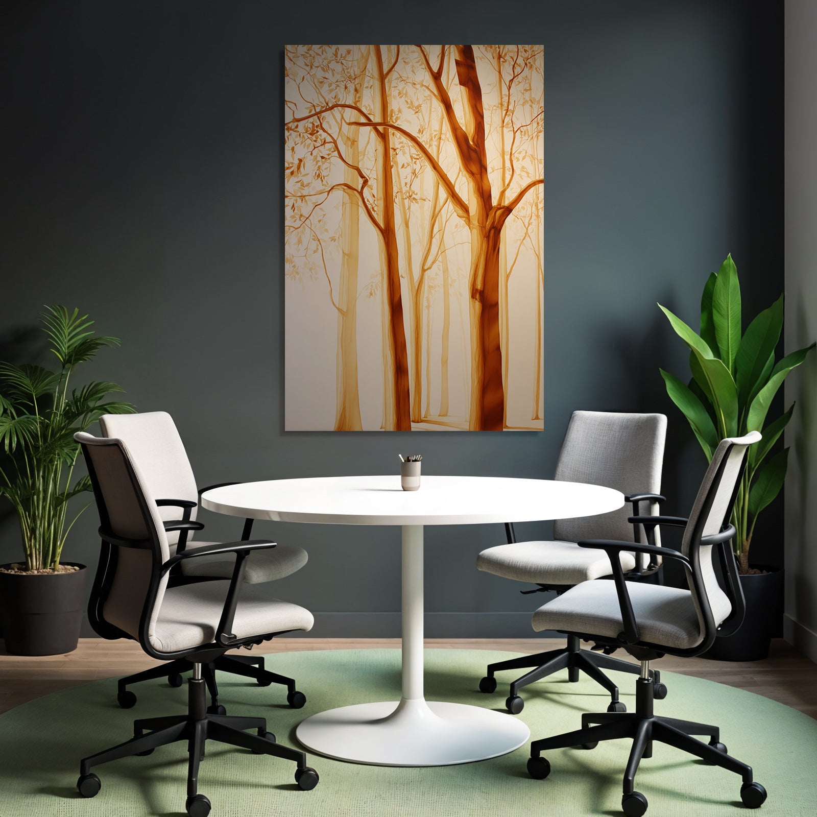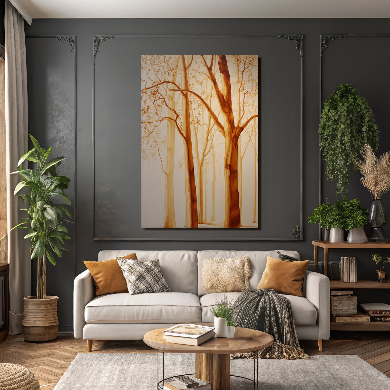 Modern, stilvoll, individüll: „Yoga Meditation Baumlandschaft Erdige Farben Still Und Traumhaft“ im Stil Yoga und Meditation überzeugt im hochwertigen FameFrame™ durch klare Formen und starke Farben.