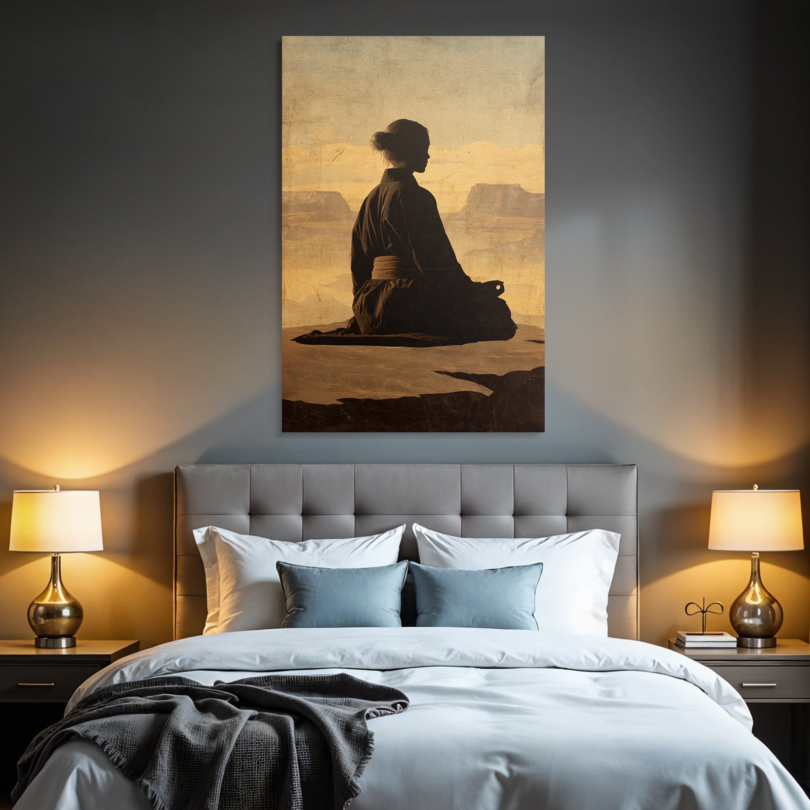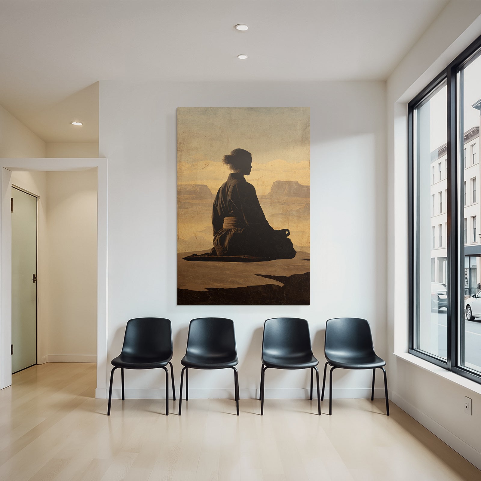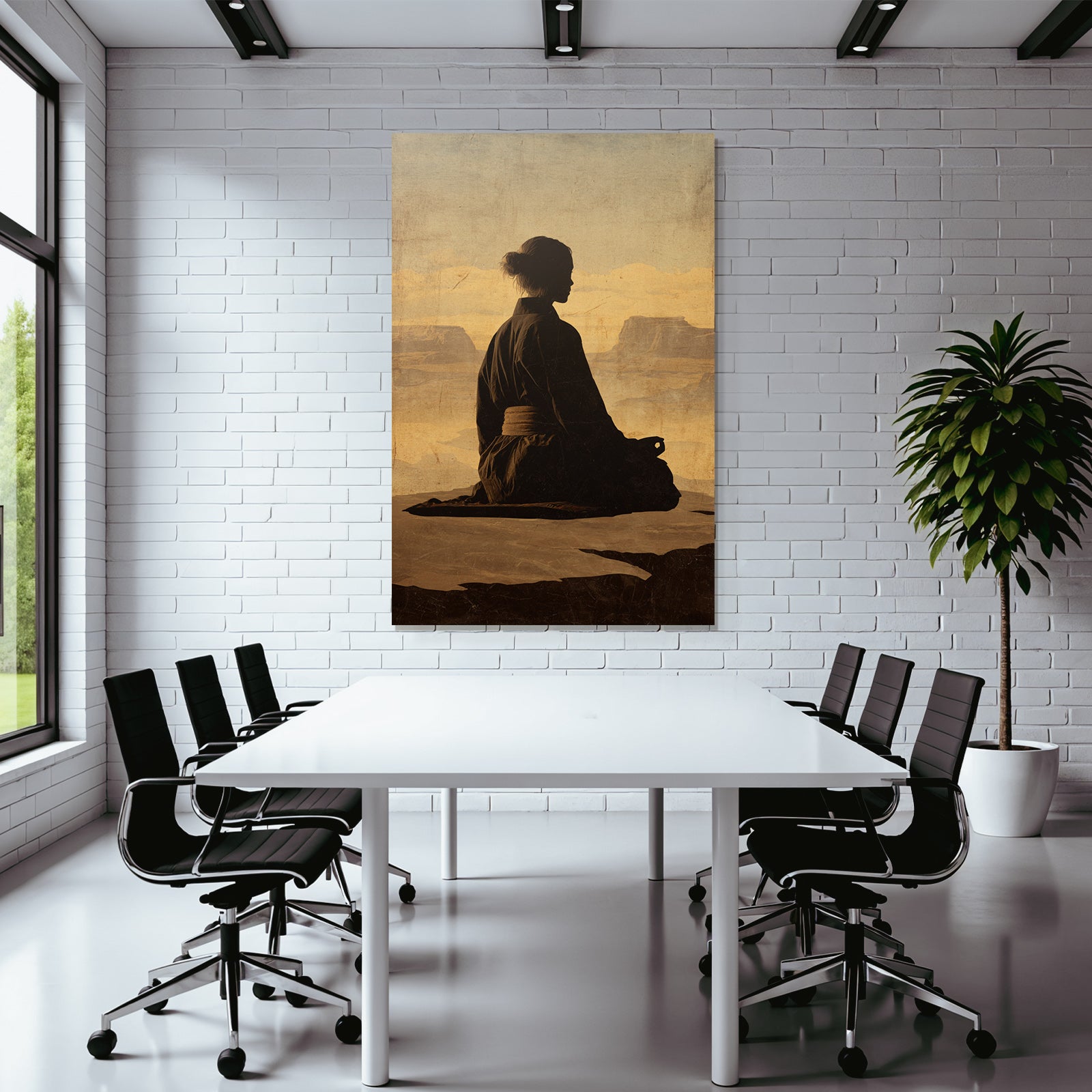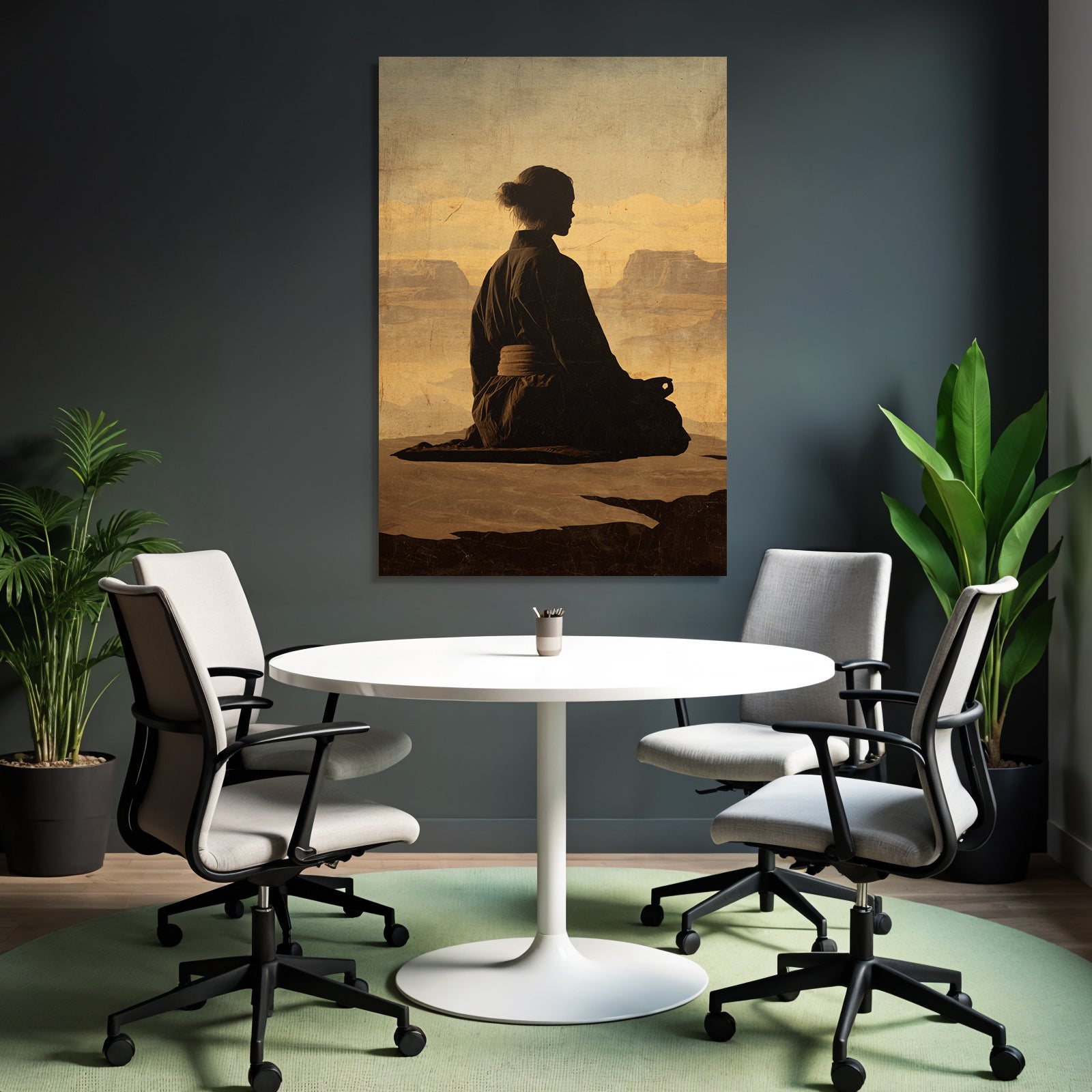 Dieses Kunstwerk zelebriert den Stil Yoga und Meditation. Die klaren Linien (oder organischen Formen) von „Yoga Meditation Meditierender Mensch In Der Natur Vintage Stil“ werden durch den minimalistischen FameFrame™ elegant betont.