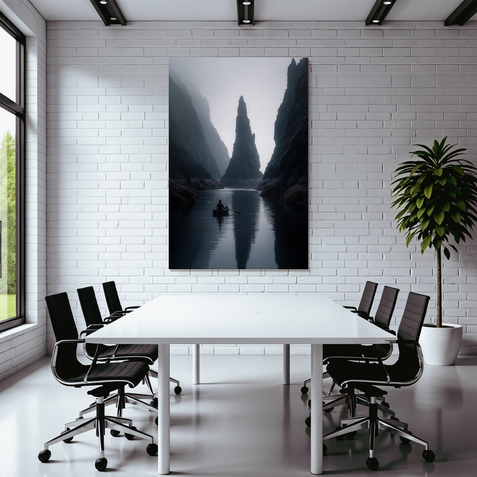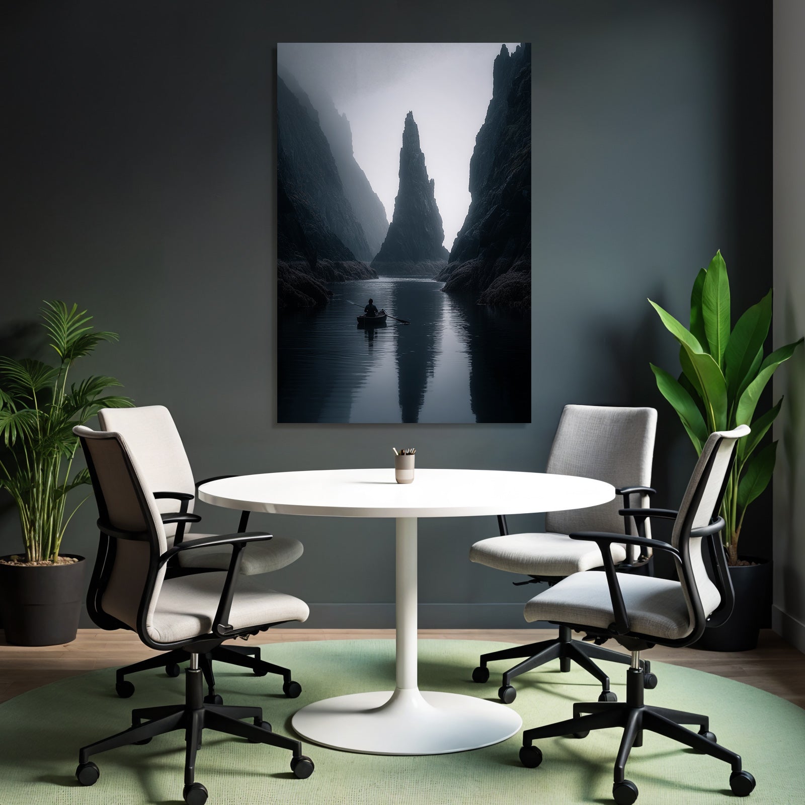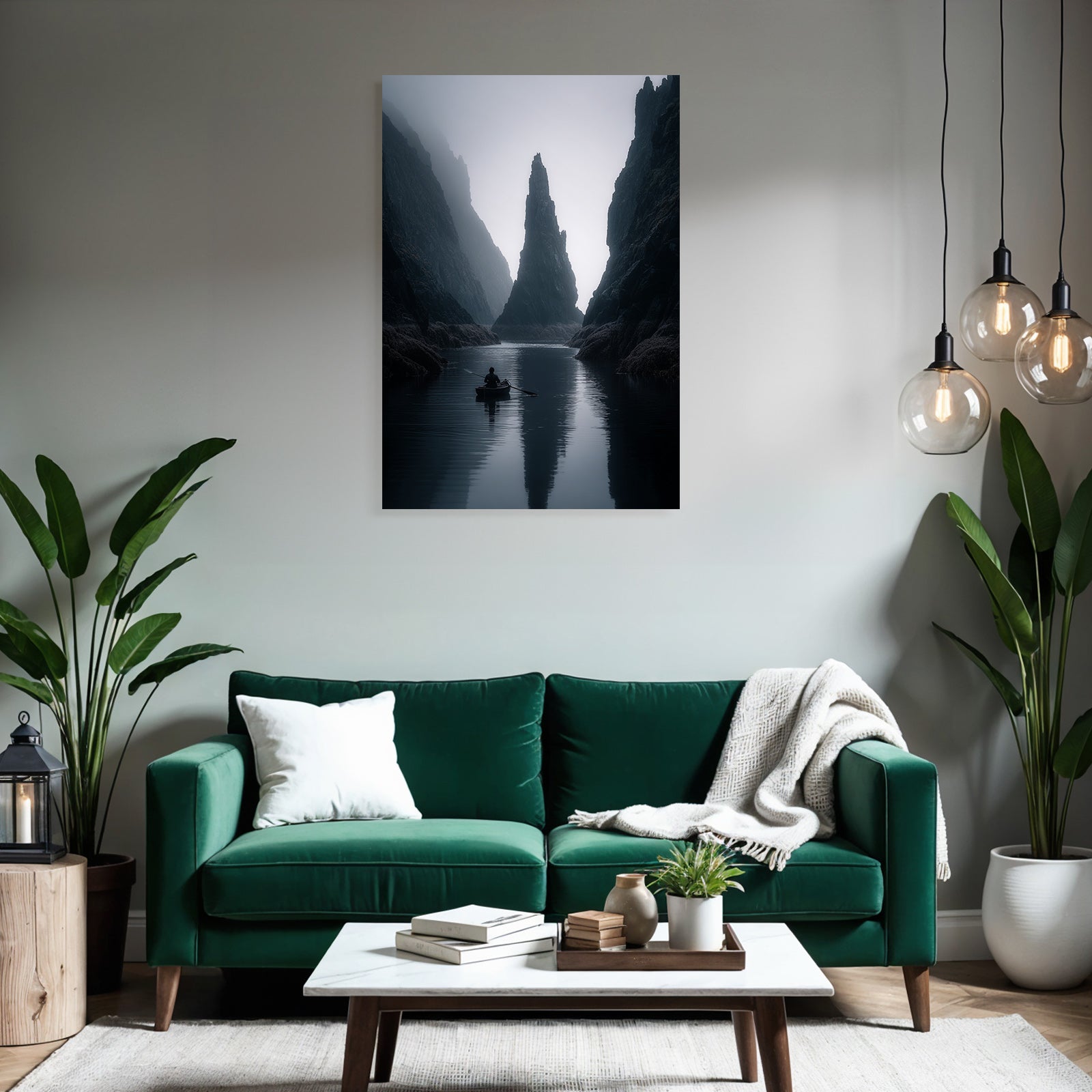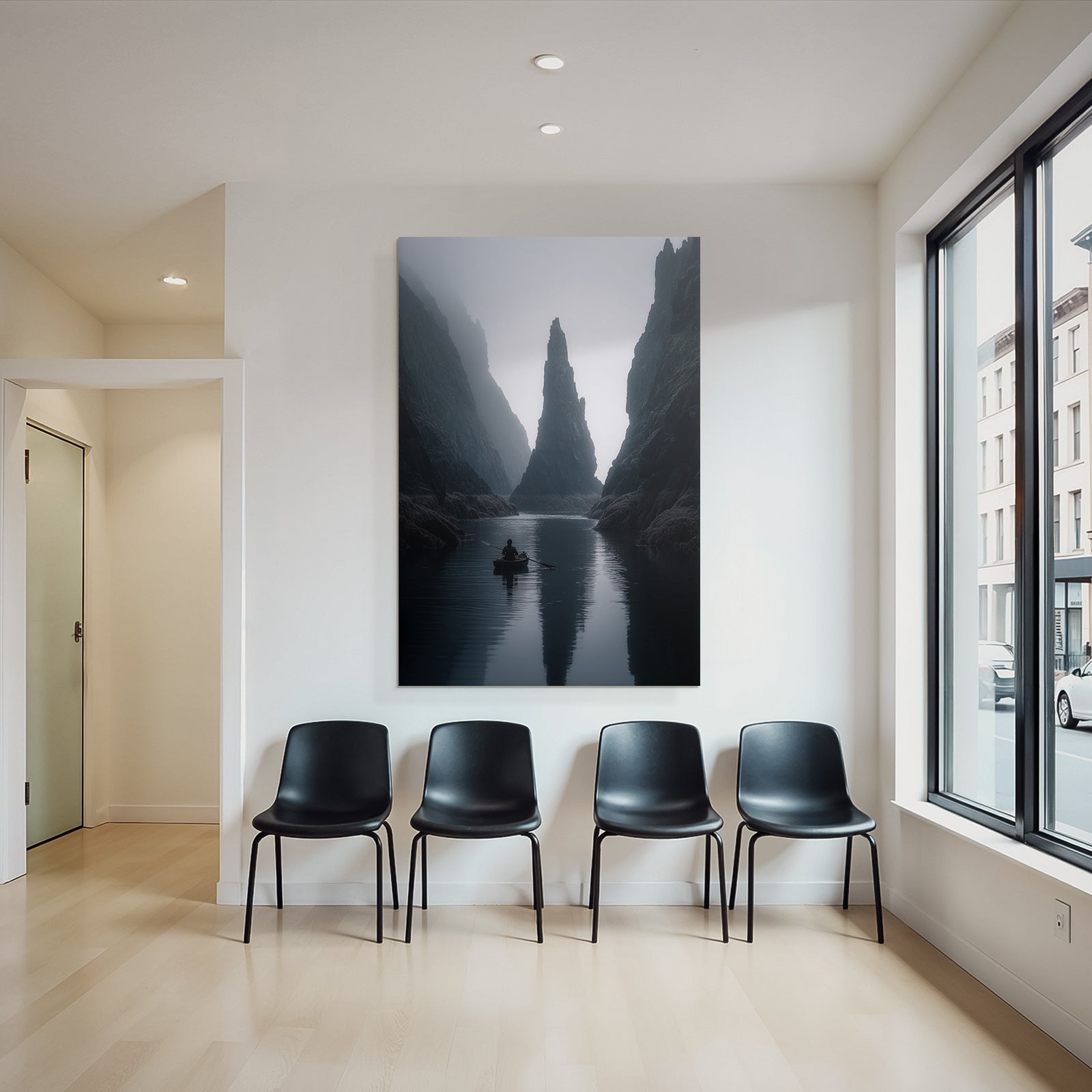 Mit dem Werk „Yoga Meditation Ruhige Nebelige Landschaft Käper In Ruhigem Wasser Mit Klippen Im Hintergrund“ im Stil Yoga und Meditation gestaltest Du Dein Wartezimmer oder Deine Hotel-Lobby eindrucksvoll und modern – auf Stoff im FameFrame™.