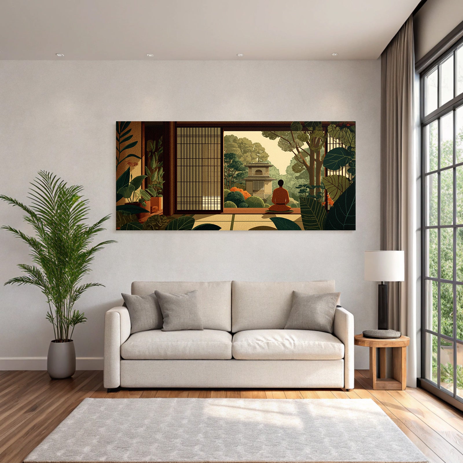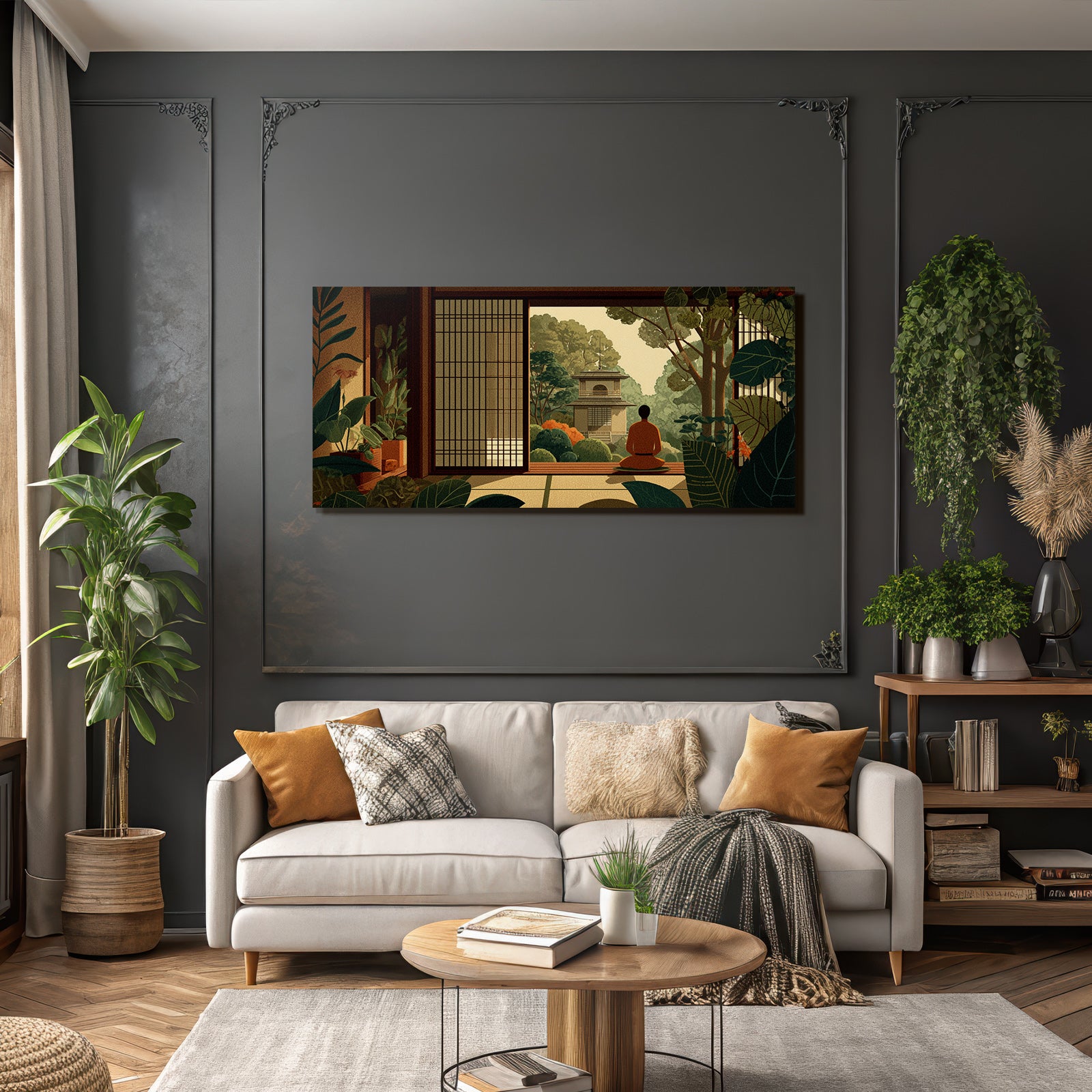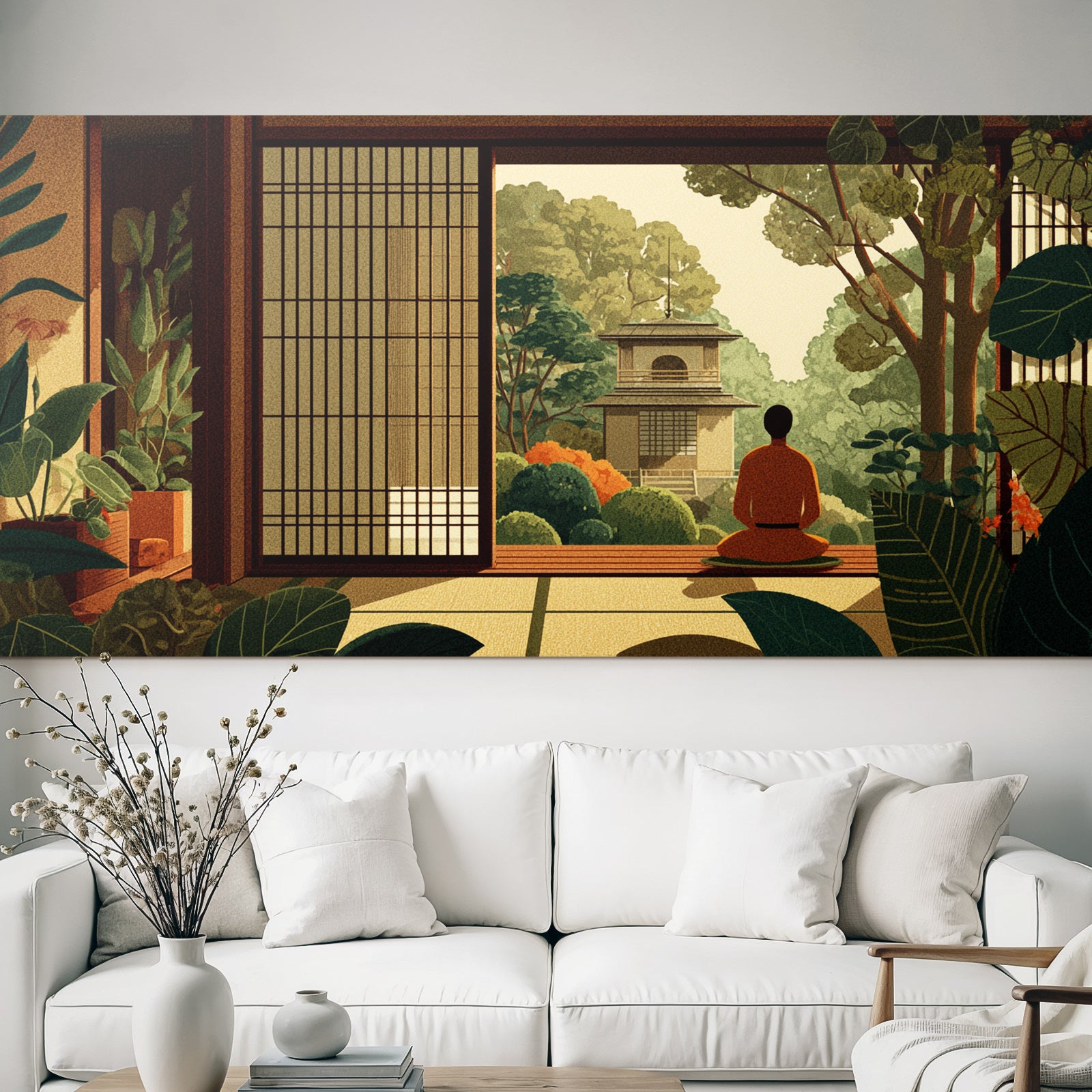 Das Kunstwerk „Yoga Meditation Ruhiges Japanisches Innenraum Meditation Und Garten“ ist eine Hommage an den Stil Yoga und Meditation. Im FameFrame™ kommt die Farbbrillanz und Detailtiefe des Motivs perfekt zur Geltung.