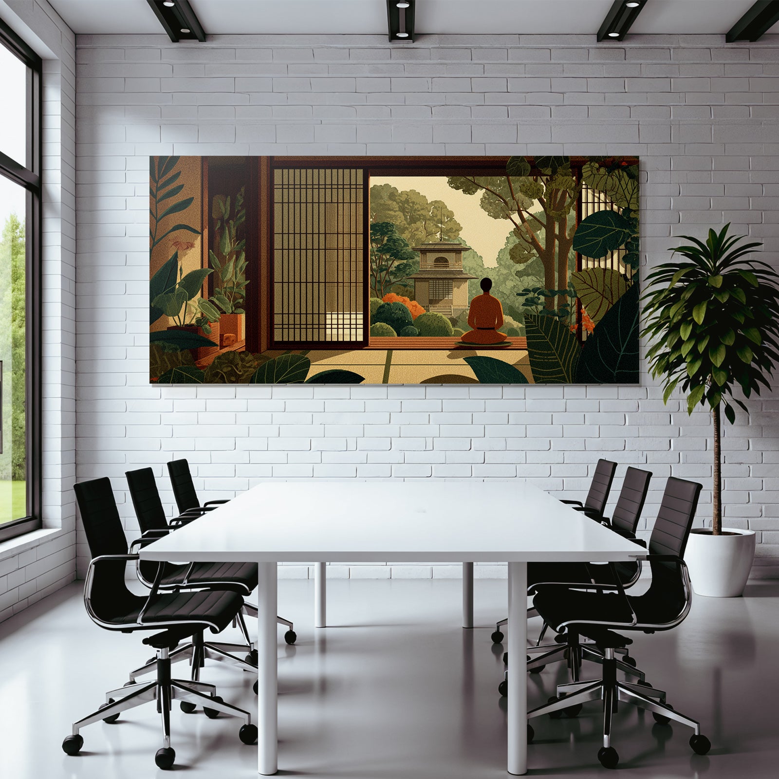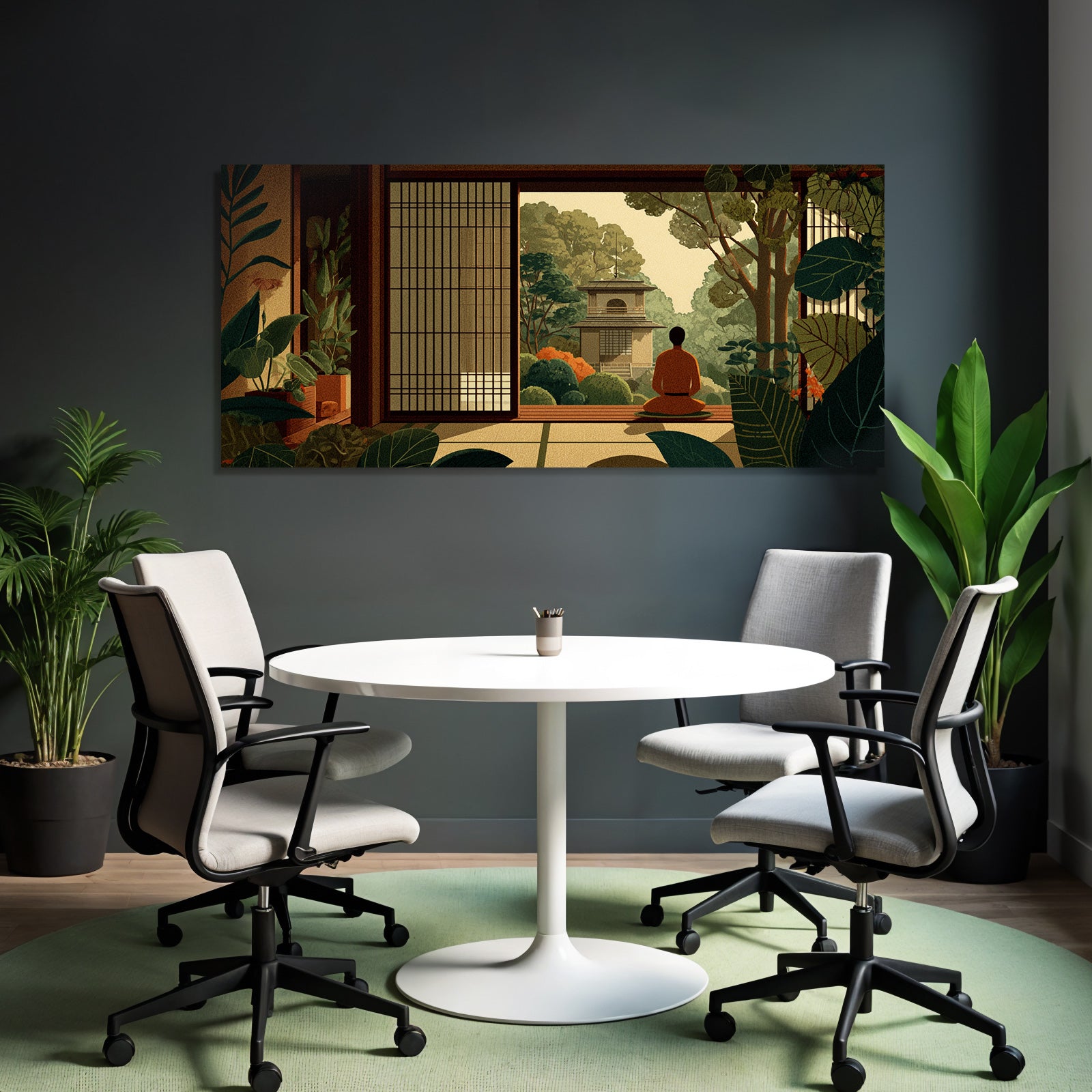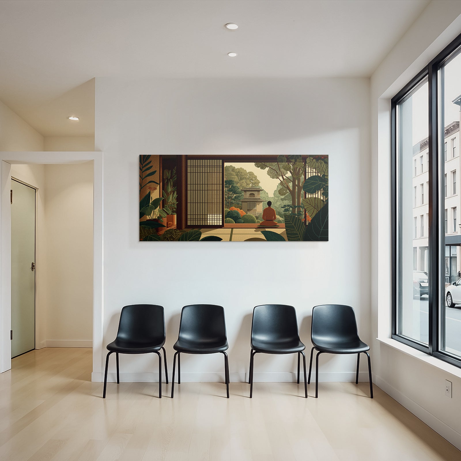 Das Kunstwerk „Yoga Meditation Ruhiges Japanisches Innenraum Meditation Und Garten“ ist eine Hommage an den Stil Yoga und Meditation. Im FameFrame™ kommt die Farbbrillanz und Detailtiefe des Motivs perfekt zur Geltung.