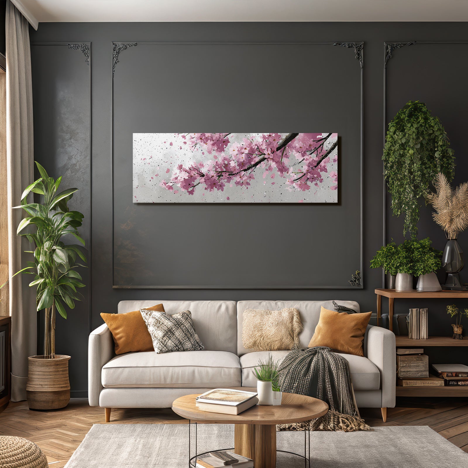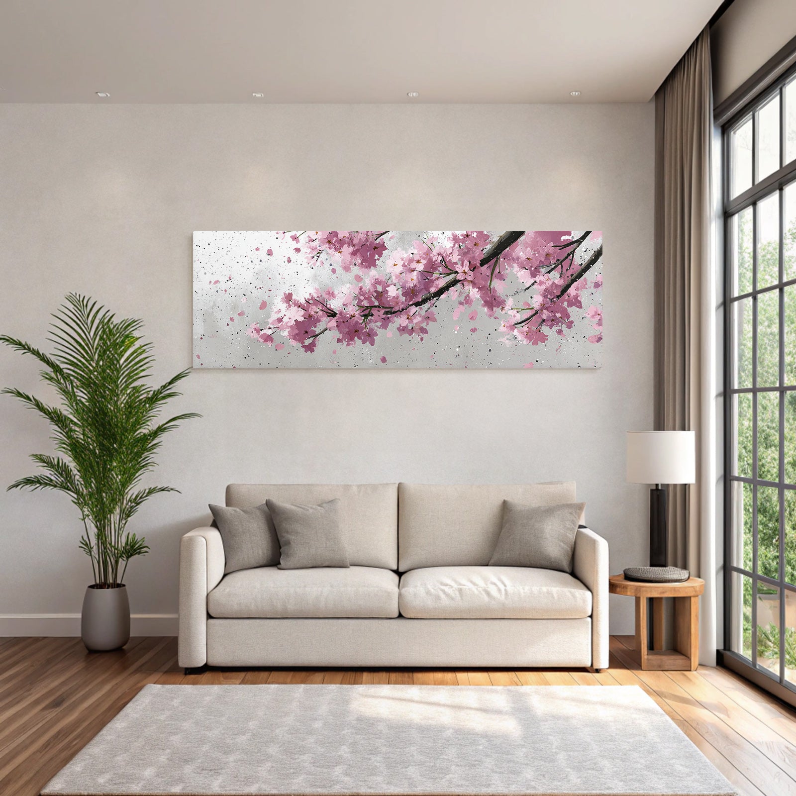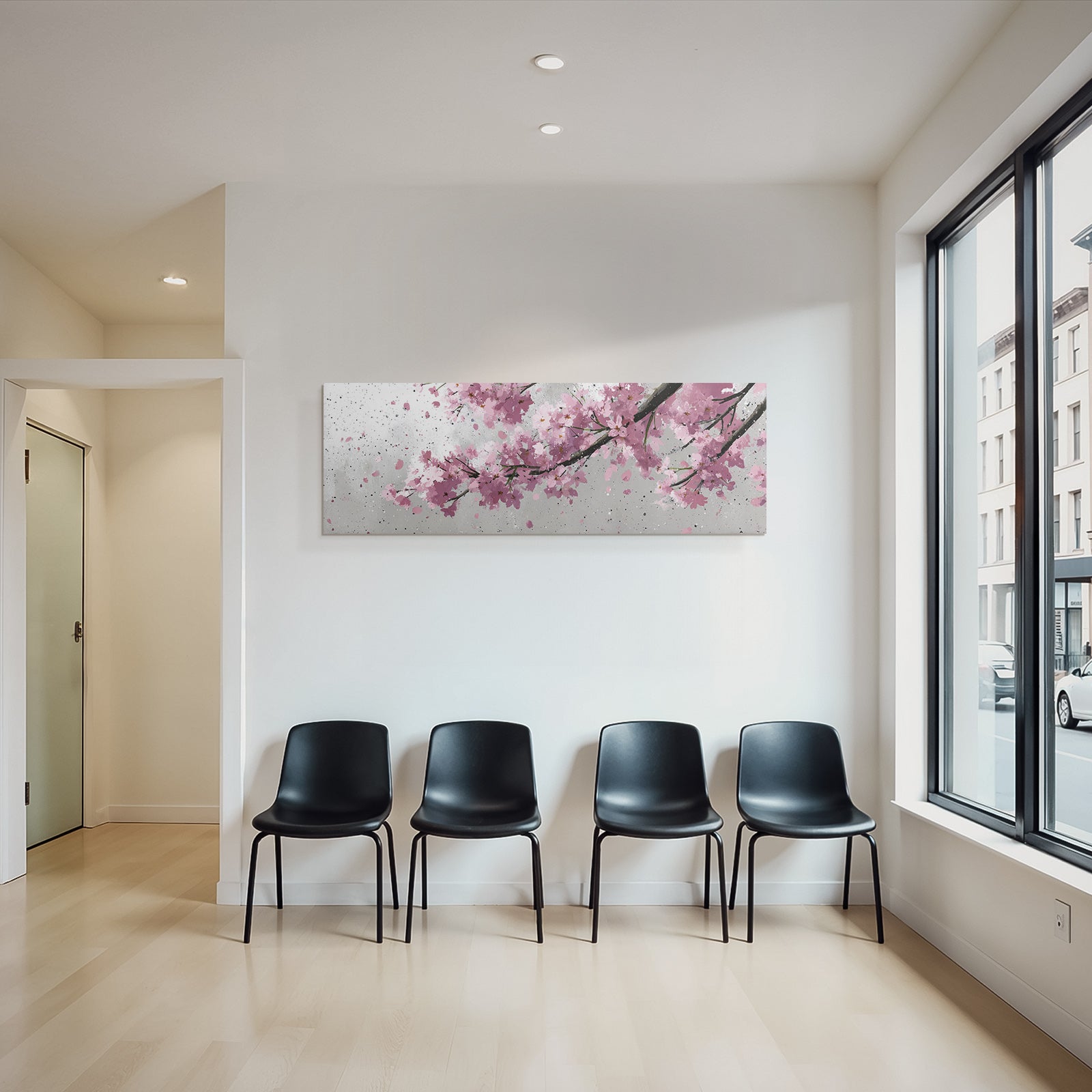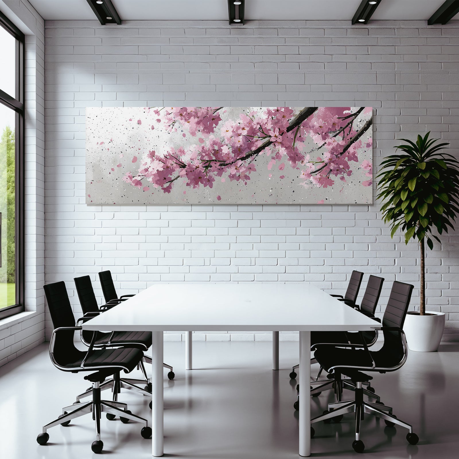Gestalten Sie Ihr Homeoffice oder Büro inspirierend und modern. „Zarte Kirschblüten Frühlingsmalerei“ im Japanische Zierkirsche-Look sorgt im FameFrame für eine kreative Arbeitsatmosphäre.