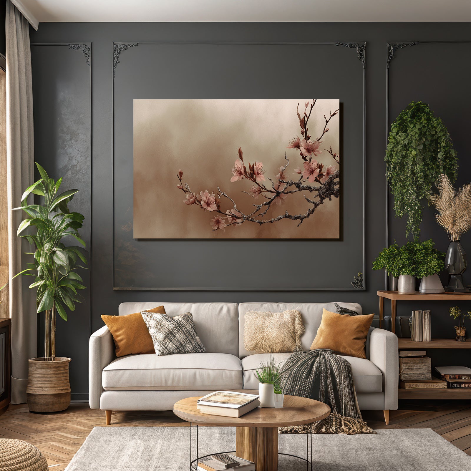 Die Kraft von „Zarter Frühlingszweig Mit Rosa Blüten“ liegt in seiner einzigartigen Verbindung von Farbe und Form, ganz im Sinne des Stils Japanische Zierkirsche. Der FameFrame bietet dafür die perfekte Bühne.