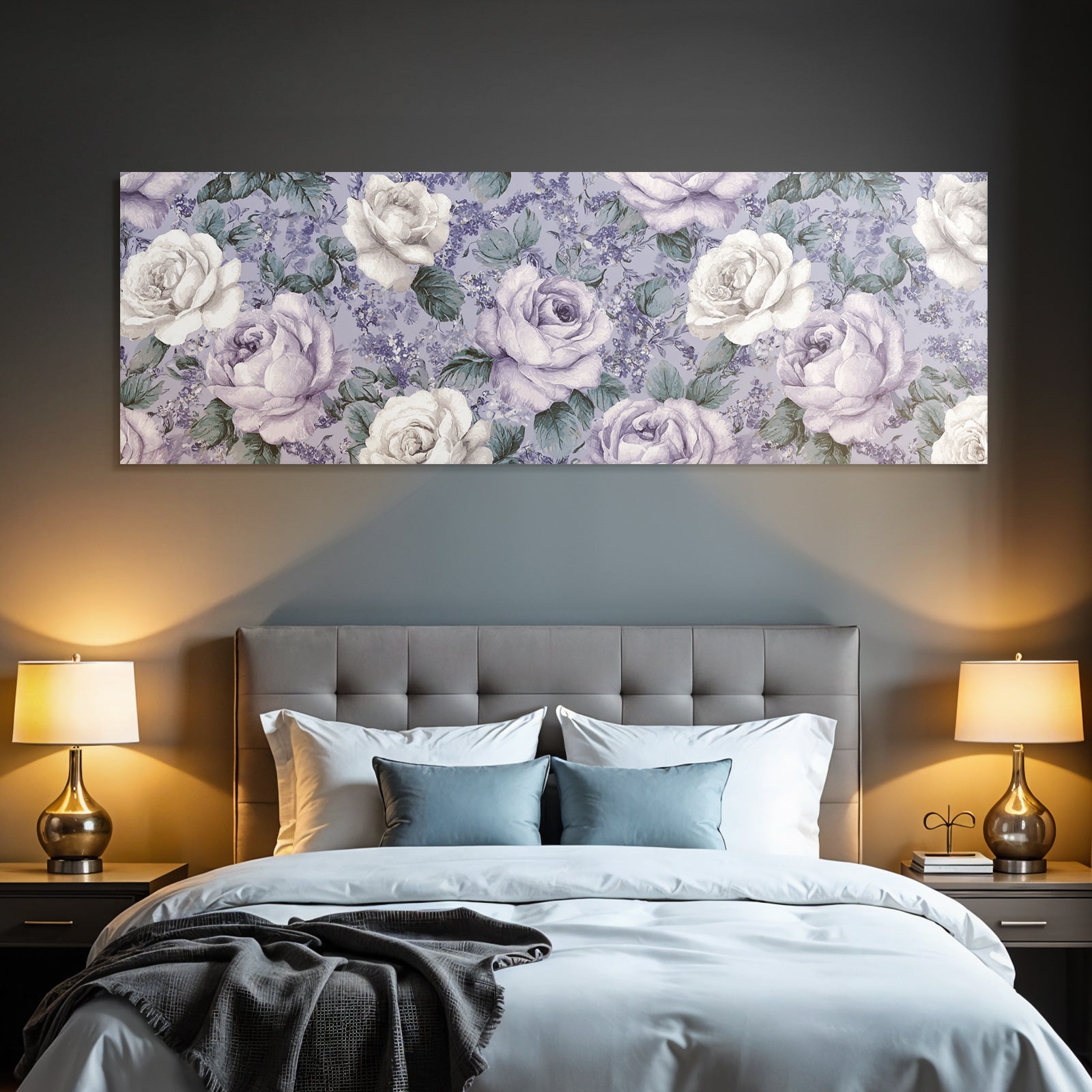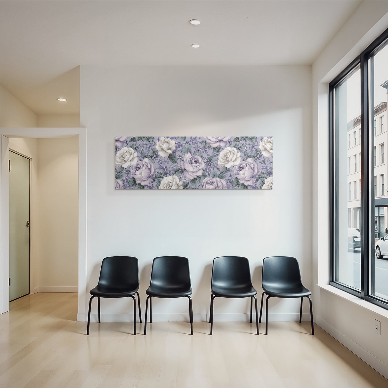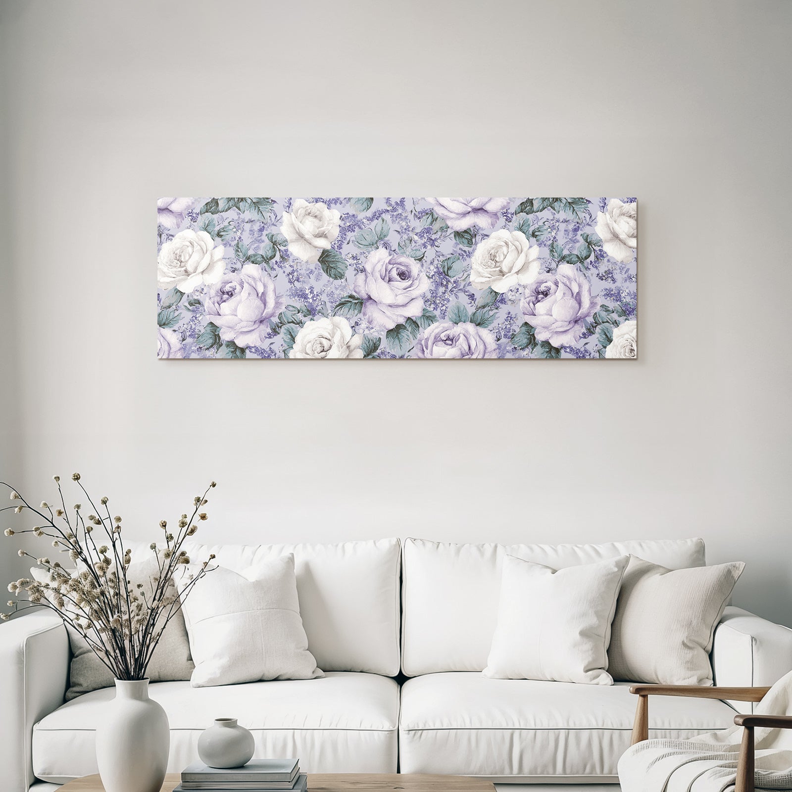 Der Stil Rosen Tulpen Lavendel, neu interpretiert. Mit „Zartes Rosenmuster Auf Lavendel Hintergrund“ holen Sie sich ein Kunstwerk nach Hause, das im eleganten FameFrame seine volle ästhetische Kraft entfaltet.