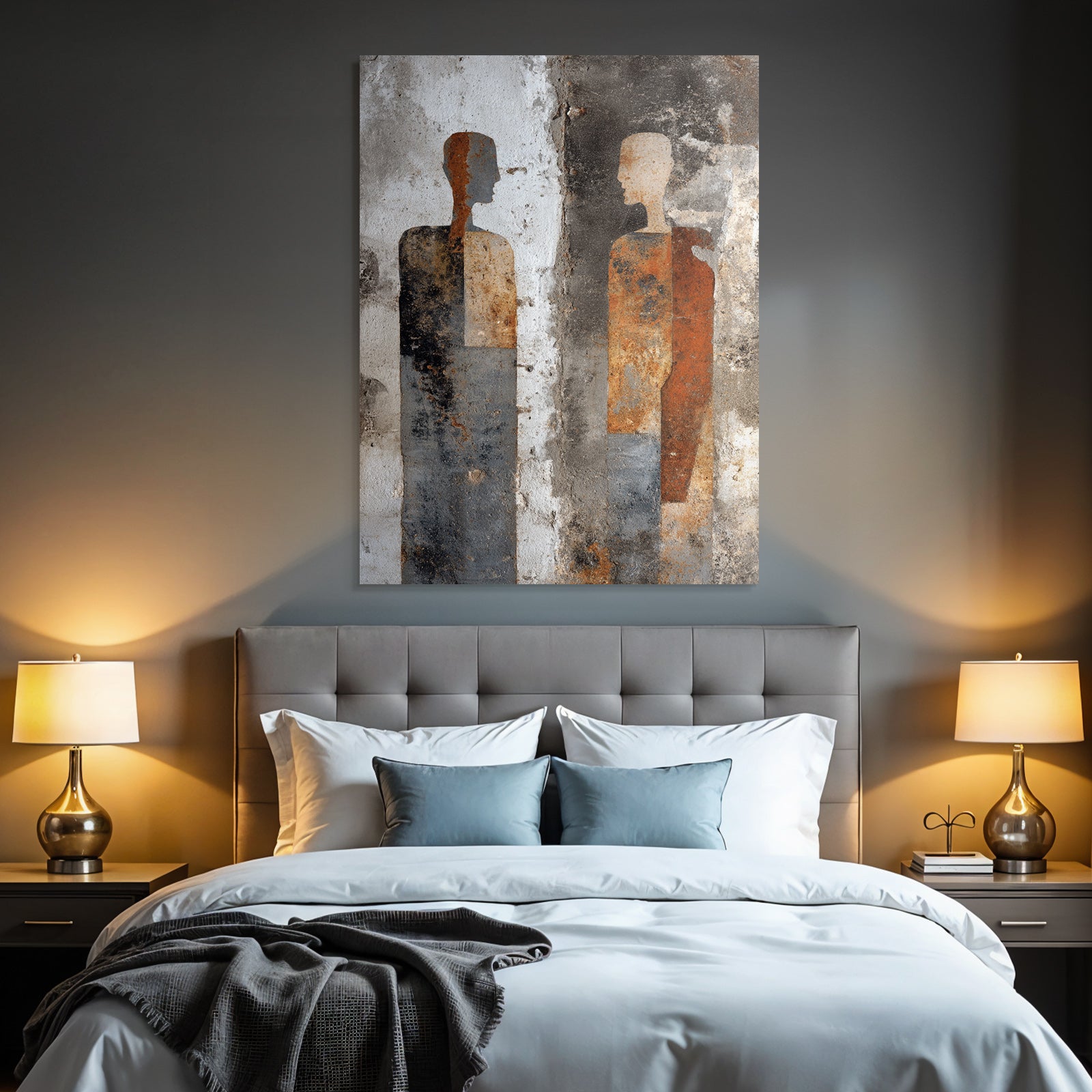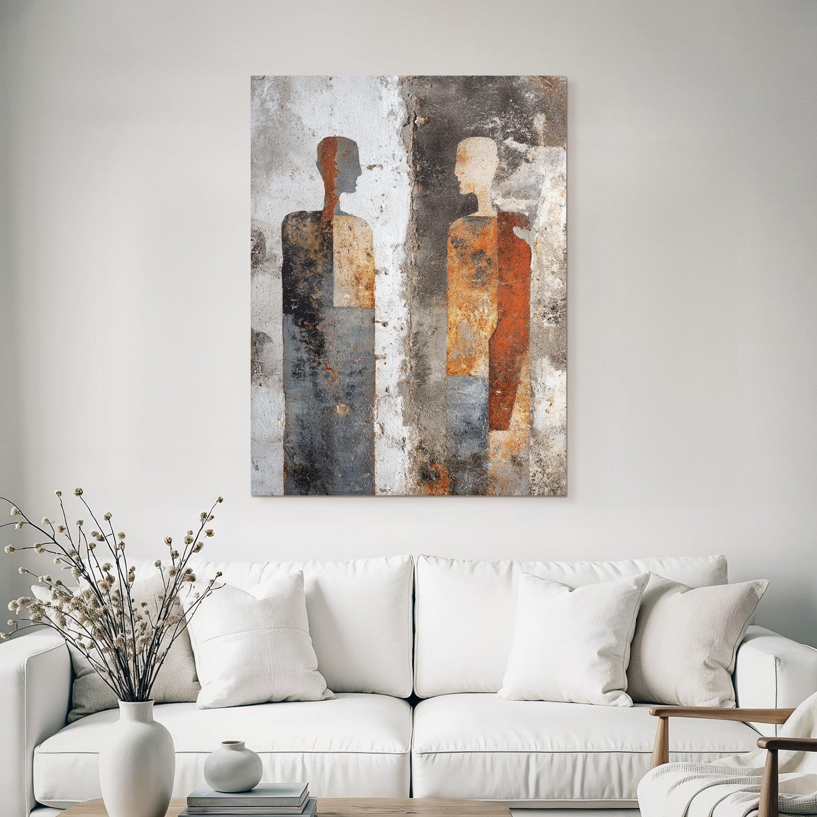 Mit dem Werk „„ Zwei Abstrakte Menschliche Figuren Wandmural““ im Stil Industrial gestaltest Du Dein Wartezimmer oder Deine Hotel-Lobby eindrucksvoll und modern – auf Stoff im FameFrame.