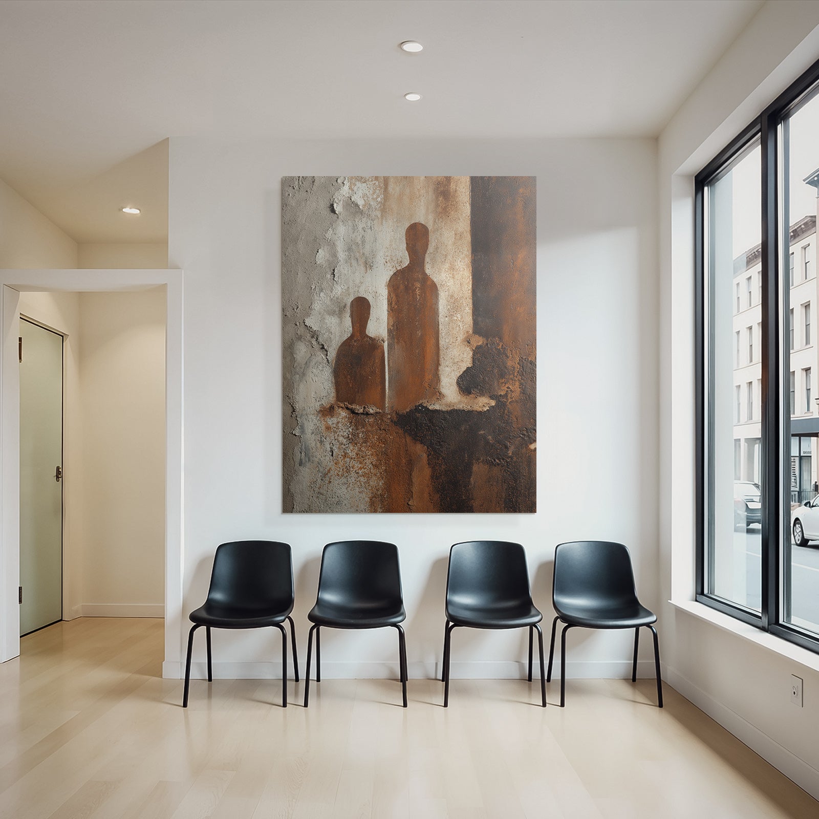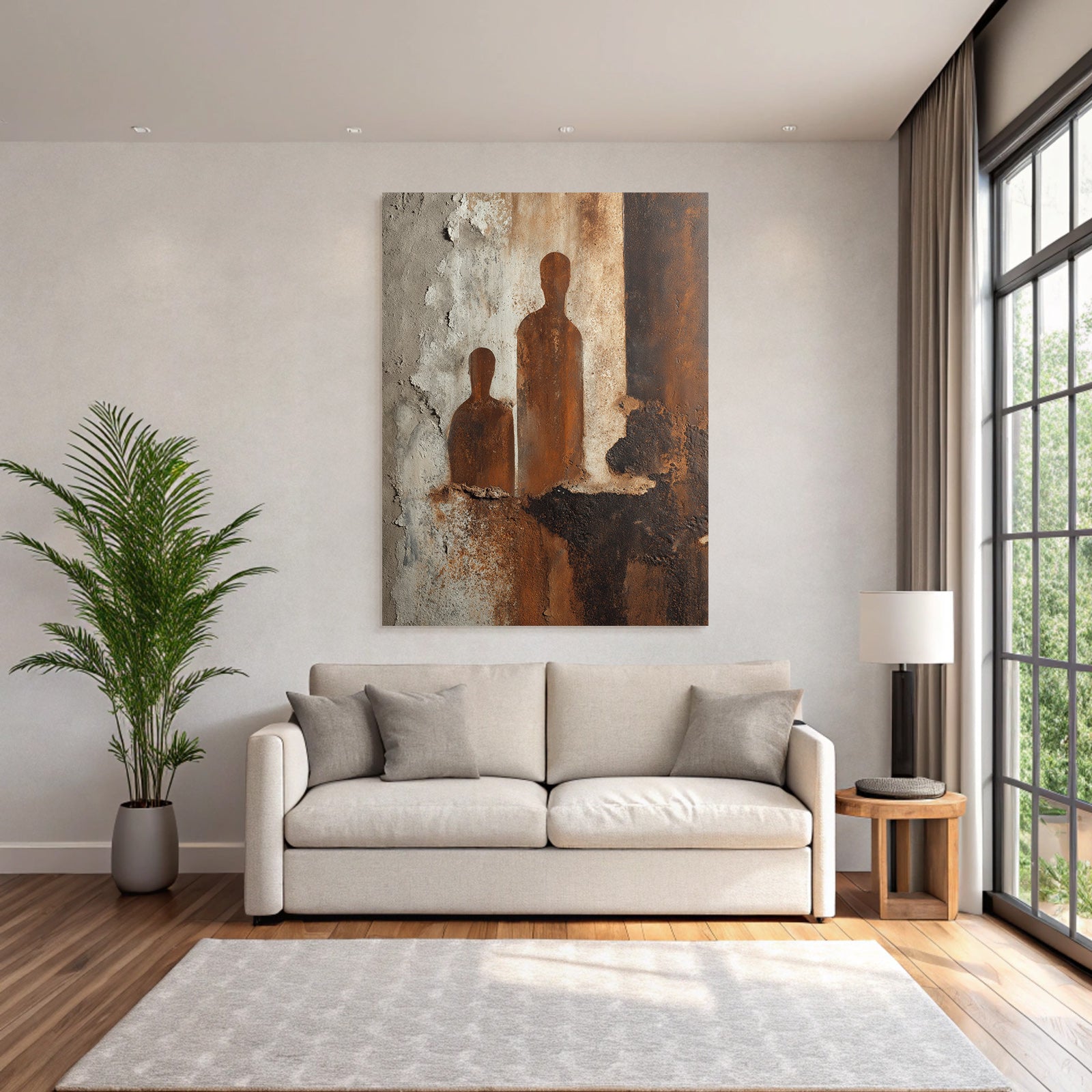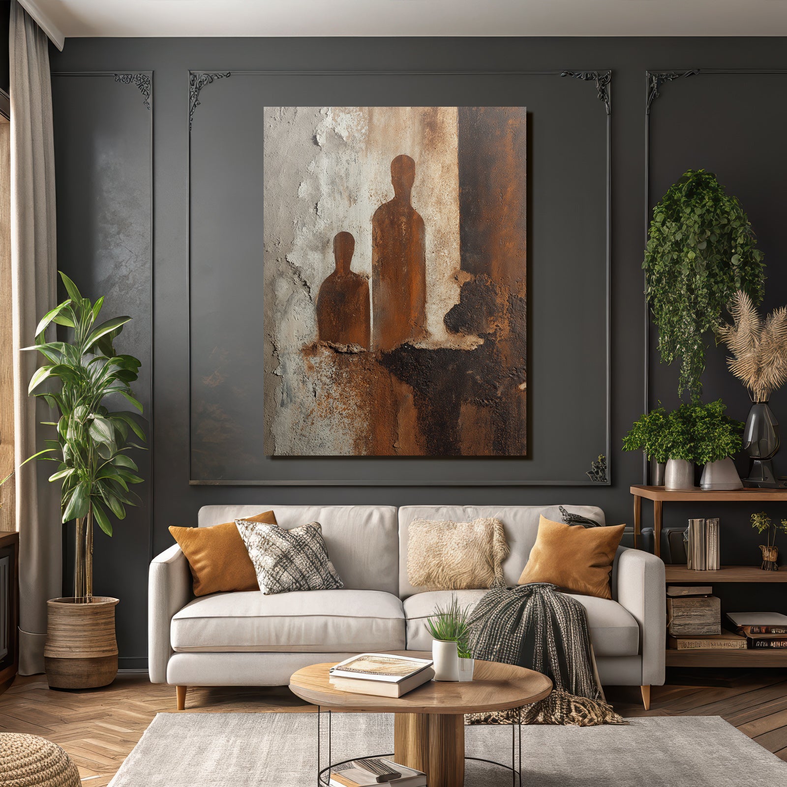 Ideal für Innenräume mit Stil: „„ Zwei Silhouetten Rost Textur Wand““ im Stil Industrial zieht im FameFrame die Blicke auf sich – egal ob Zuhause oder im Geschäft.